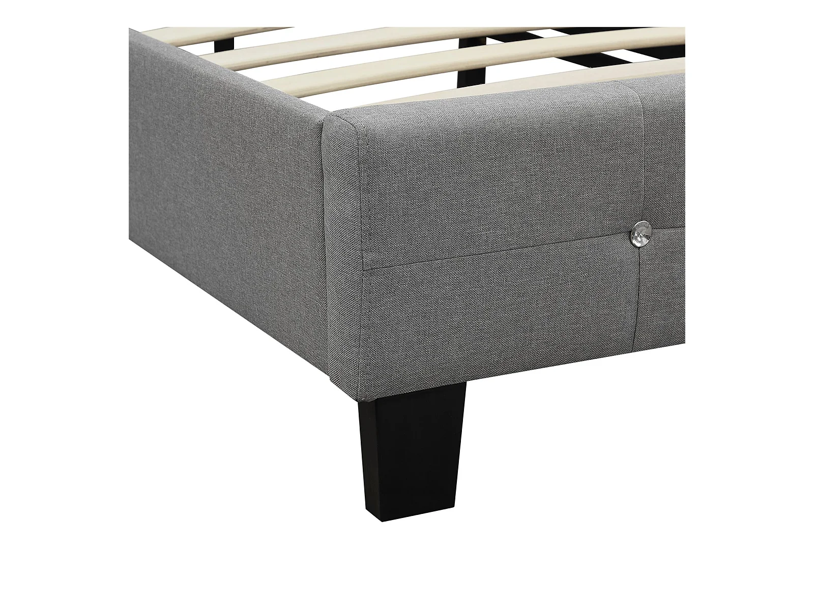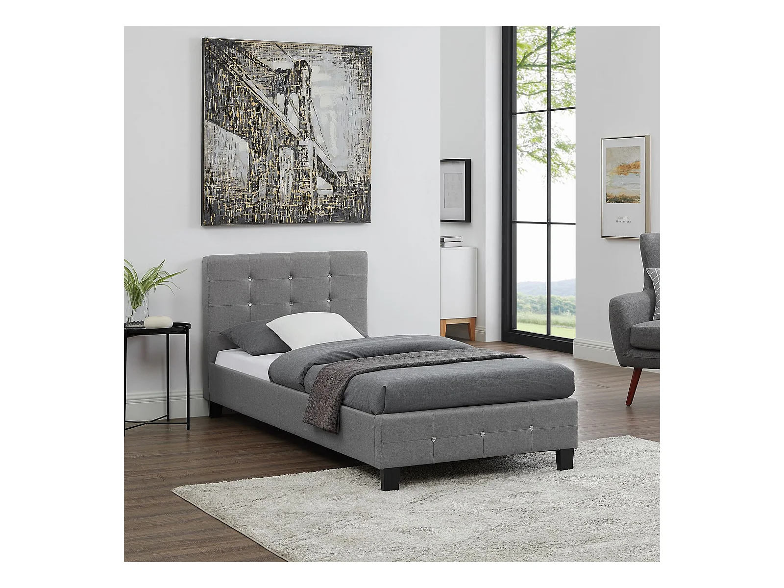 Lit simple pour adulte ou enfant TICO avec sommier 90x190 cm 1 place, tête et pied de lit capitonnés avec strass, en tissu gris