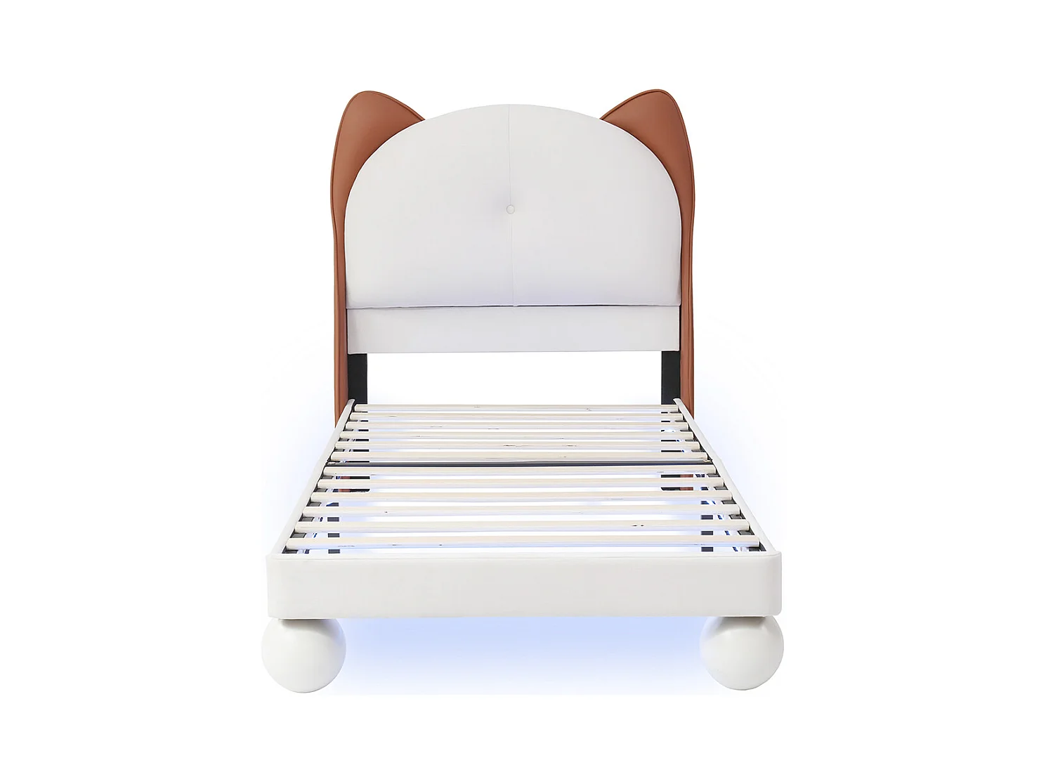 Lit simple pour enfant 90 x 200 cm, tête de lit en forme d'oreilles de chat, bande LED à couleur réglable, beige + brun clair.