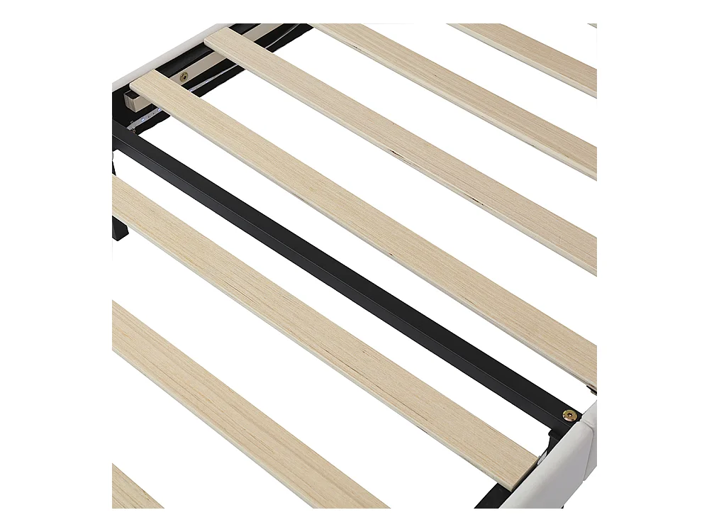 Lit enfant 90 x 200 cm, tête de lit en forme d'arc-en-ciel, avec tables de chevet des deux côtés, imitation peluche, beige.