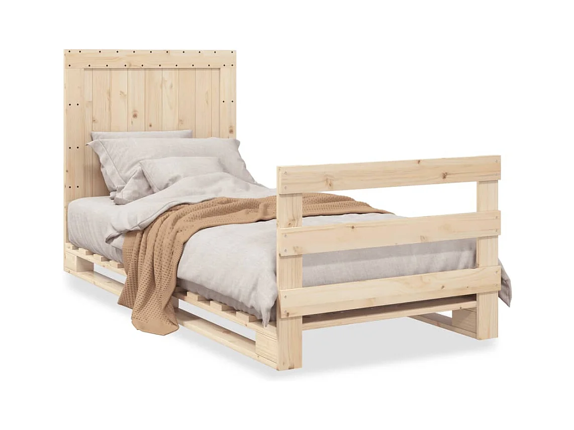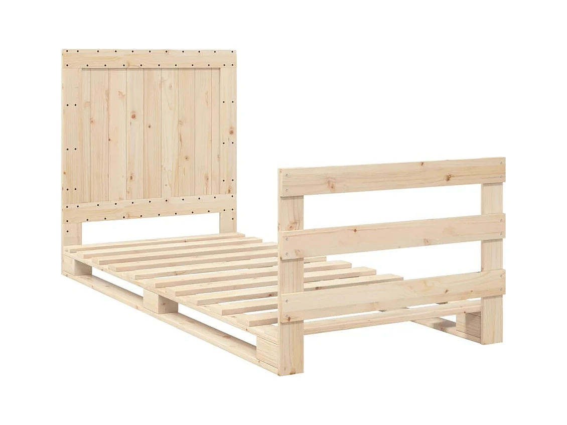Lit simple + tête de lit 90x200 cm bois de pin massif FR45531