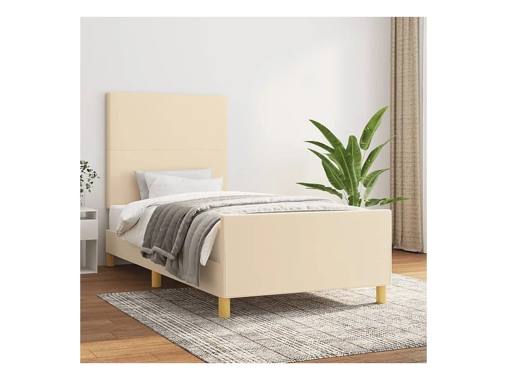 Lit simple + tête de lit Crème 100x200 cm Tissu FR74261