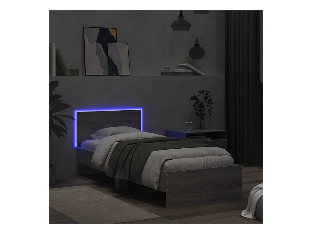 Lit simple tête de lit et lumières LED sonoma gris 75x190 cm FR75000