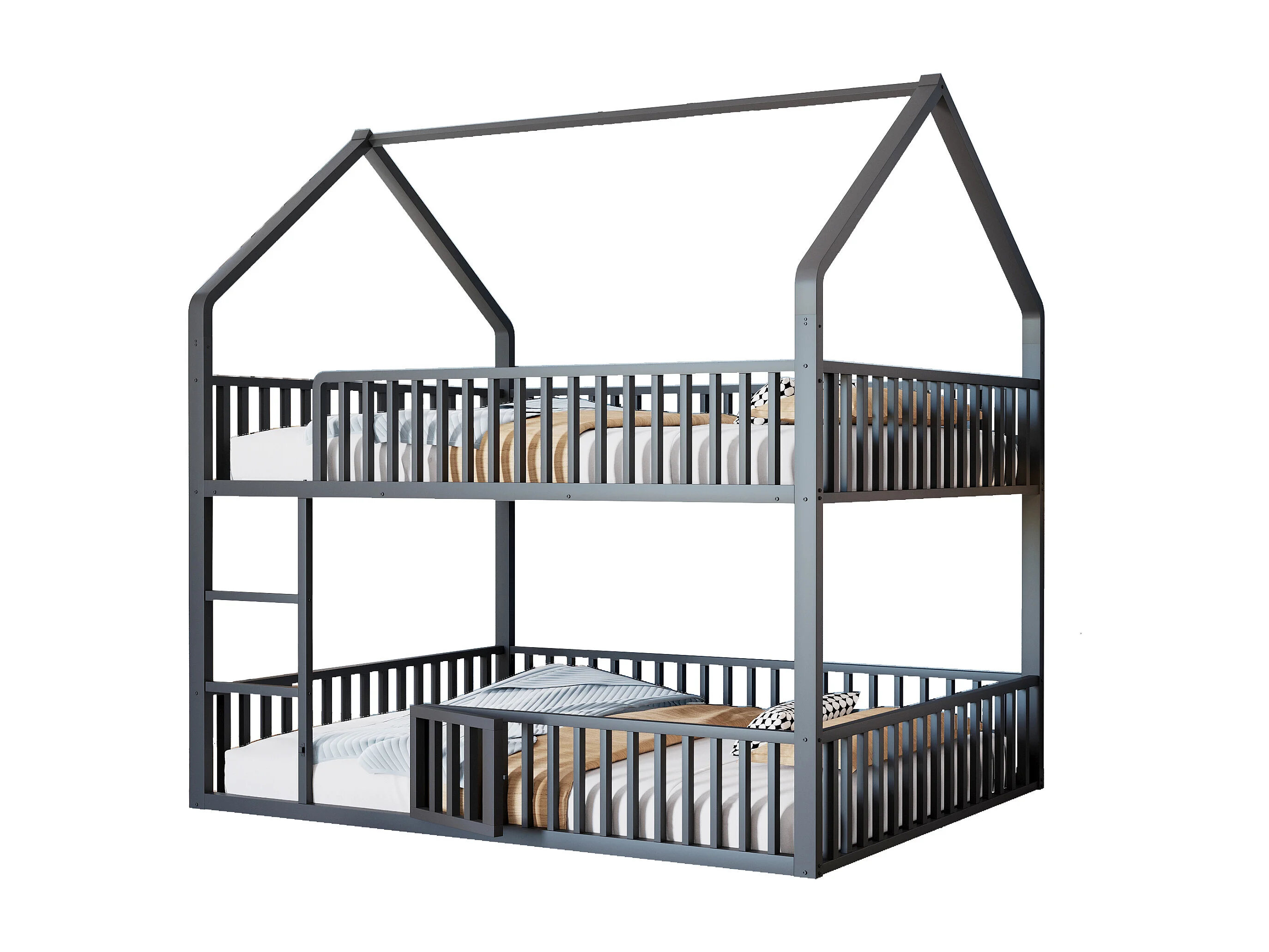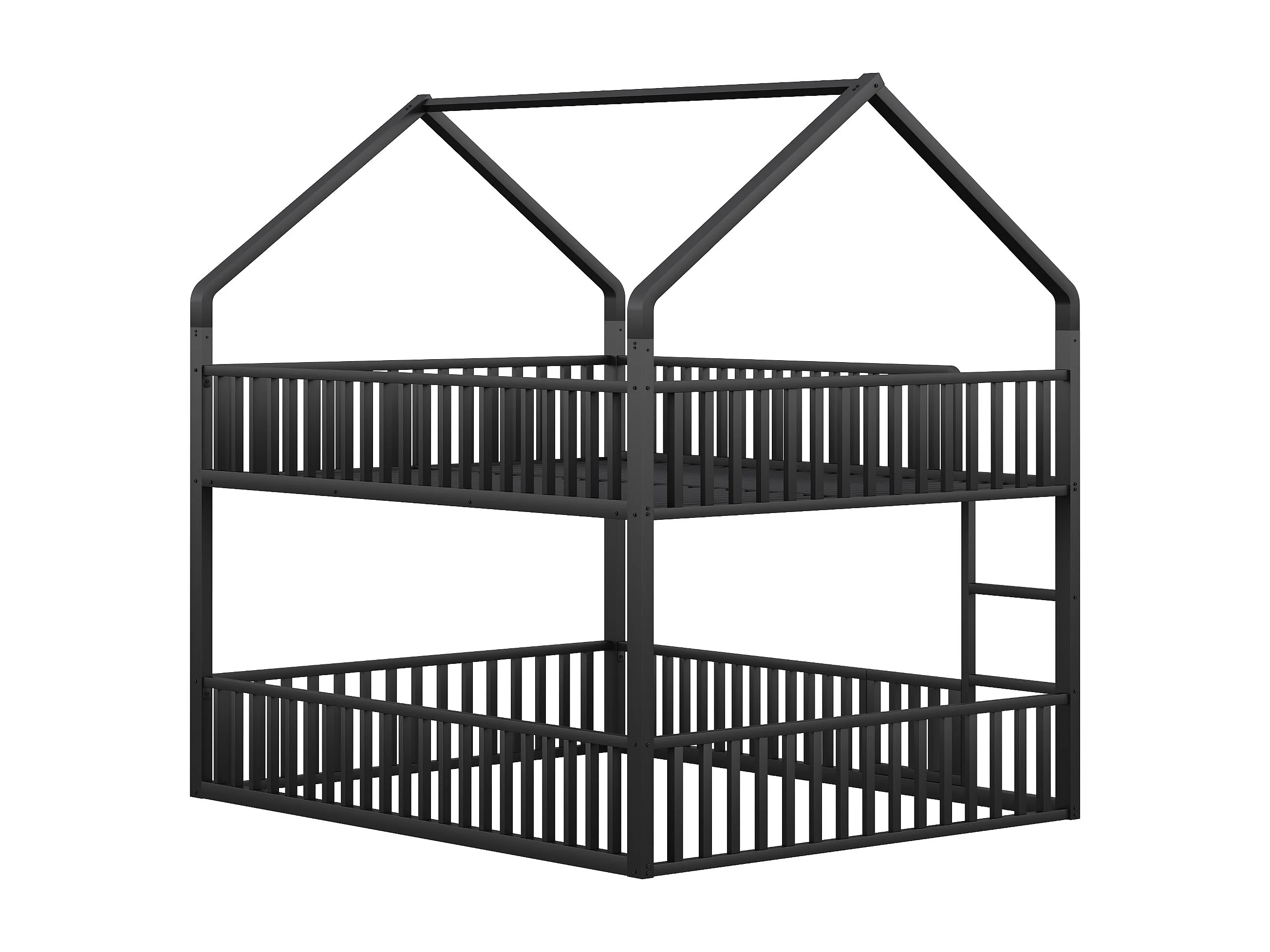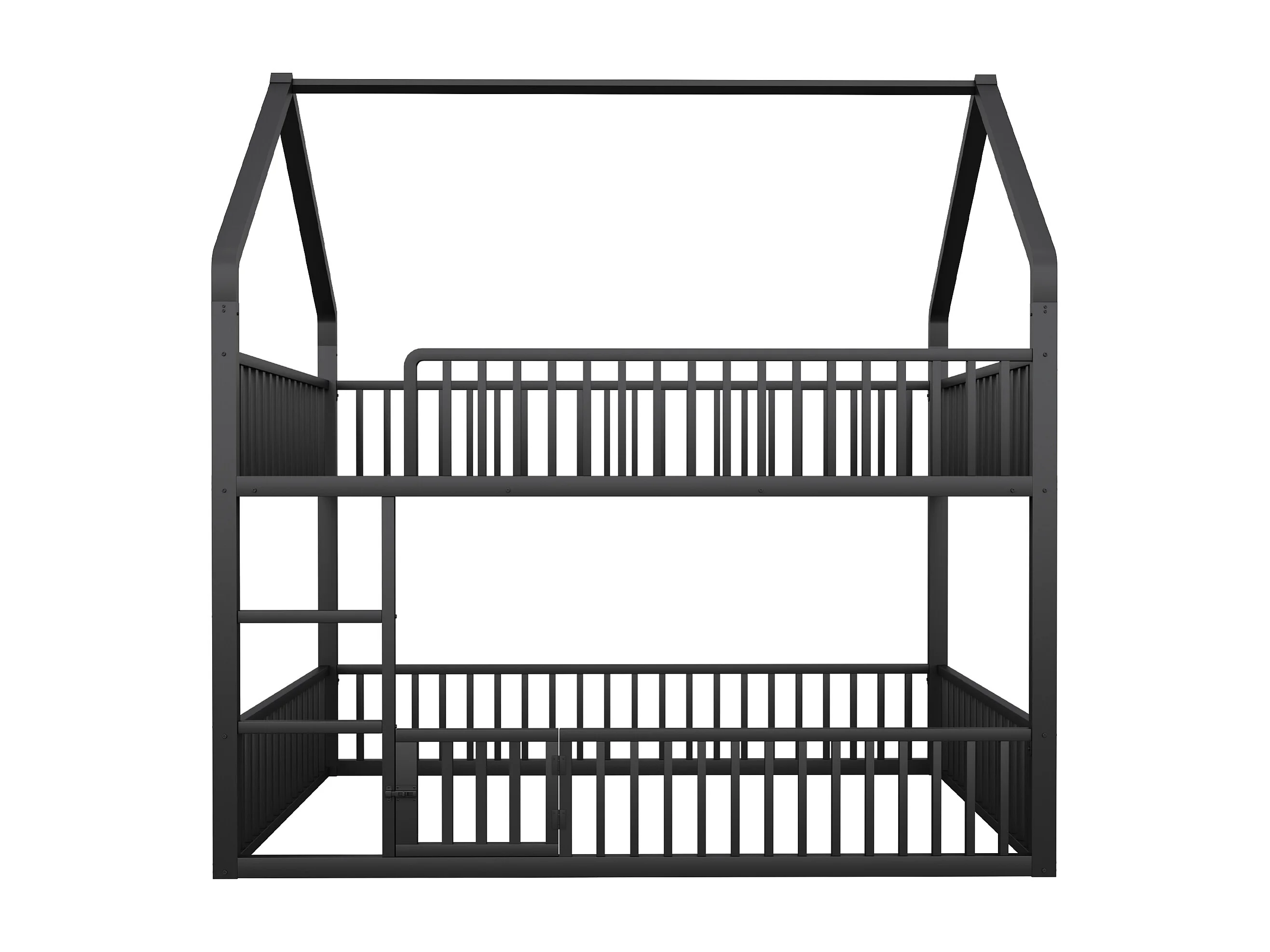 Lit superposé 140x200cm avec escalier, 1 sommier, Lit cabane de style simple, en métal noir, sans matalas