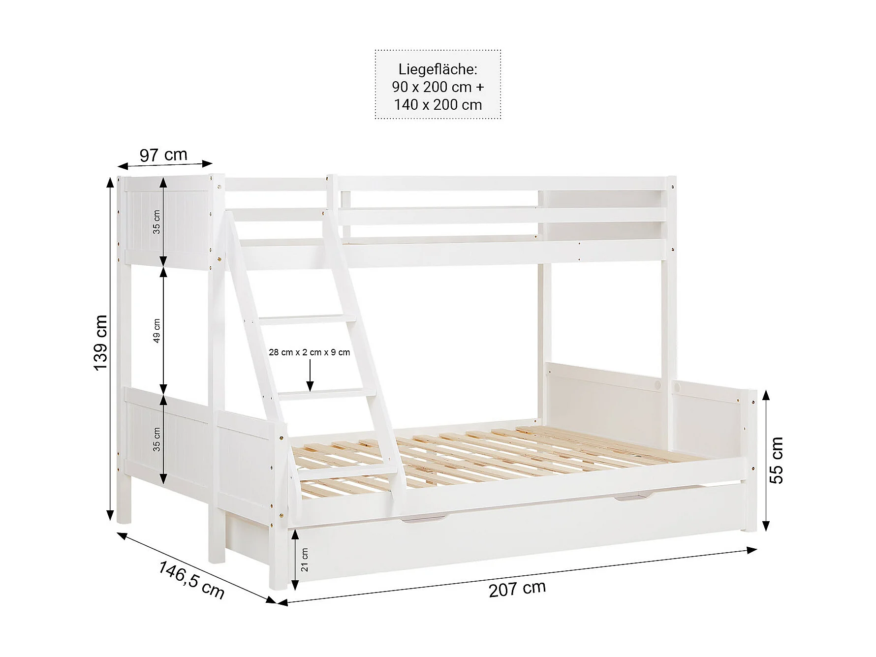 Lit superposé 207x139x146,5 cm lit enfant blanc