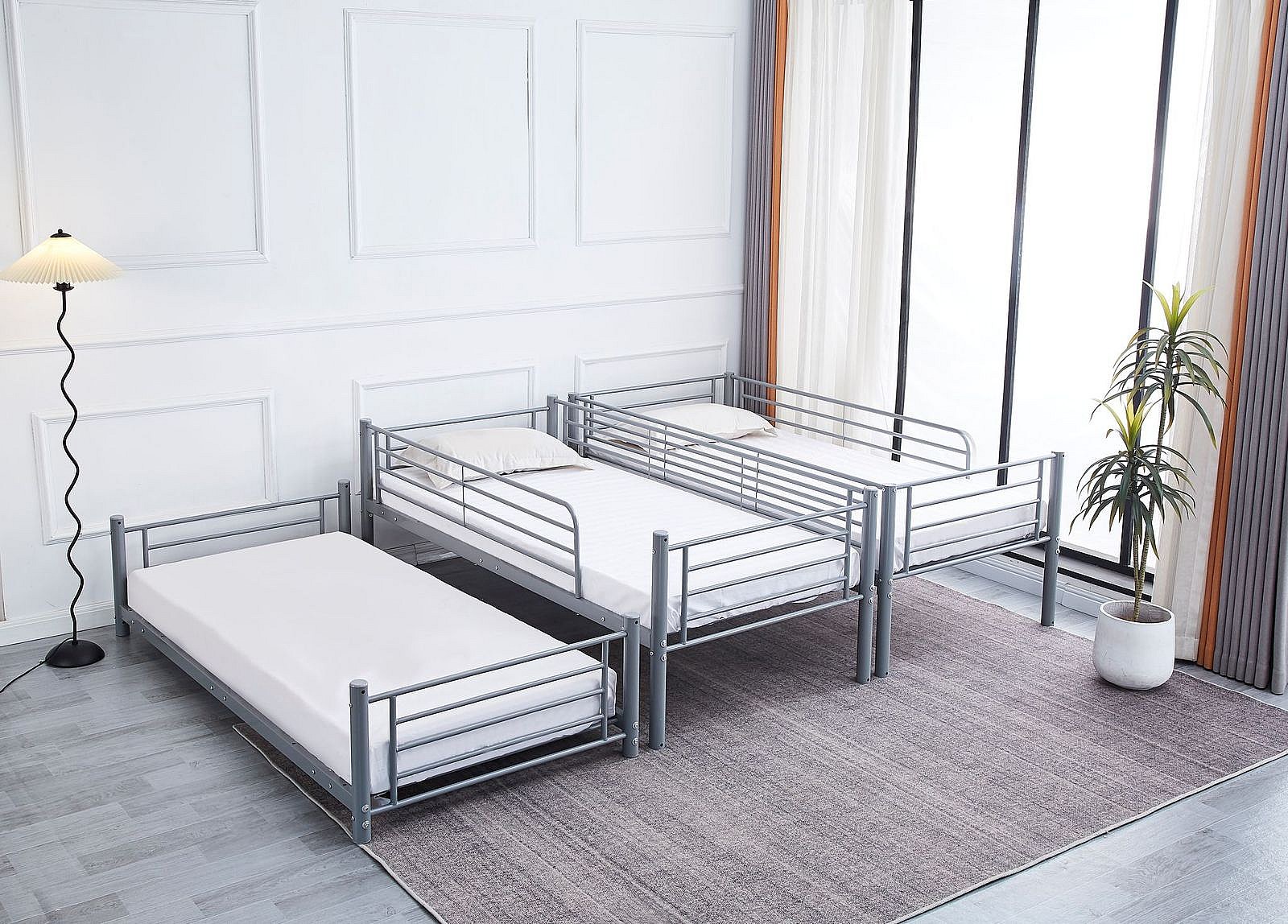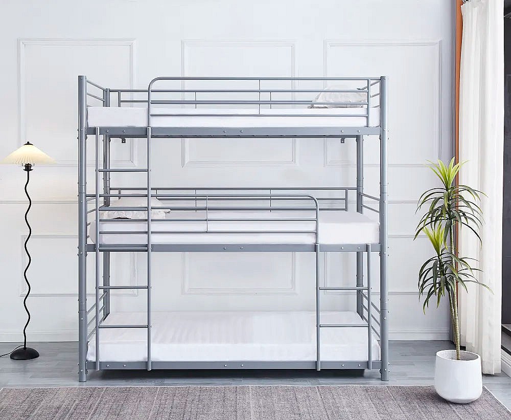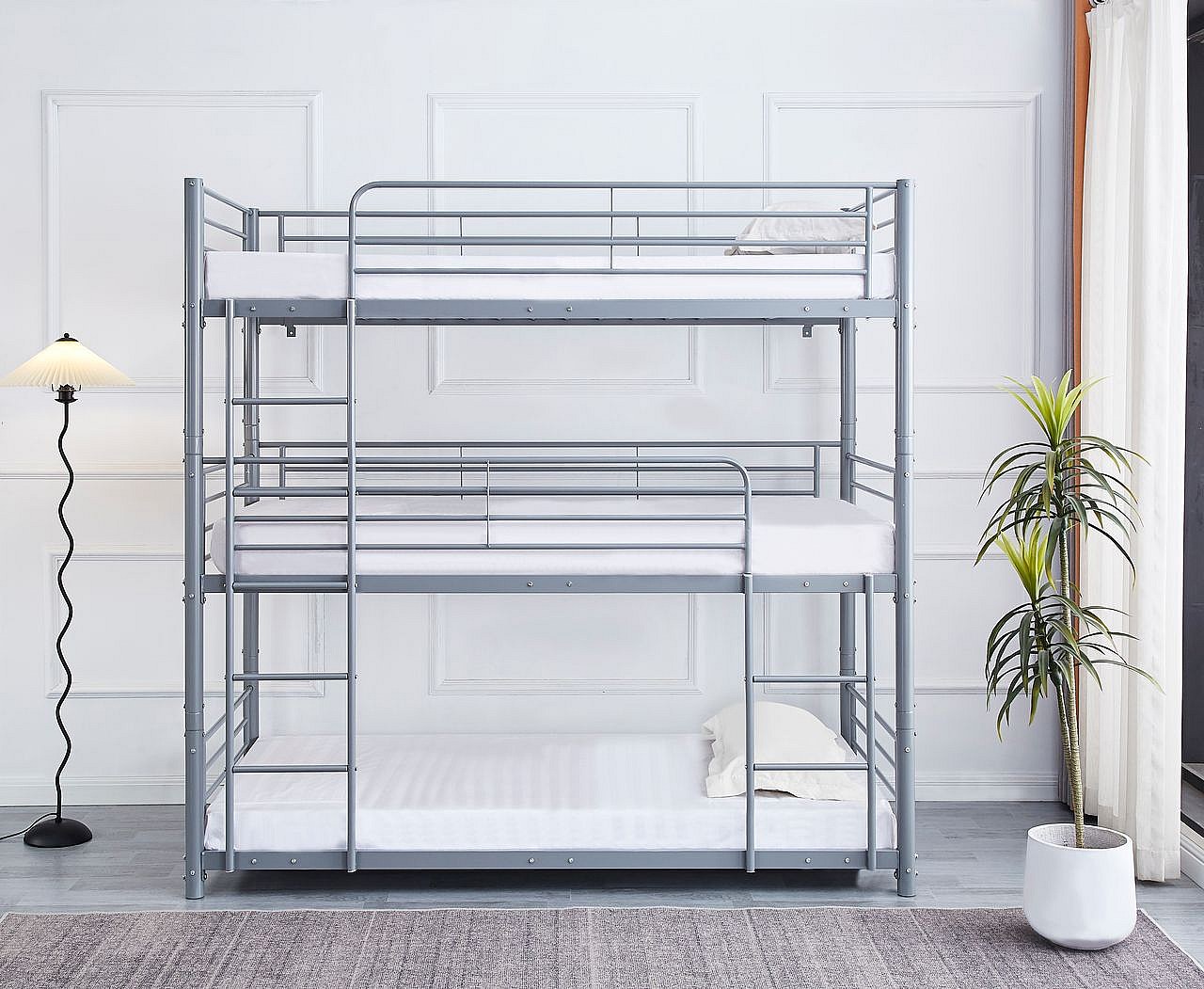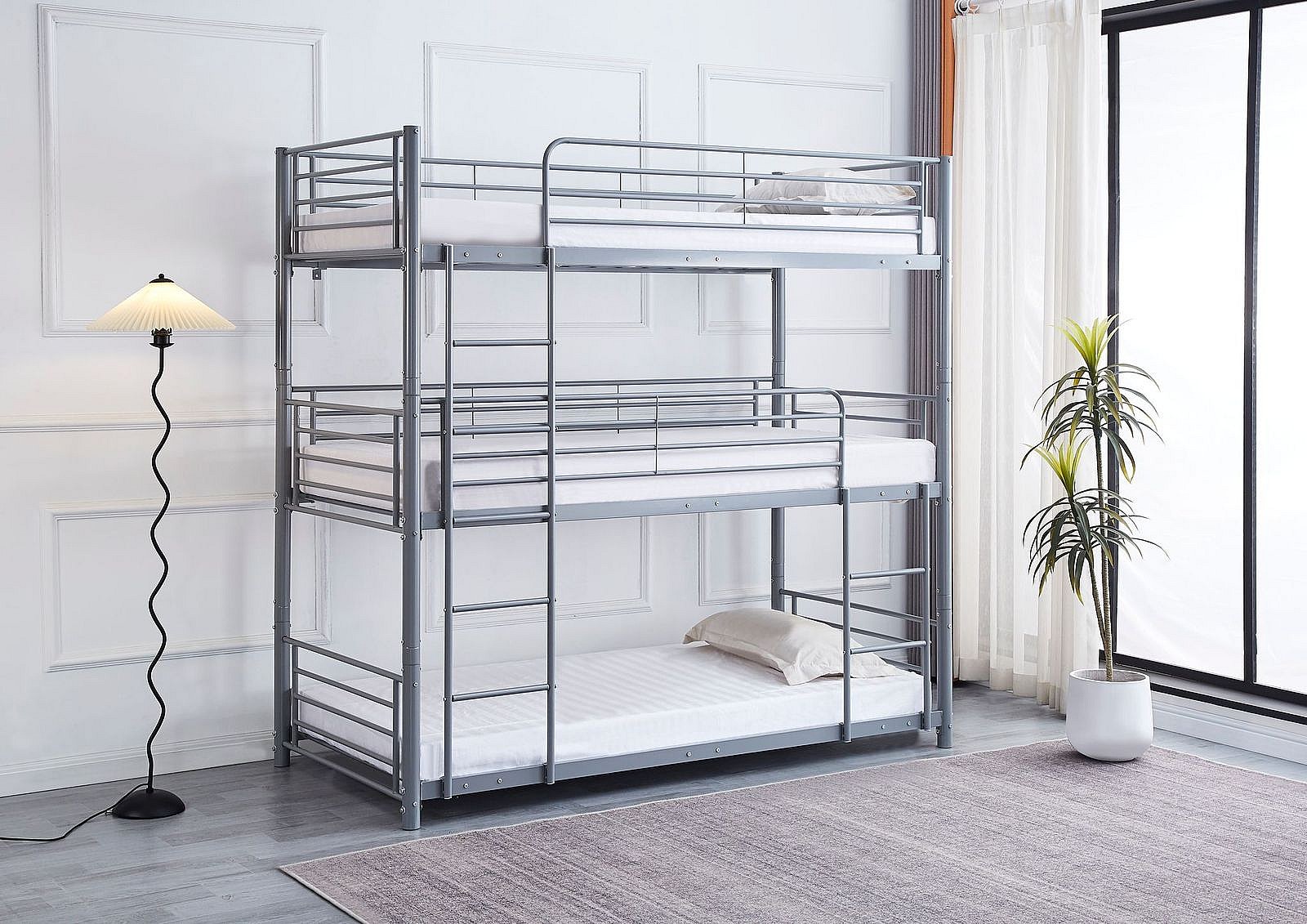 Lit superposé TRIPLE gris 3 étages 3 couchages 90x190 cm