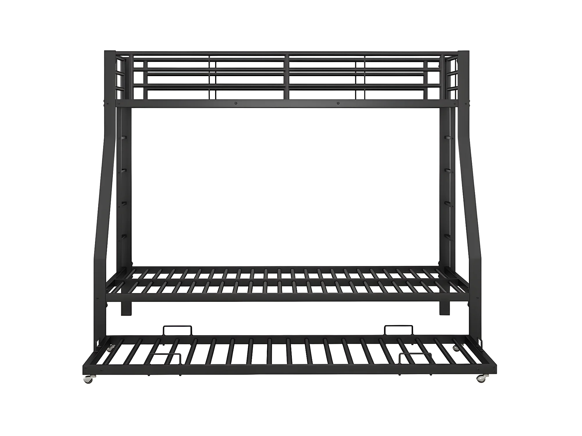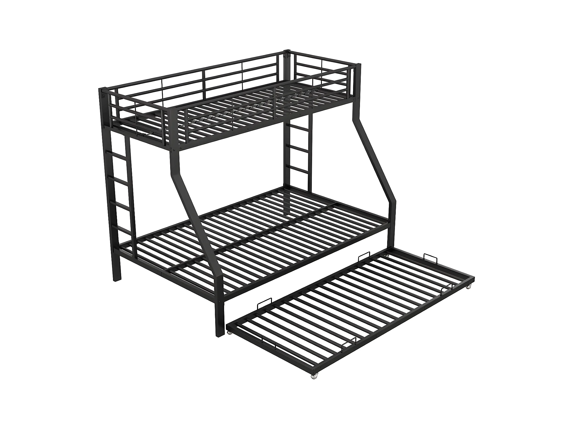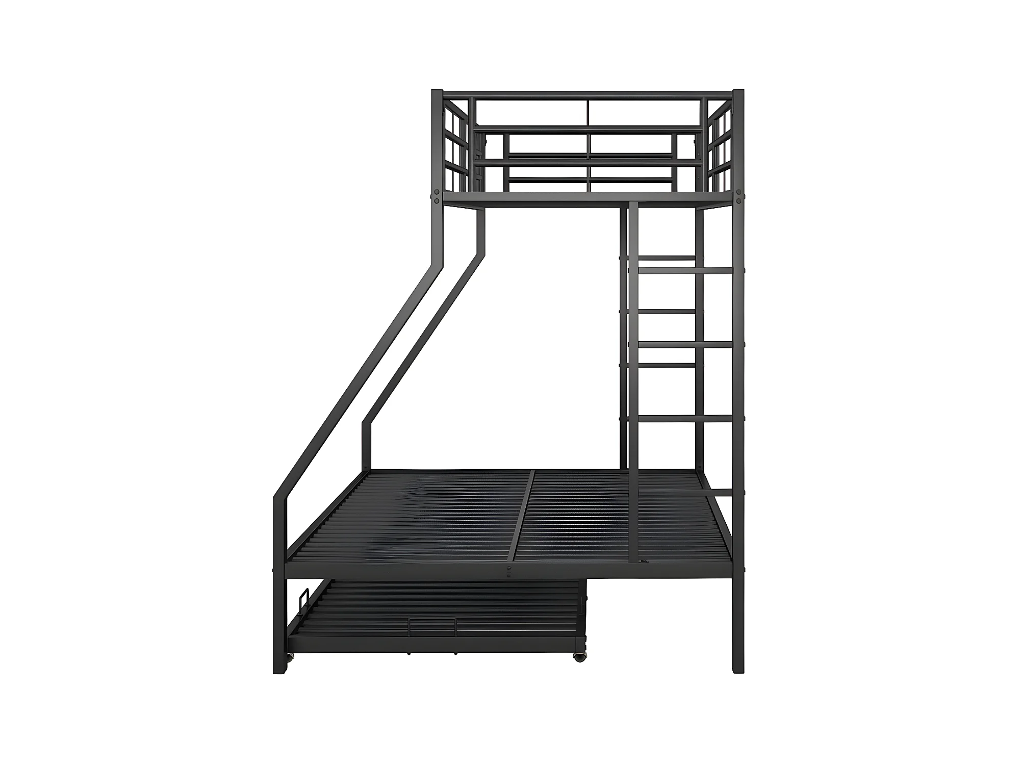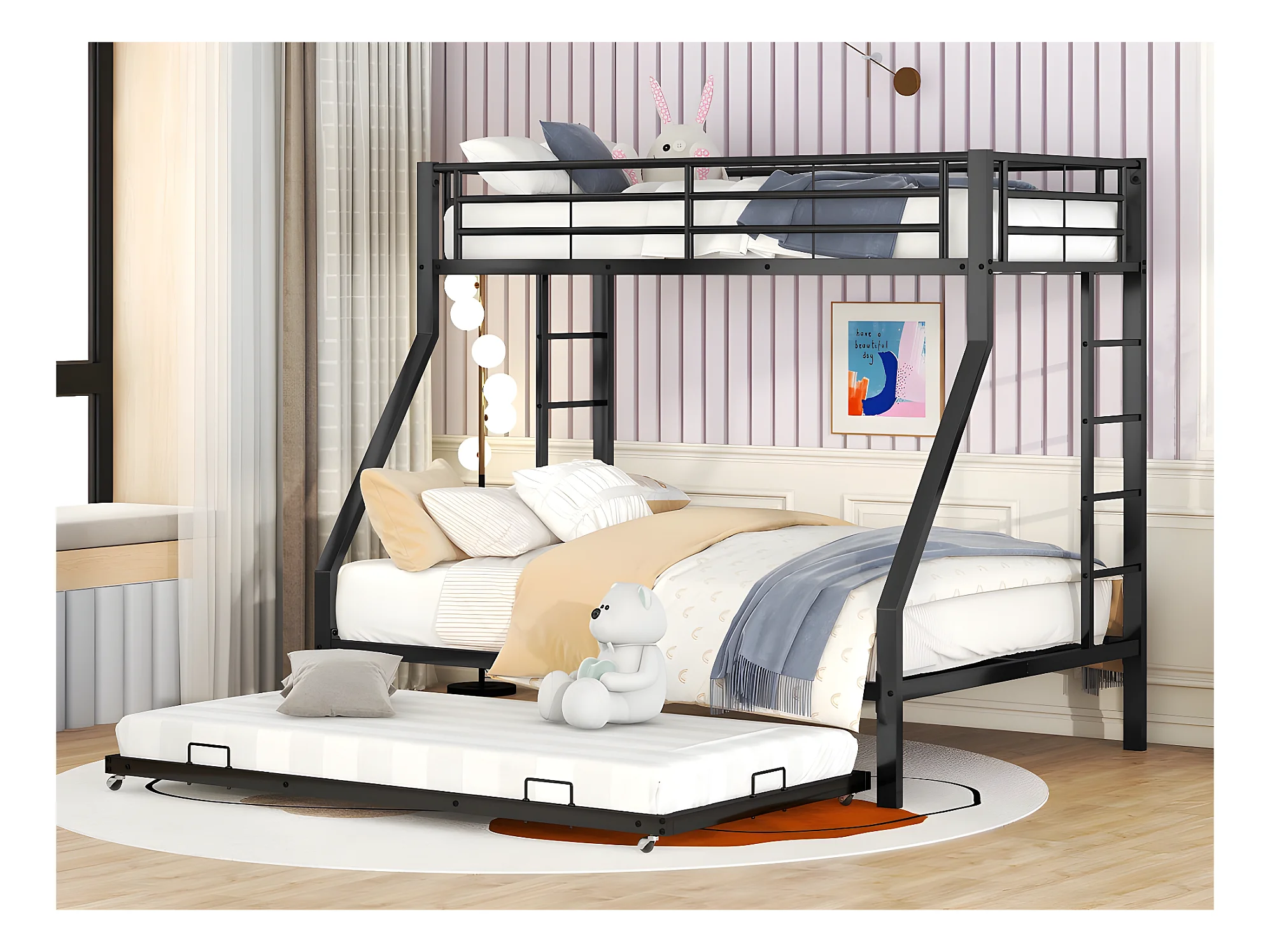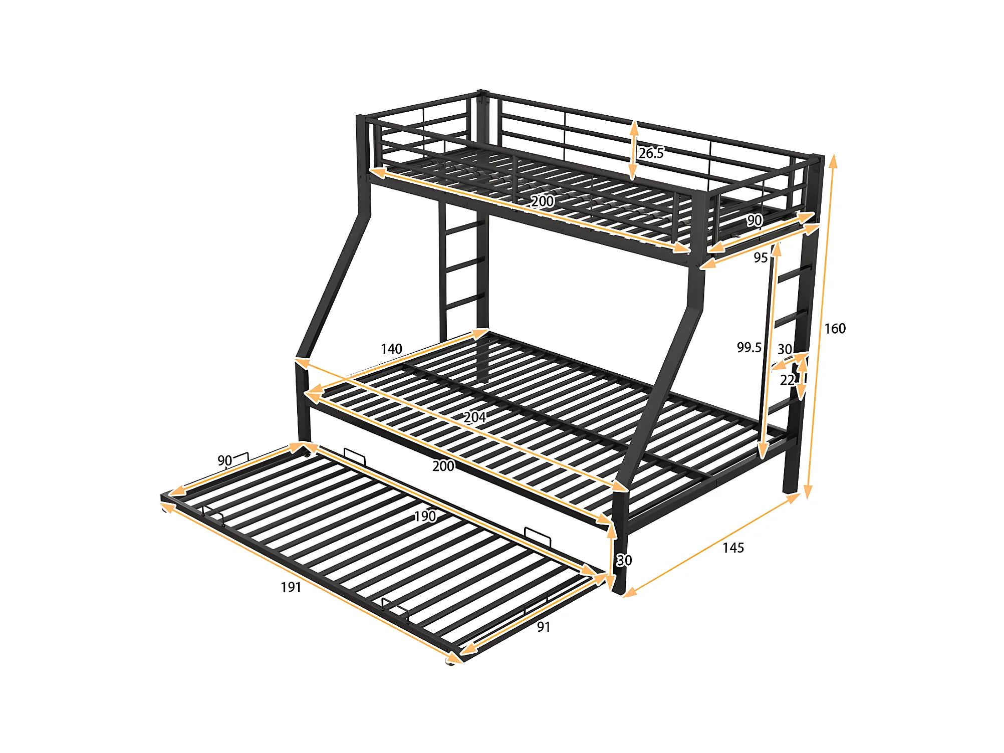 Lit superposé 90/140x200cm avec un lit gigogne 90x190cm - cadre en métal - Noir