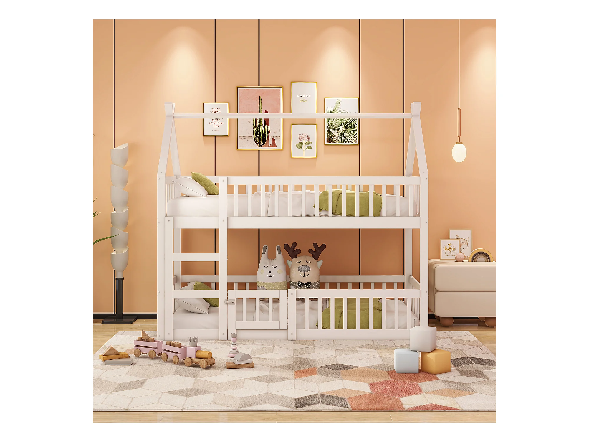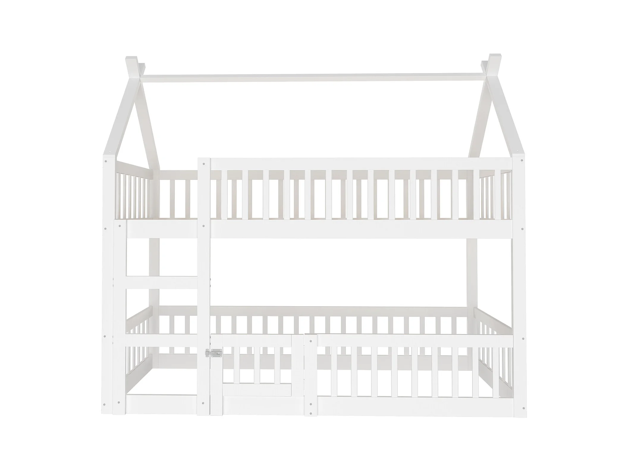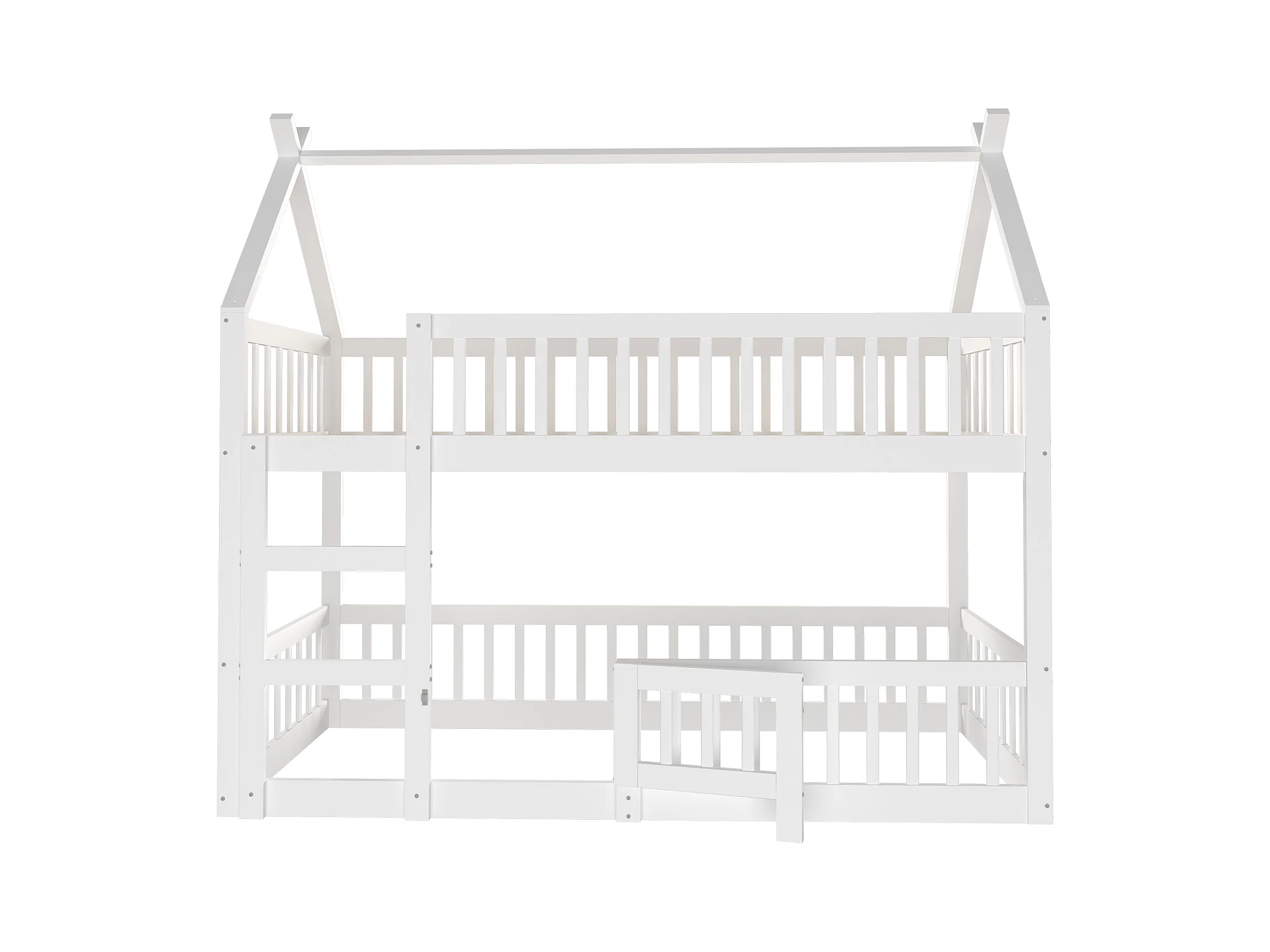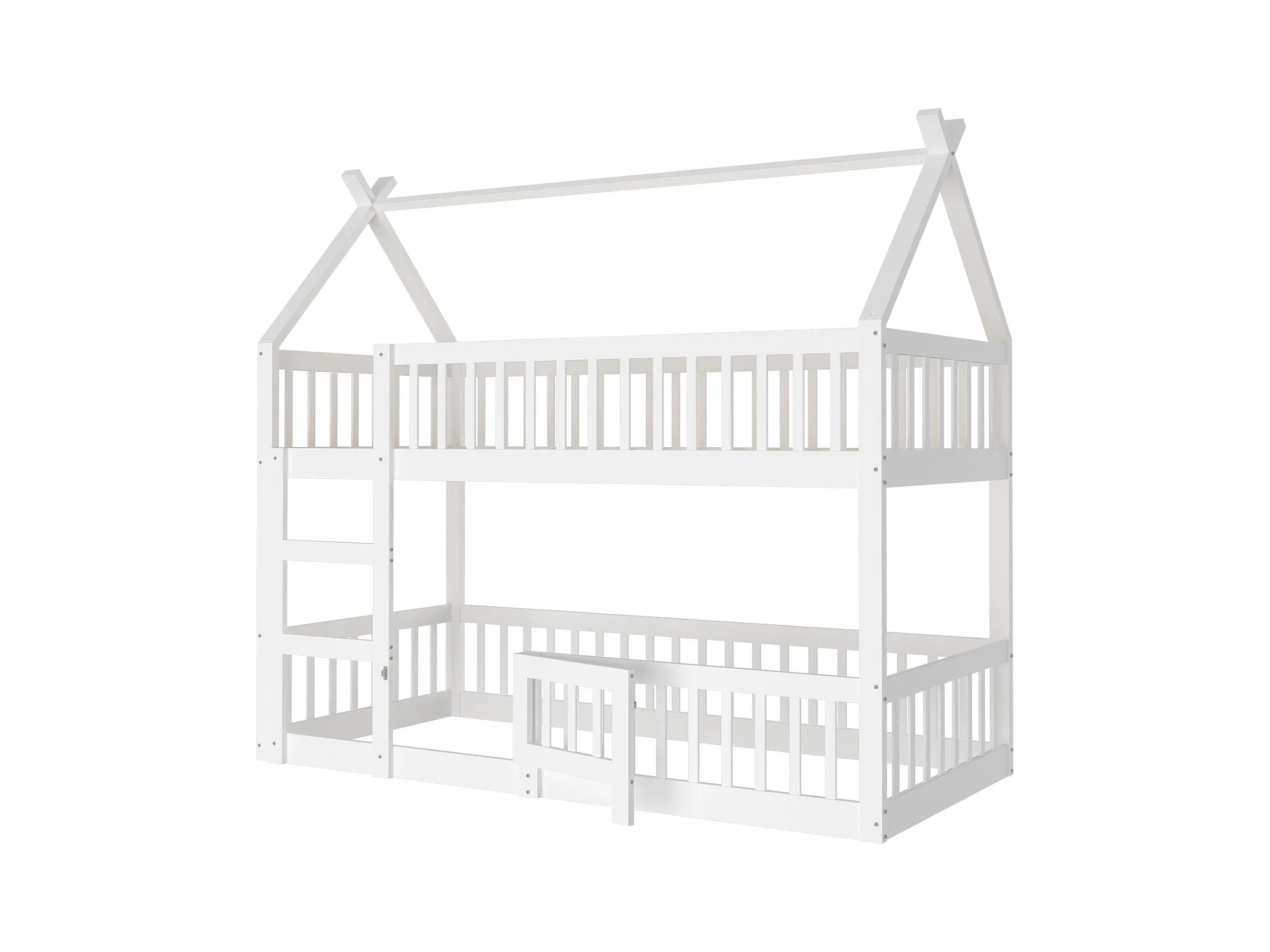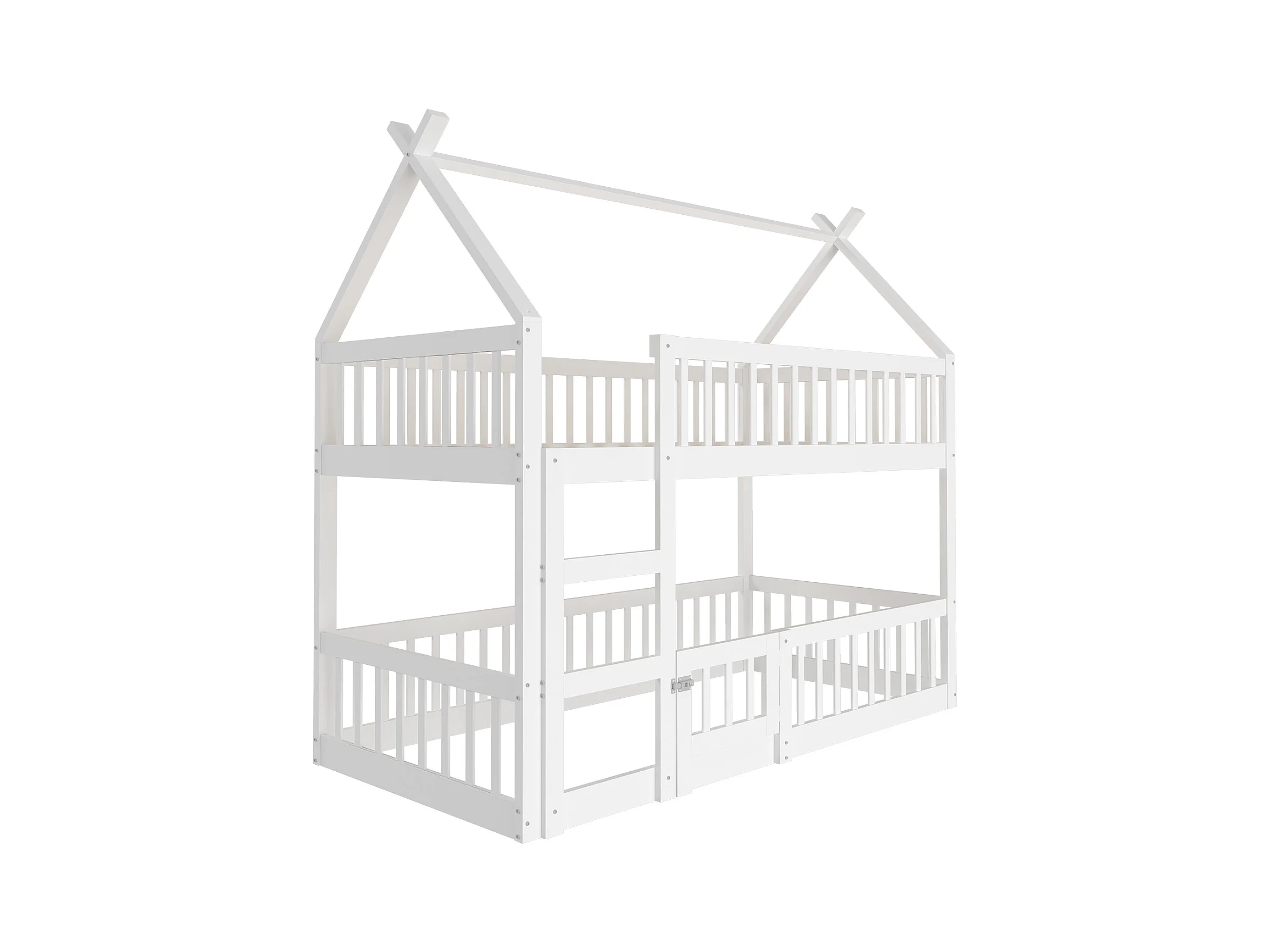 Lit superposé 90 x 200 cm - Lit enfant avec escalier et barrières - lit superposé inférieur avec porte - bois blanc