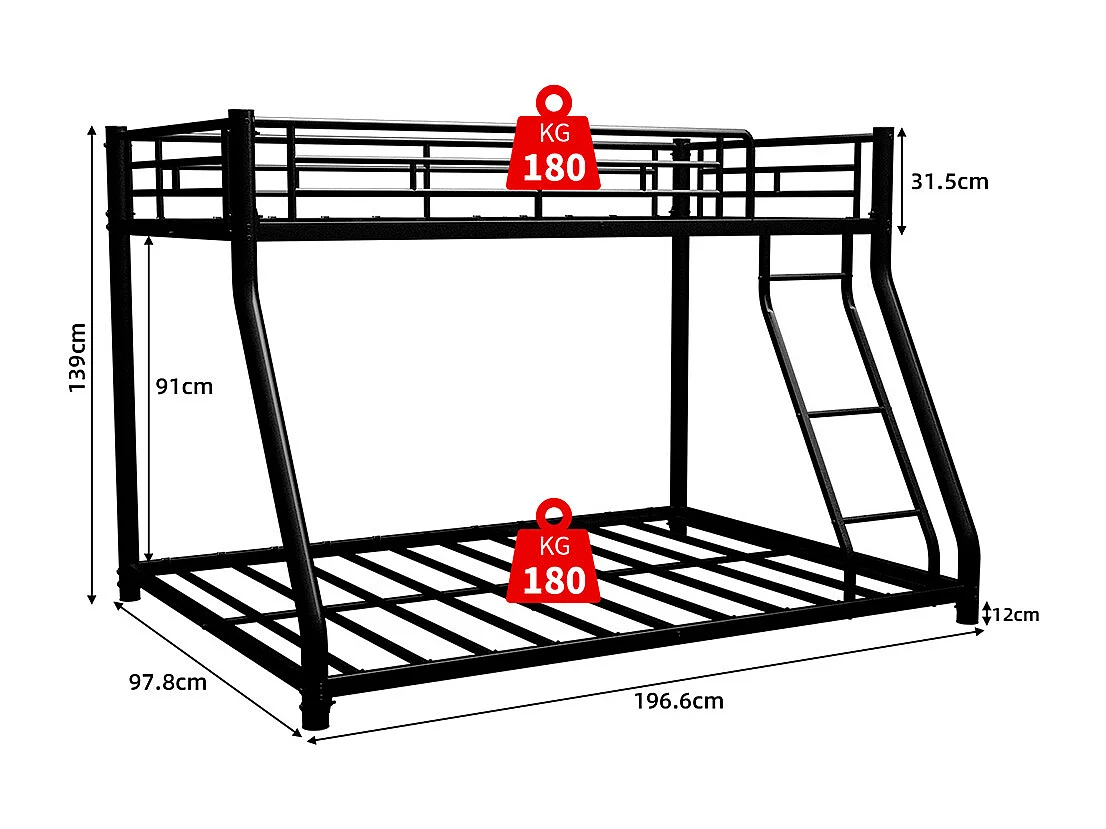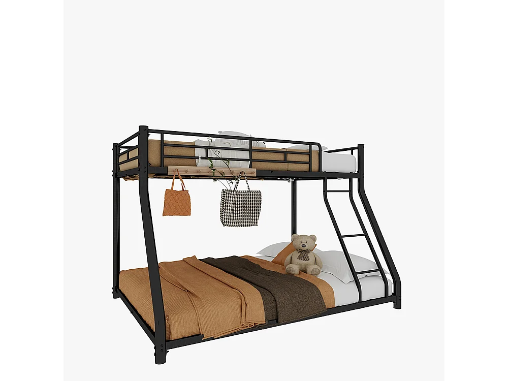 Lit superposé 90x190 métallique Twin sur Full robuste échelle garde-corps silencieux adolescents adultes noir