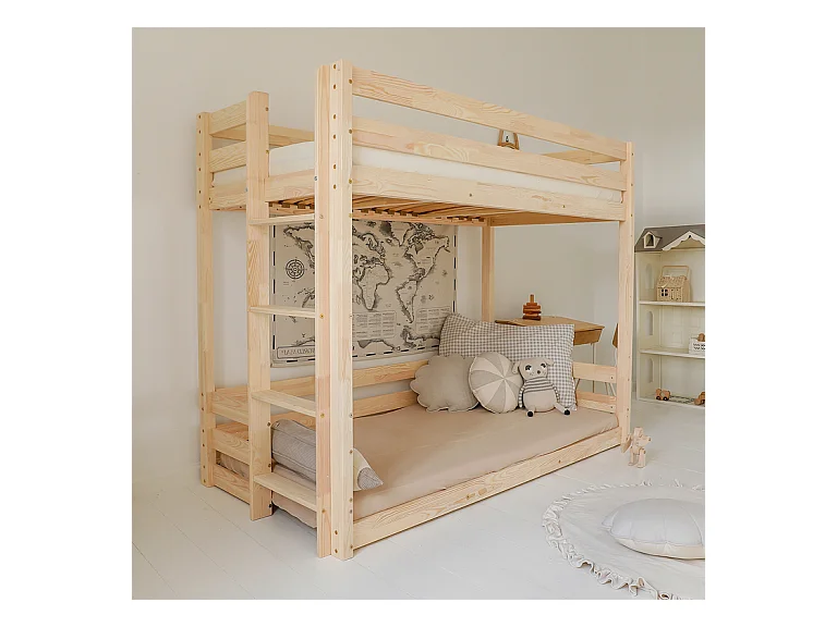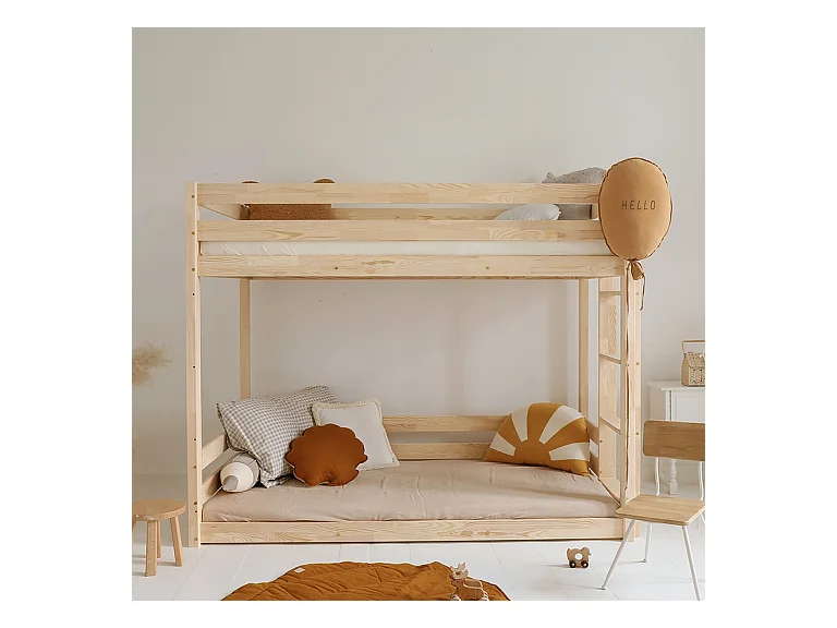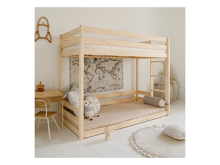 Lit superposé 90x200 au sol sommiers inclus Anaëlle Bois