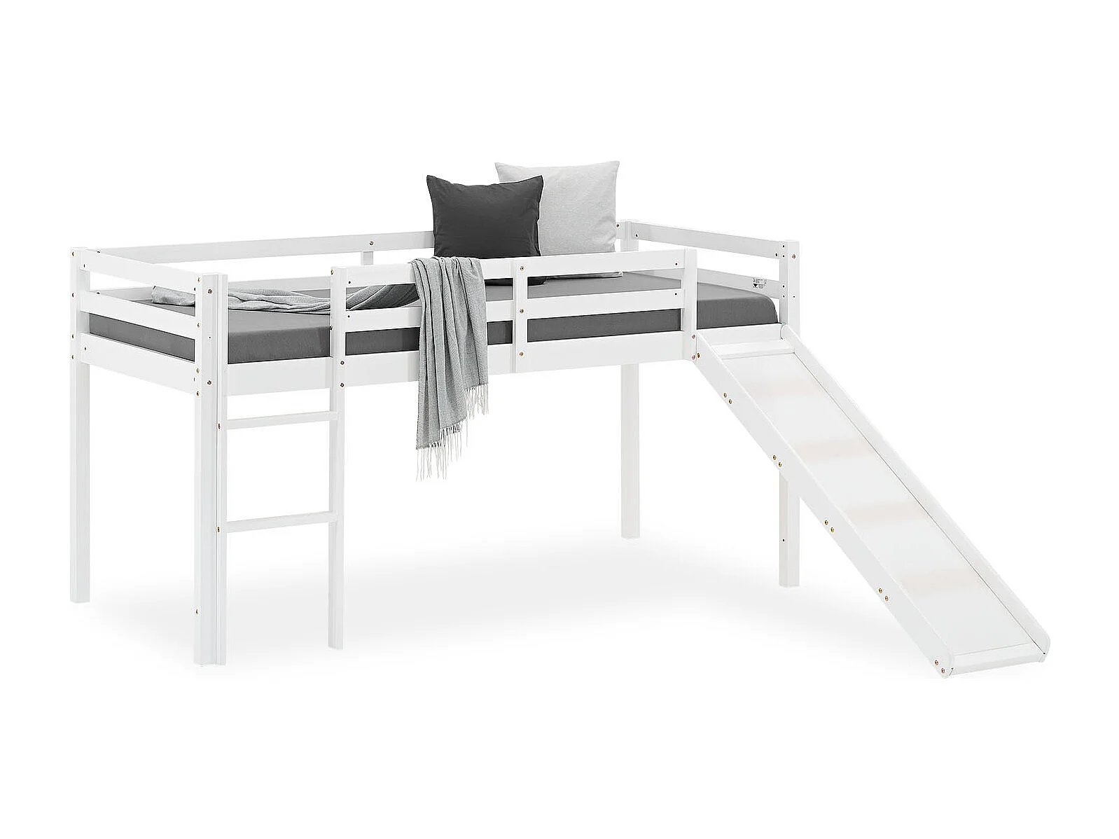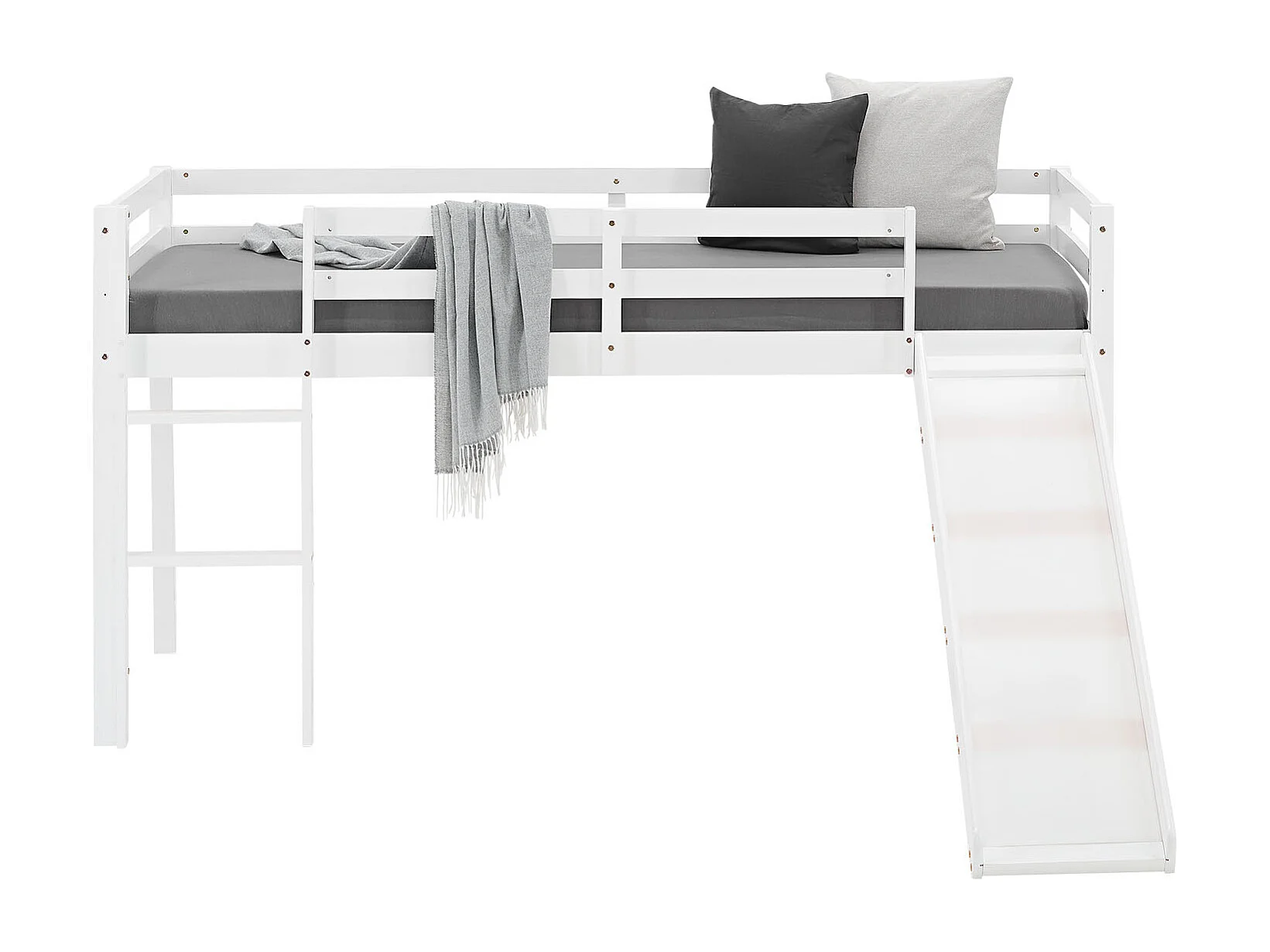 Lit superposé 90x200 cm blanc, lit surélevé avec toboggan