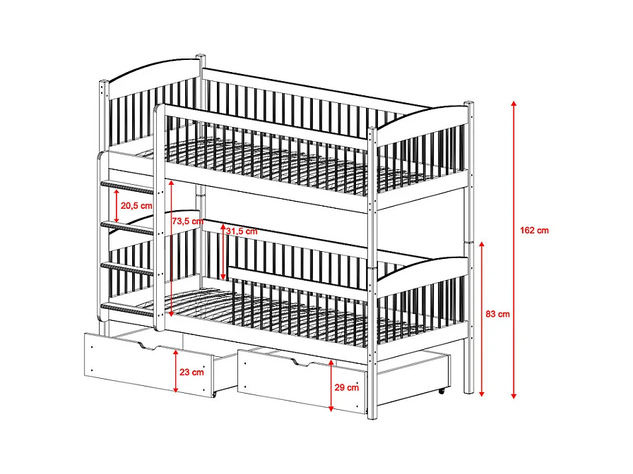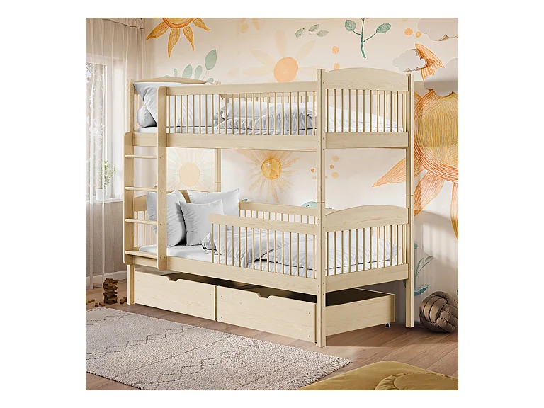 Lit superposé 90x200 sommiers et tiroirs inclus Ioana Bois