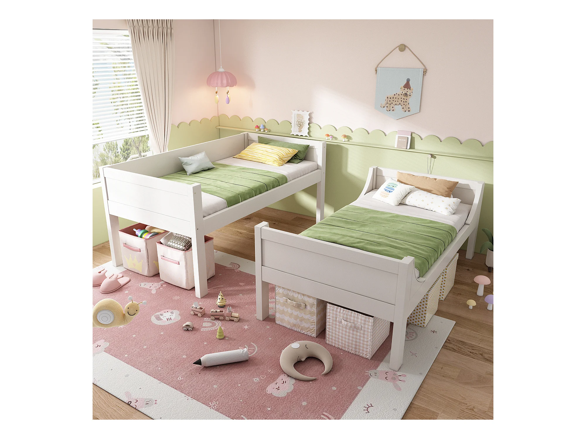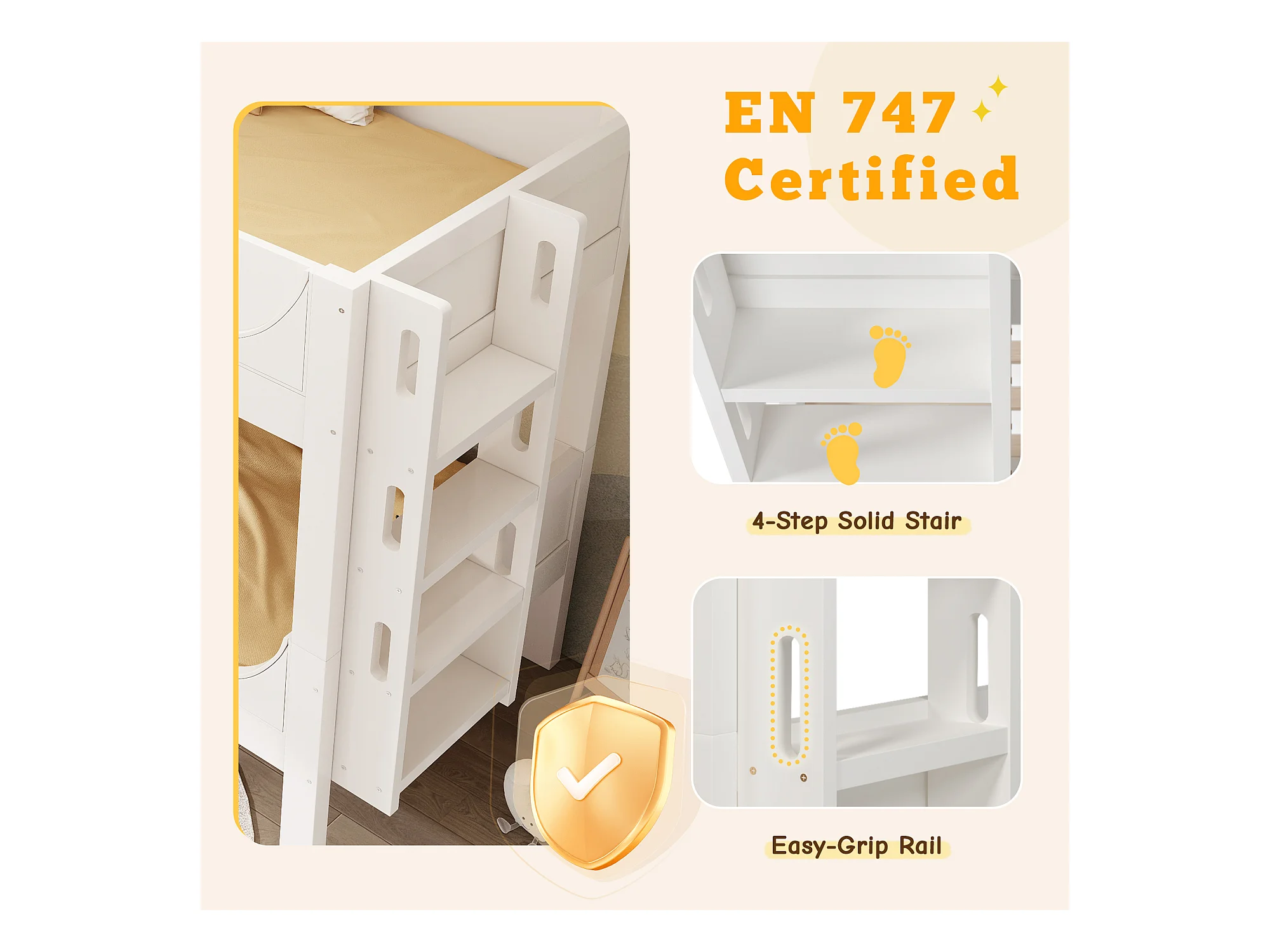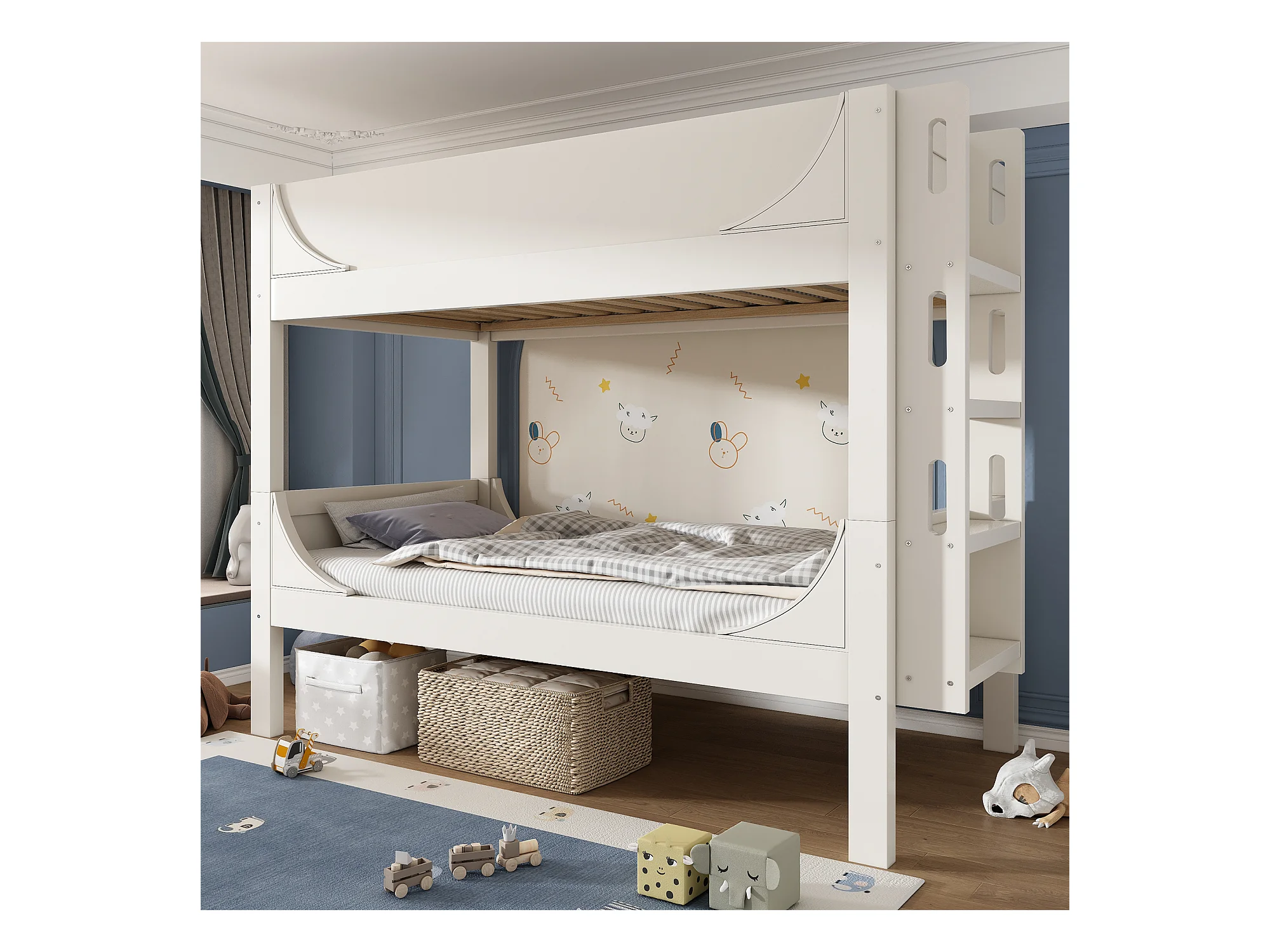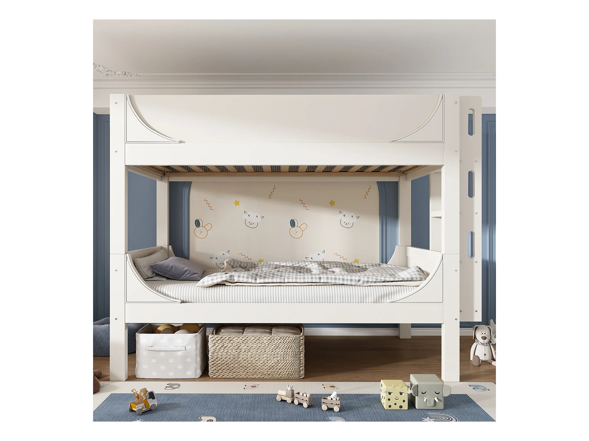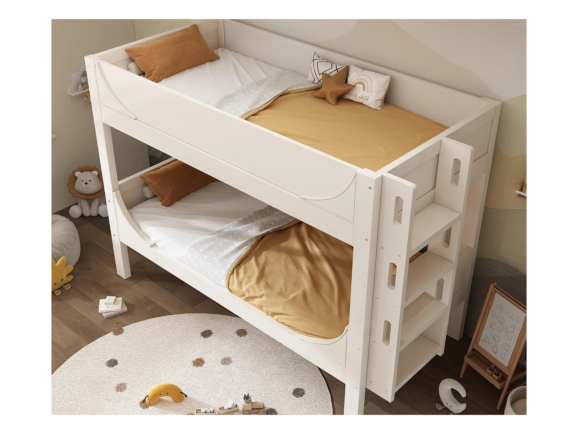 Lit superposé 90x200cm - peut être divisé en 2 lits simples - avec échelle amovible - Bois massif + MDF - Blanc (sans matelas)