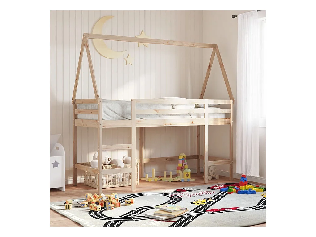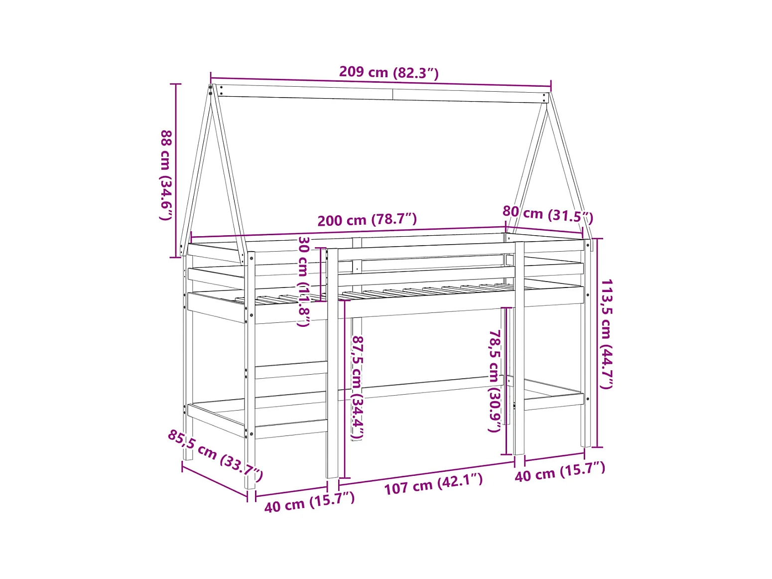 Lit superposé avec échelle et toit sans matelas 80x200 cm