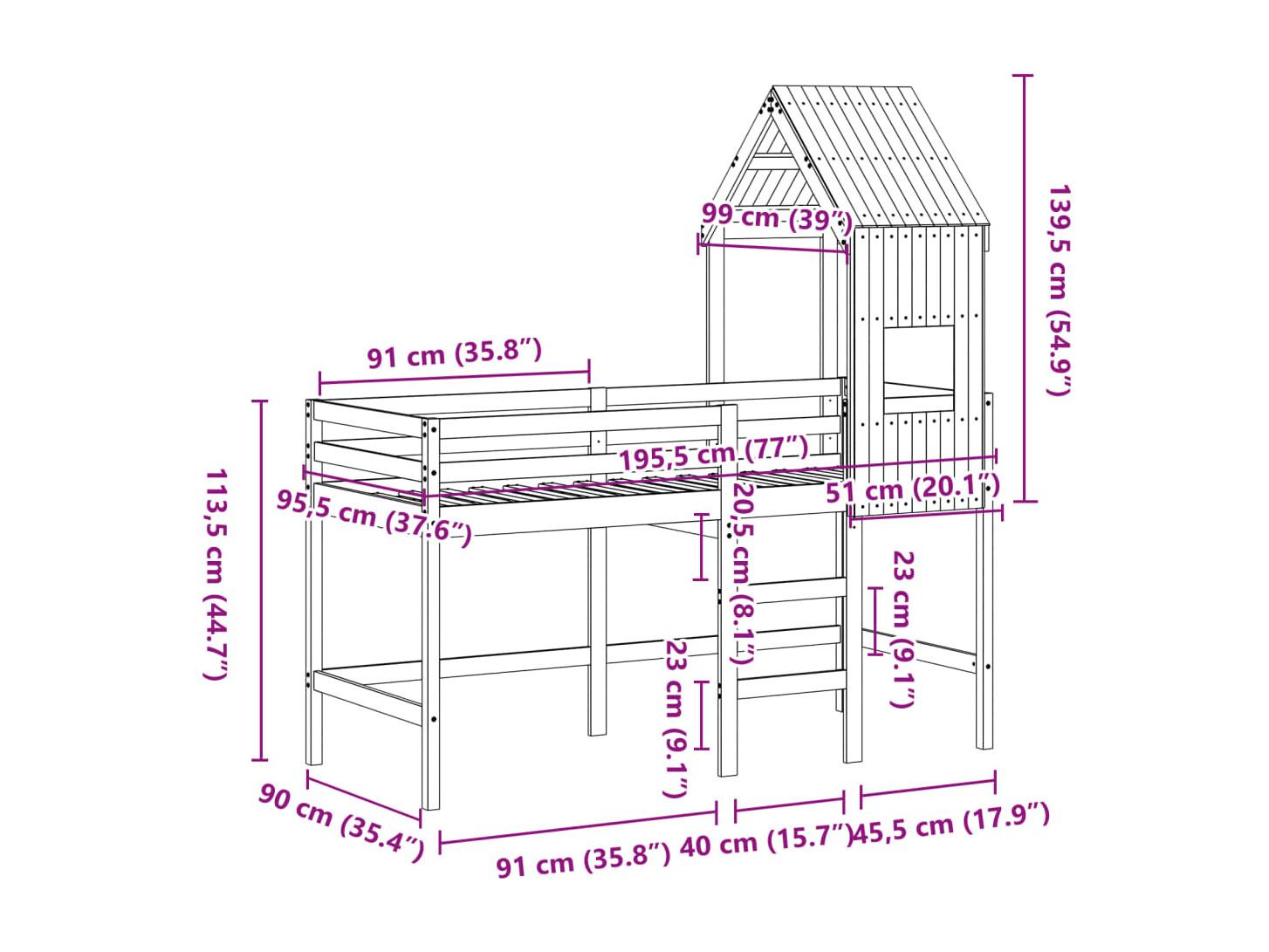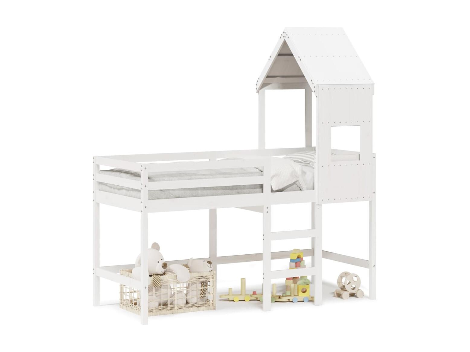 Lit superposé avec échelle et toit sans matelas blanc 90x190 cm