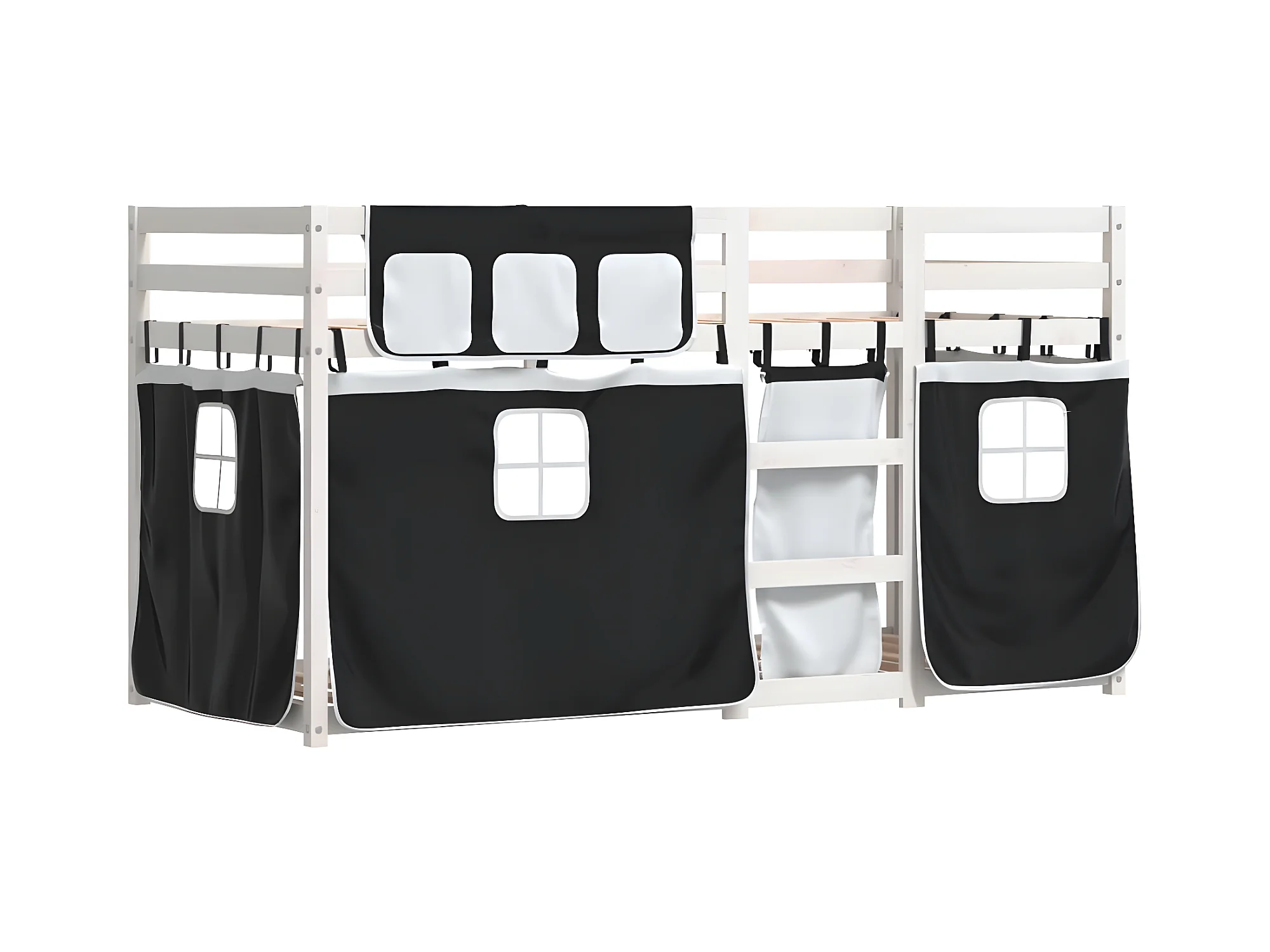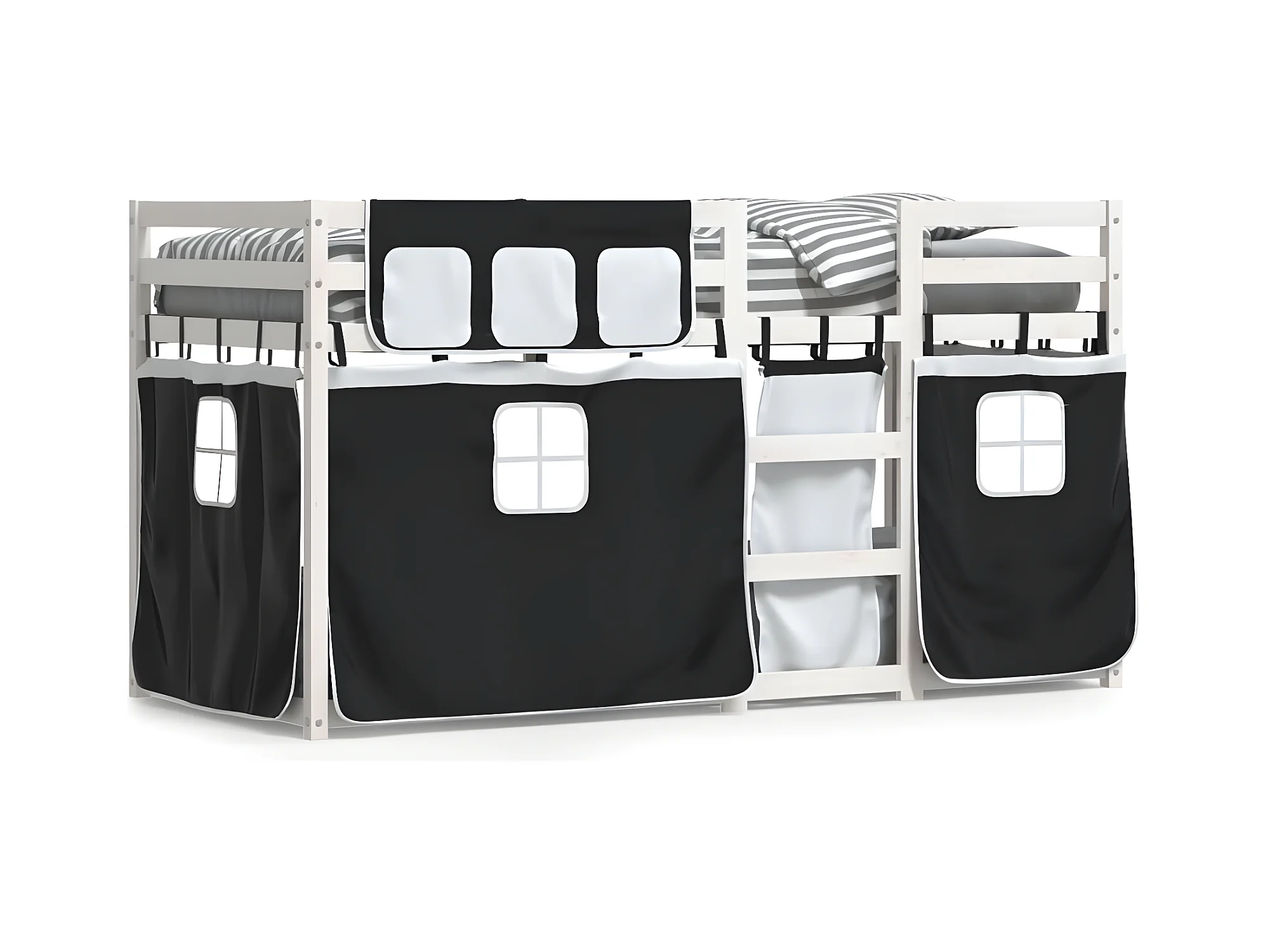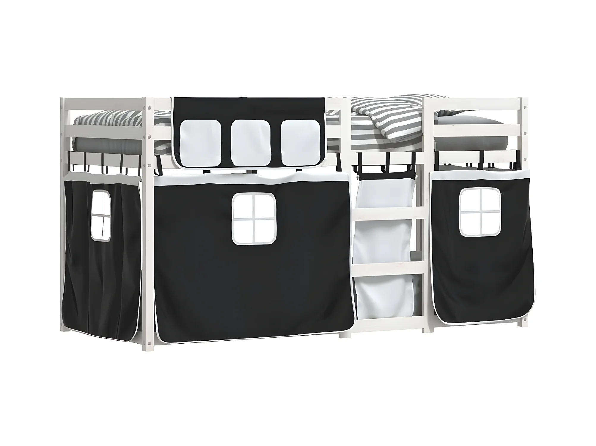 Lit superposé avec rideaux blanc/noir 75x190 cm bois pin massif