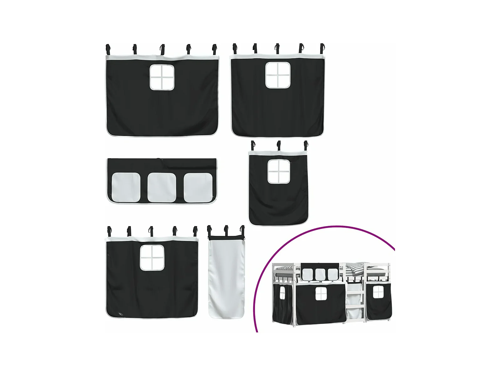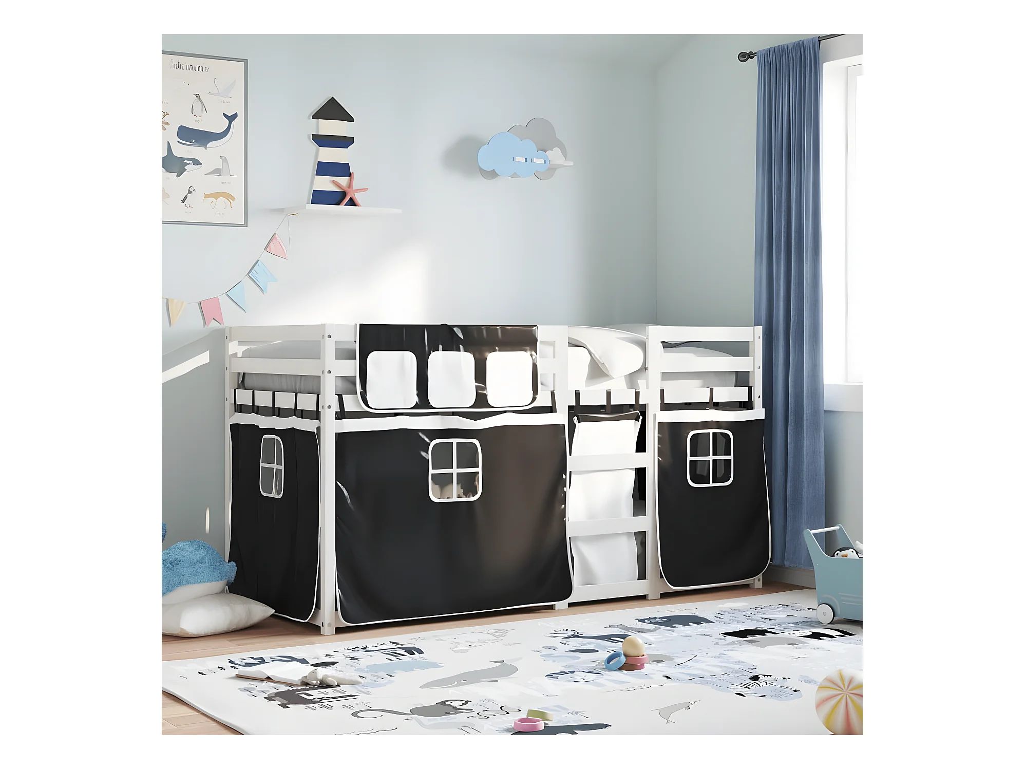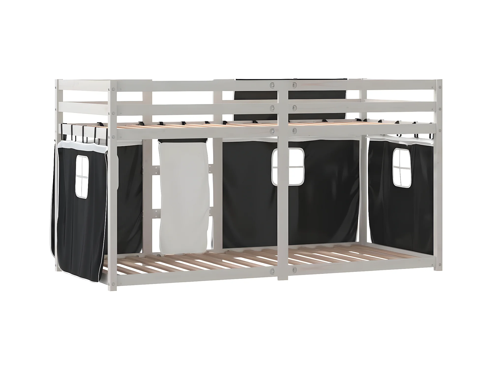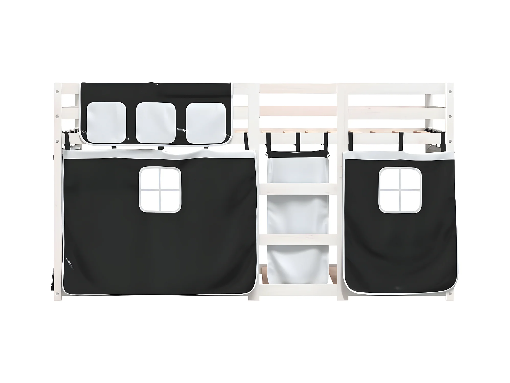 Lit superposé avec rideaux blanc/noir 75x190 cm bois pin massif