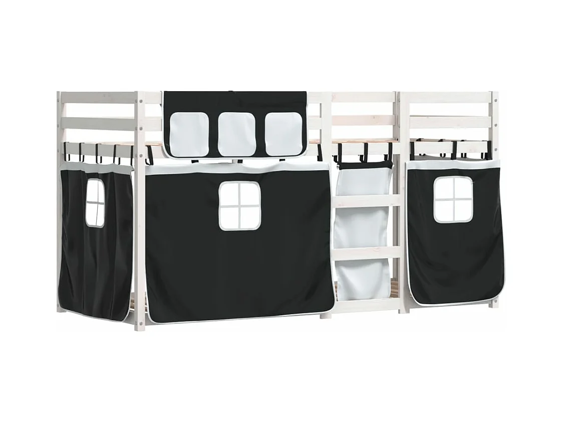 Lit superposé avec rideaux blanc-noir 80x200 bois pin massif