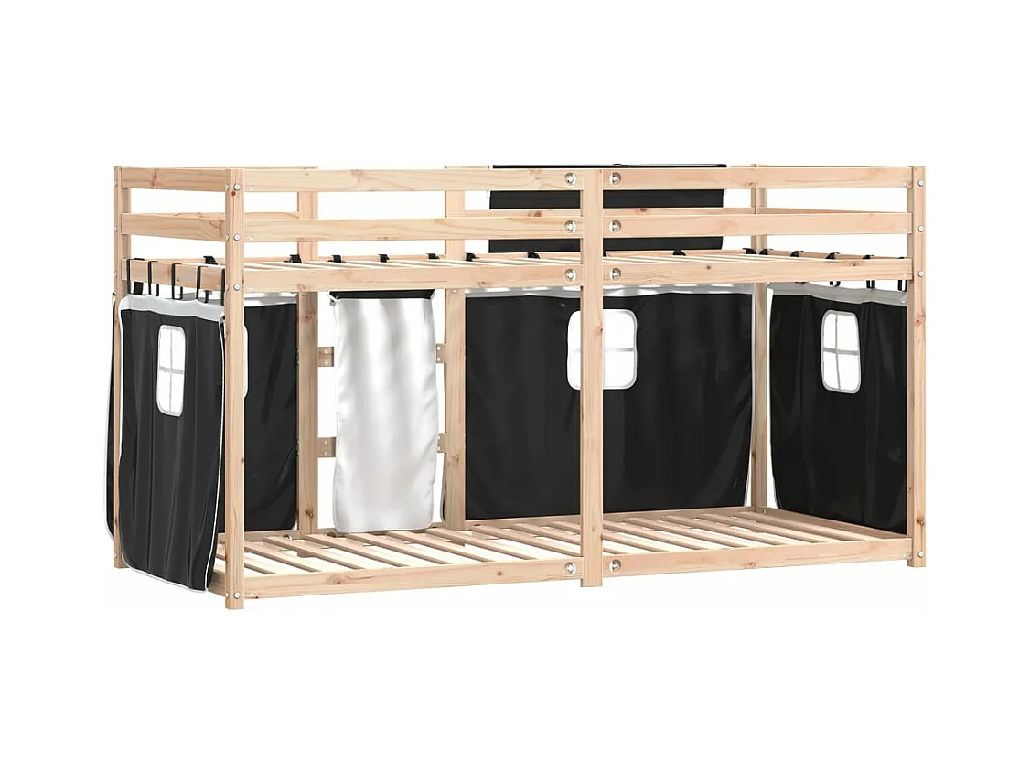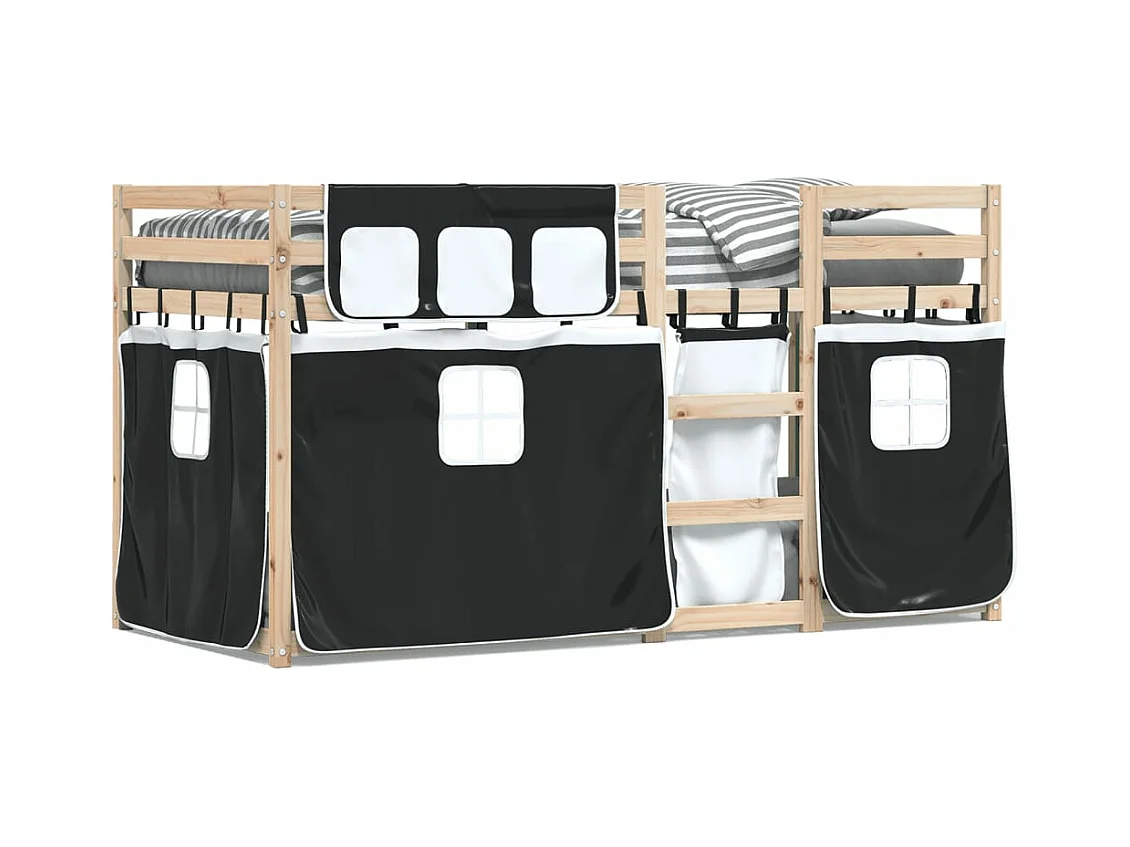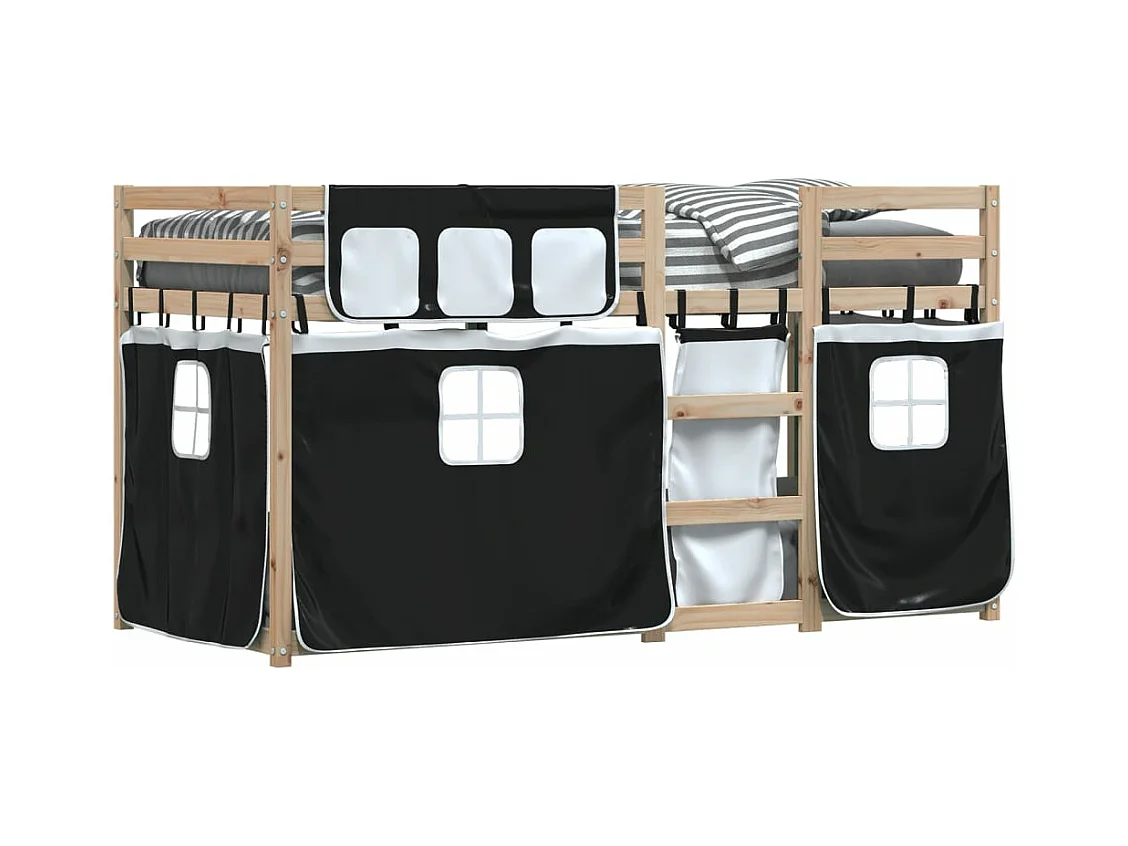 Lit superposé avec rideaux blanc-noir 90x190 bois pin massif