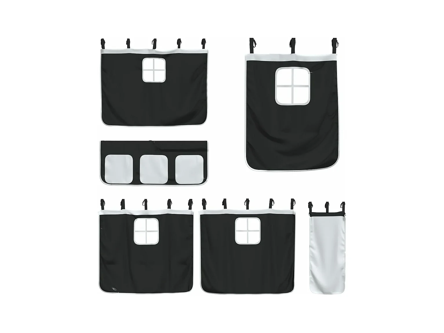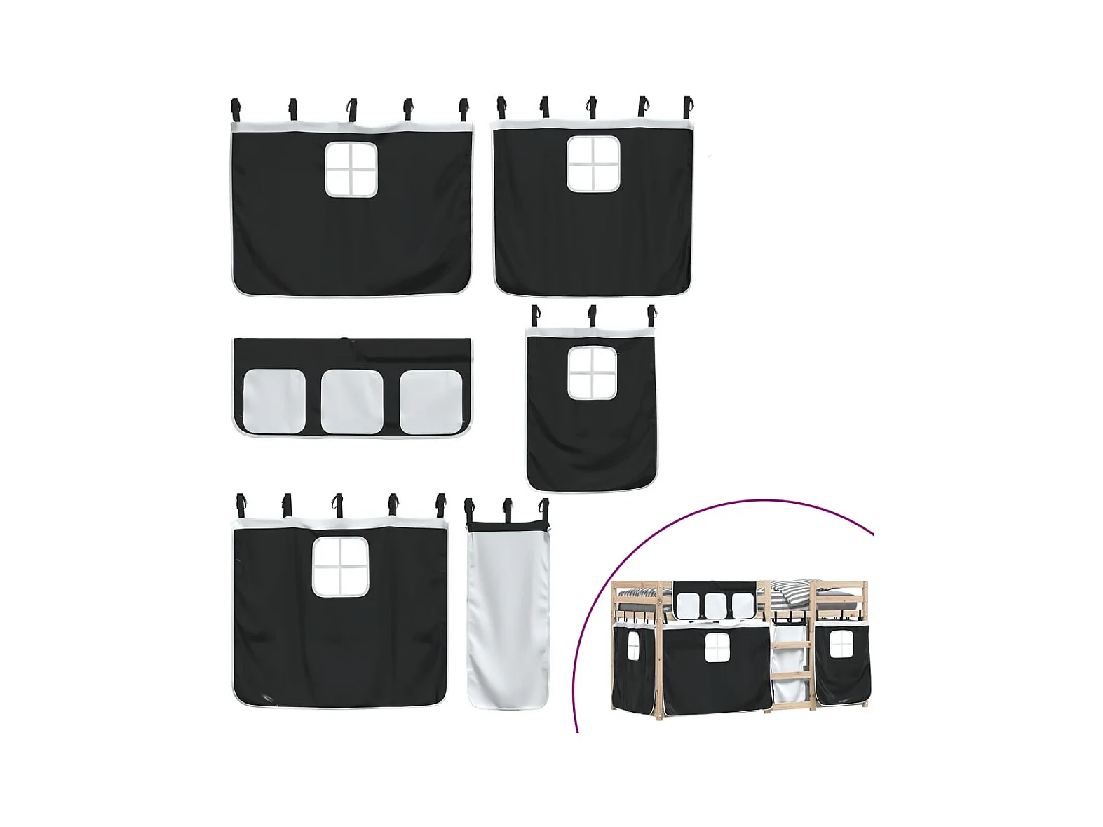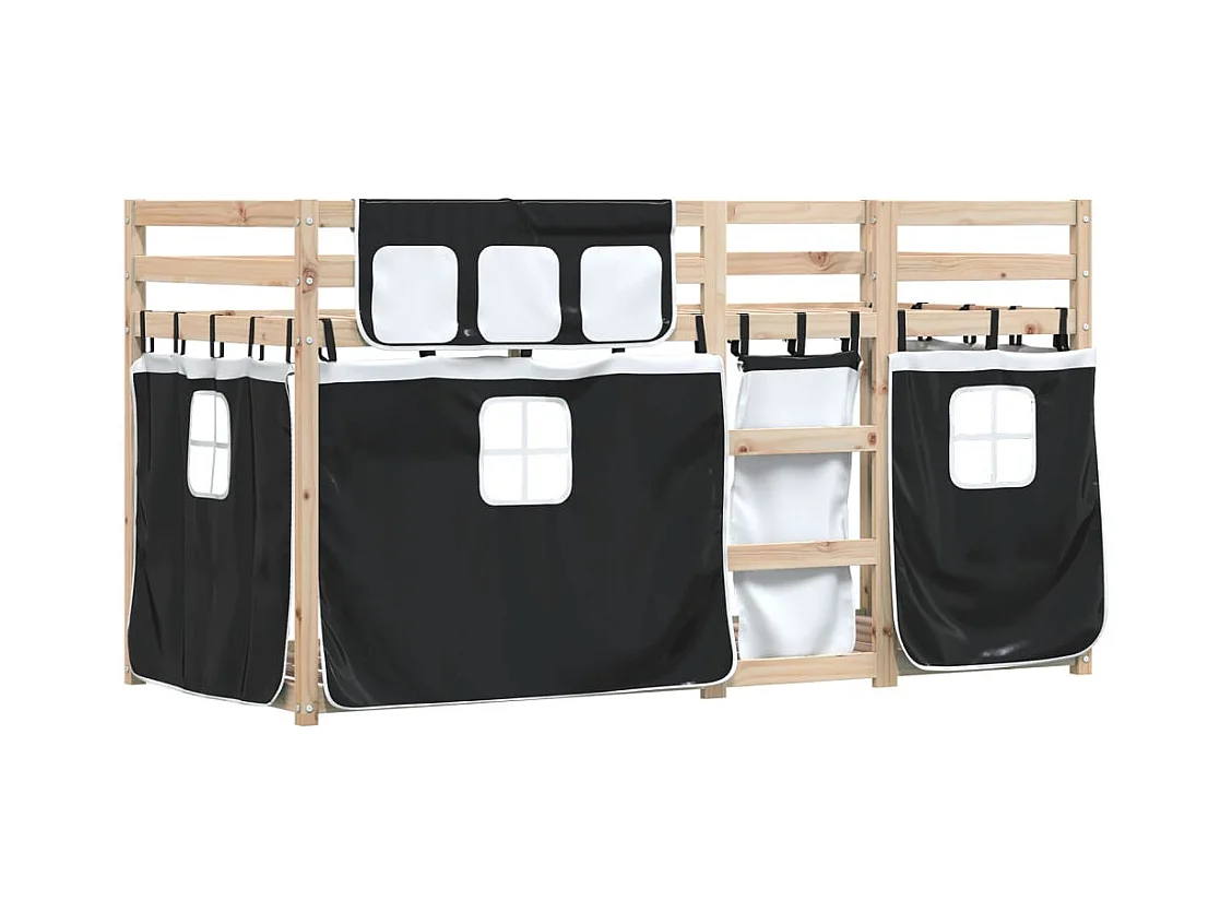 Lit superposé avec rideaux blanc-noir 90x190 bois pin massif