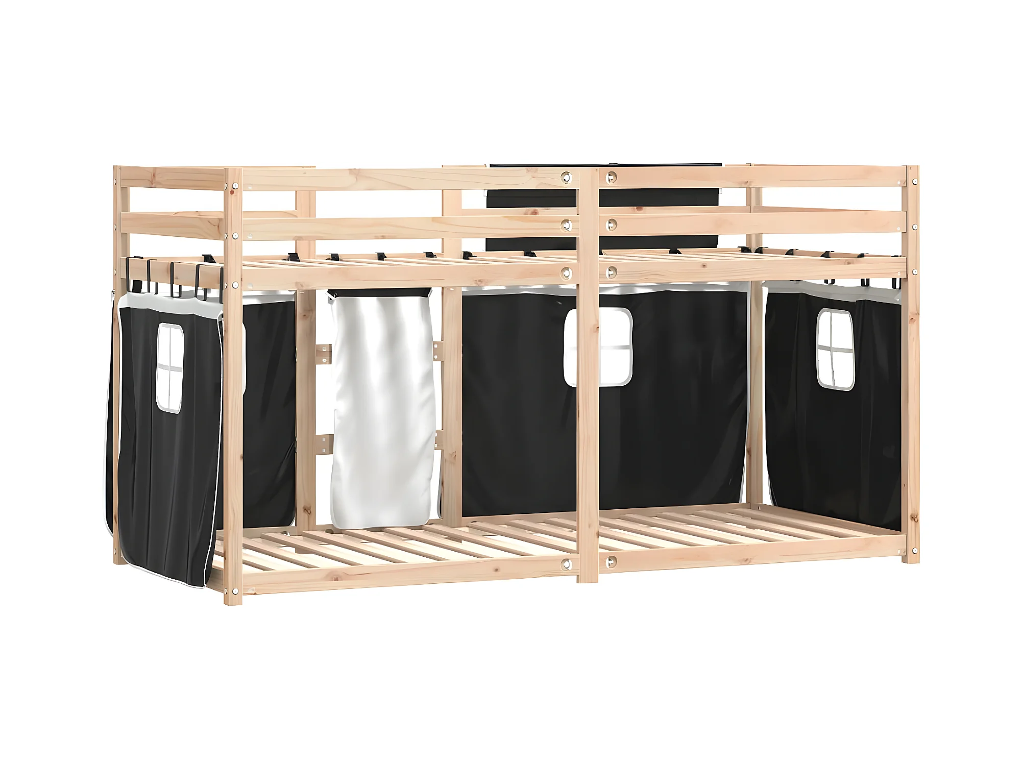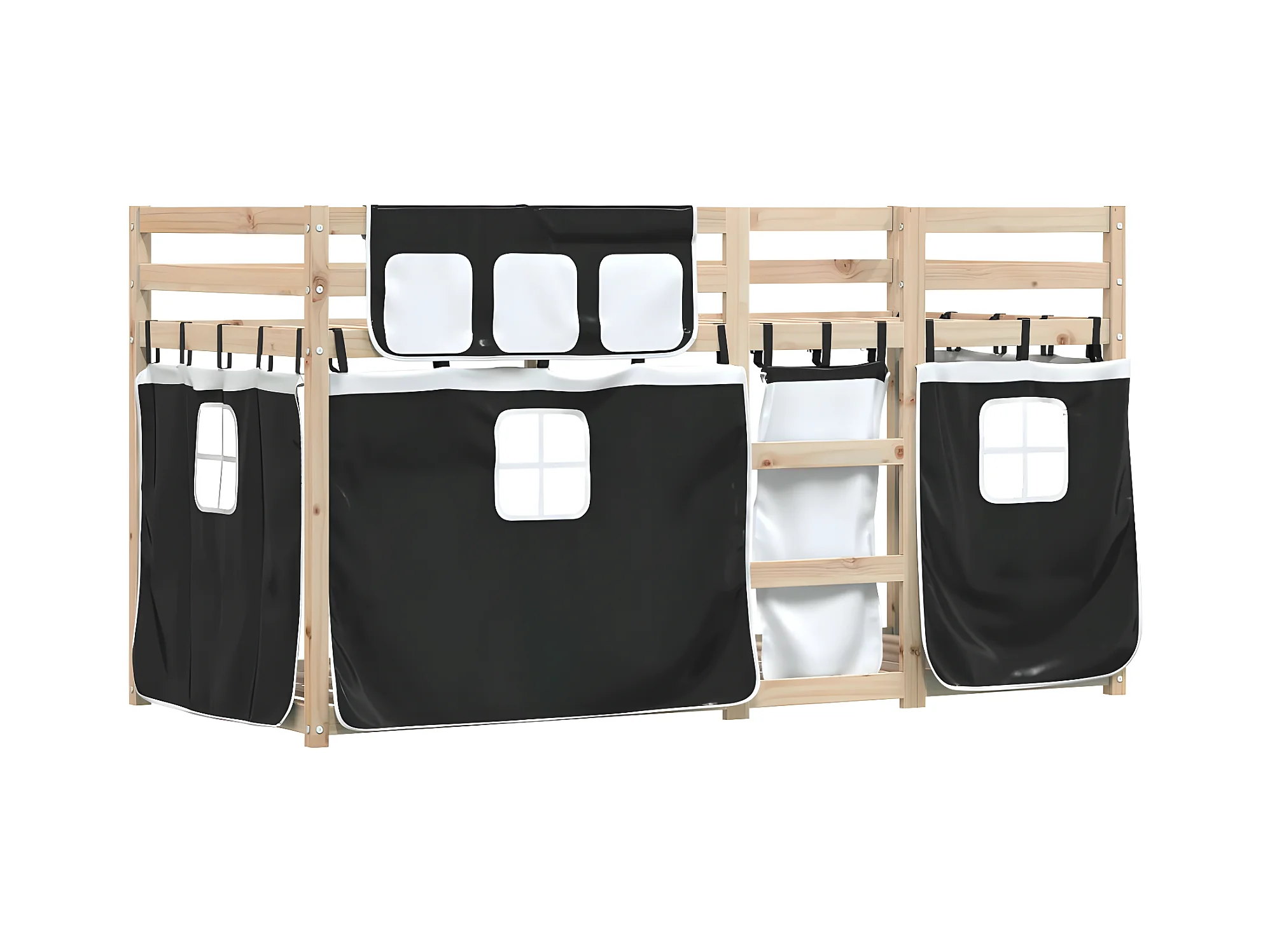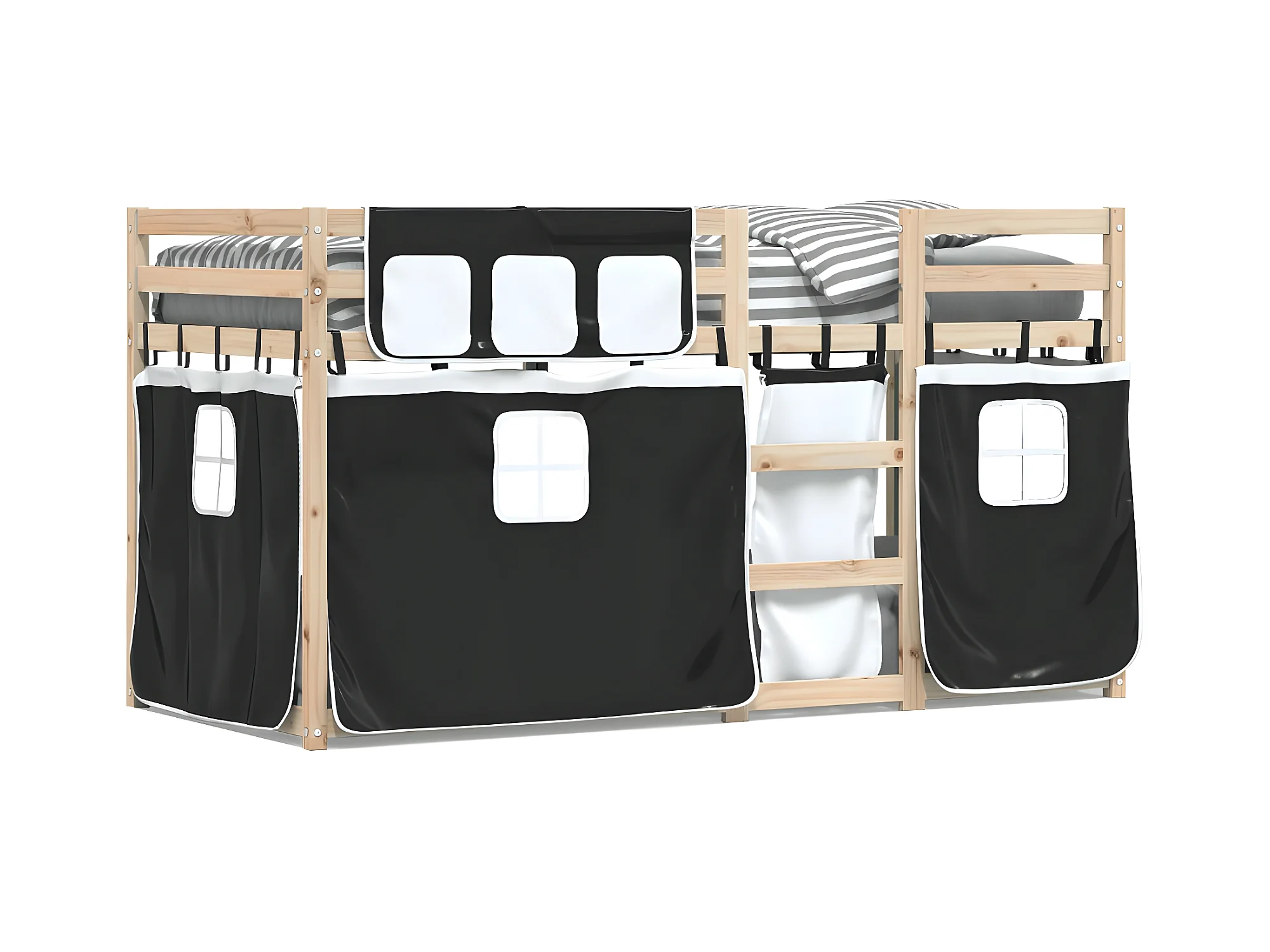 Lit superposé avec rideaux blanc/noir 90x190 cm bois pin massif