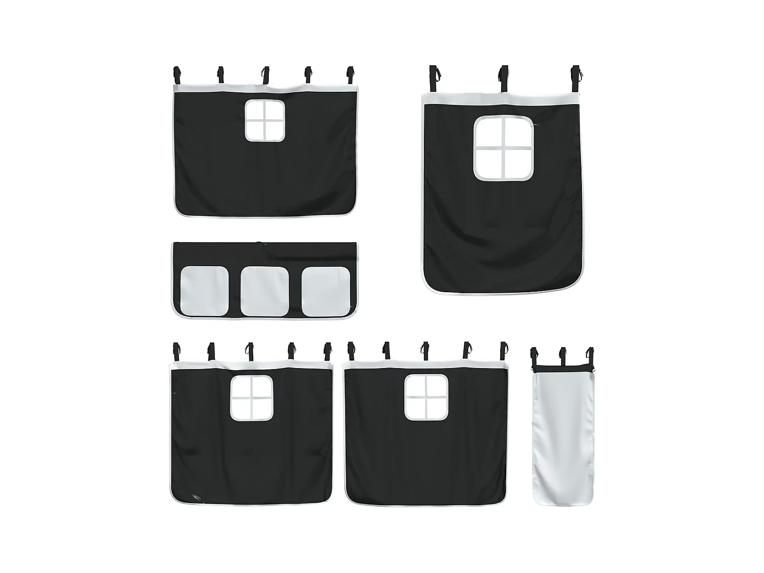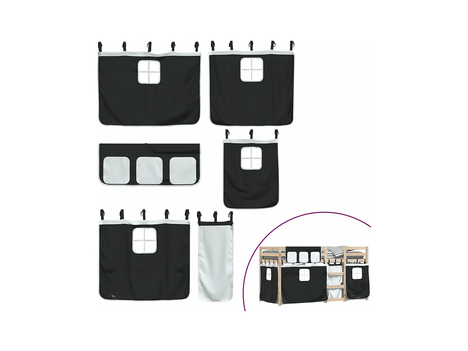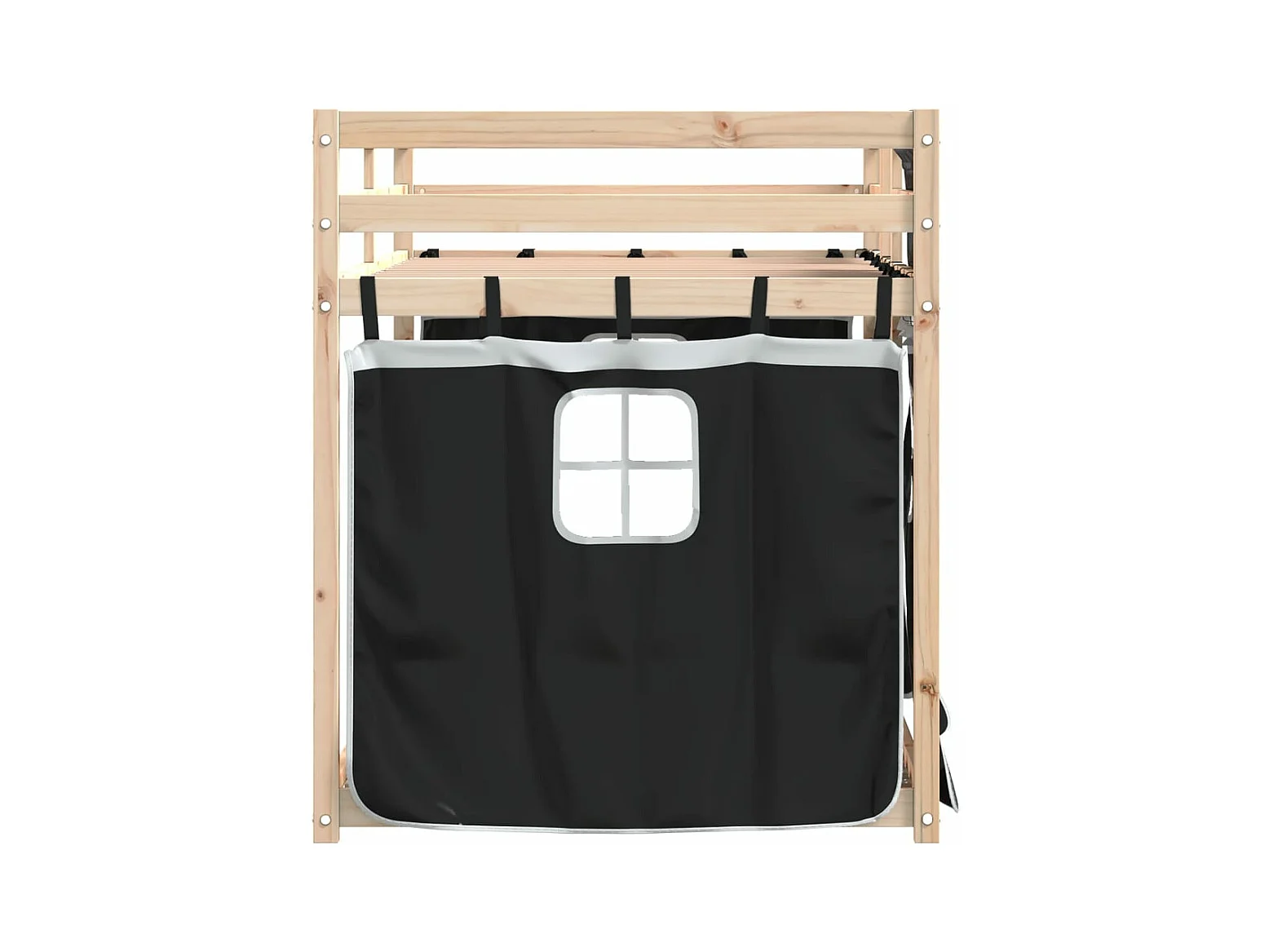 Lit superposé avec rideaux blanc/noir 90x190 cm bois pin massif