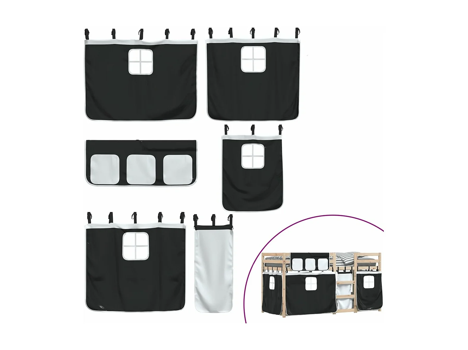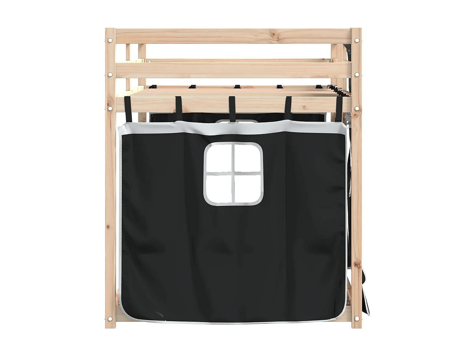 Lit superposé avec rideaux blanc-noir 90x200 bois pin massif