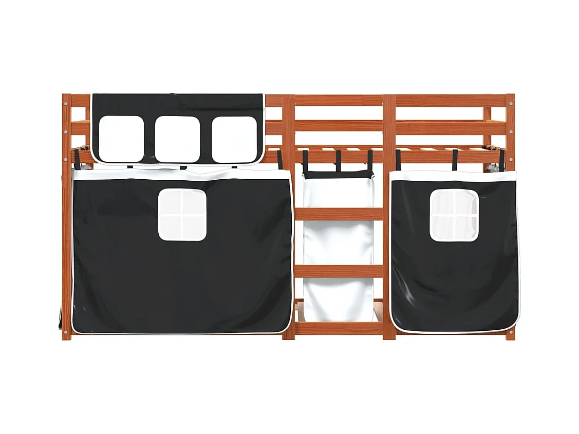 Lit superposé avec rideaux blanc/noir 90x200 cm bois pin massif FR42542