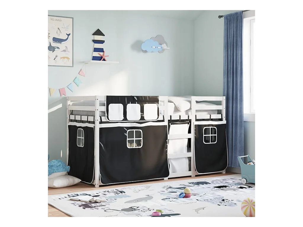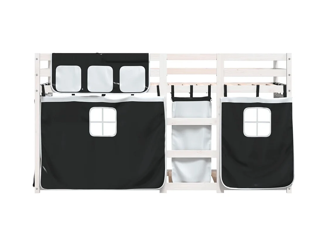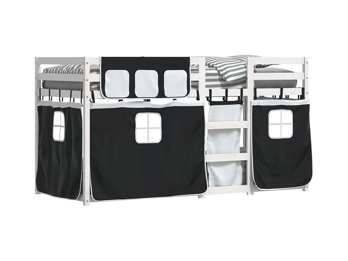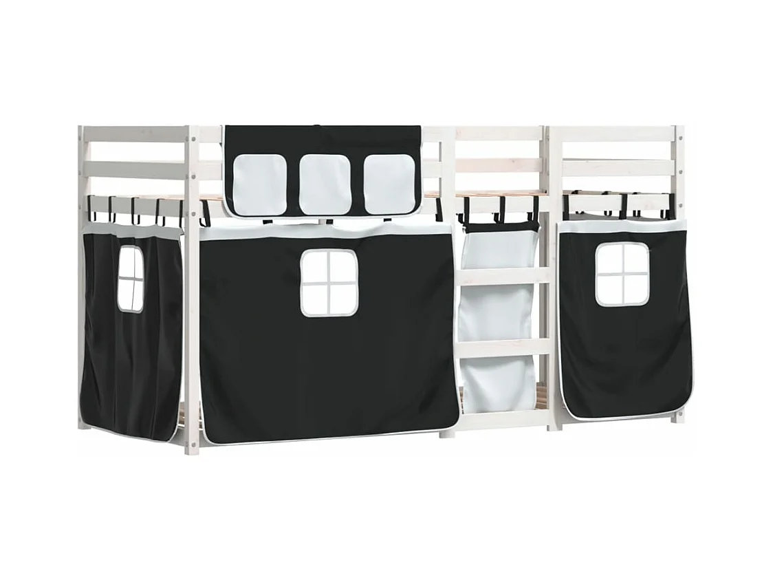 Lit superposé avec rideaux blanc/noir 90x200 cm bois pin massif FR51316
