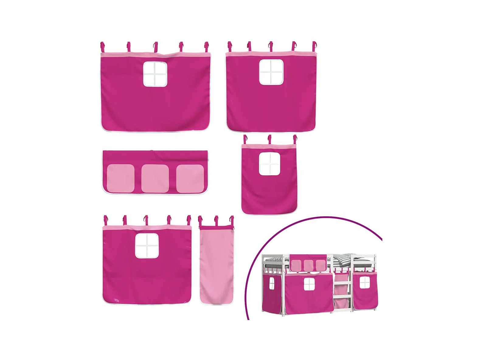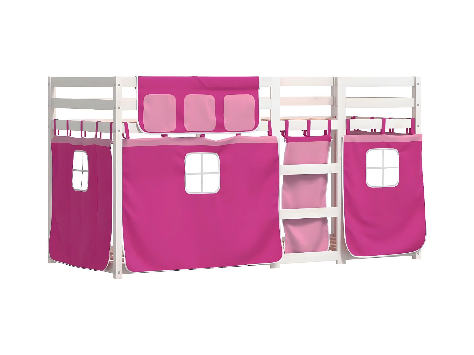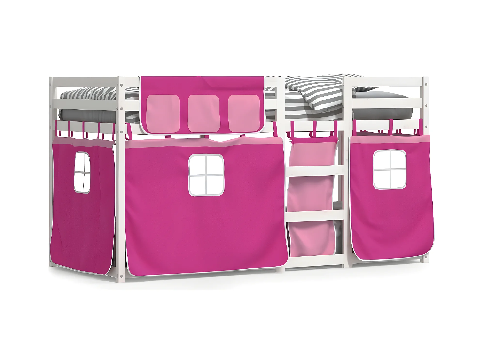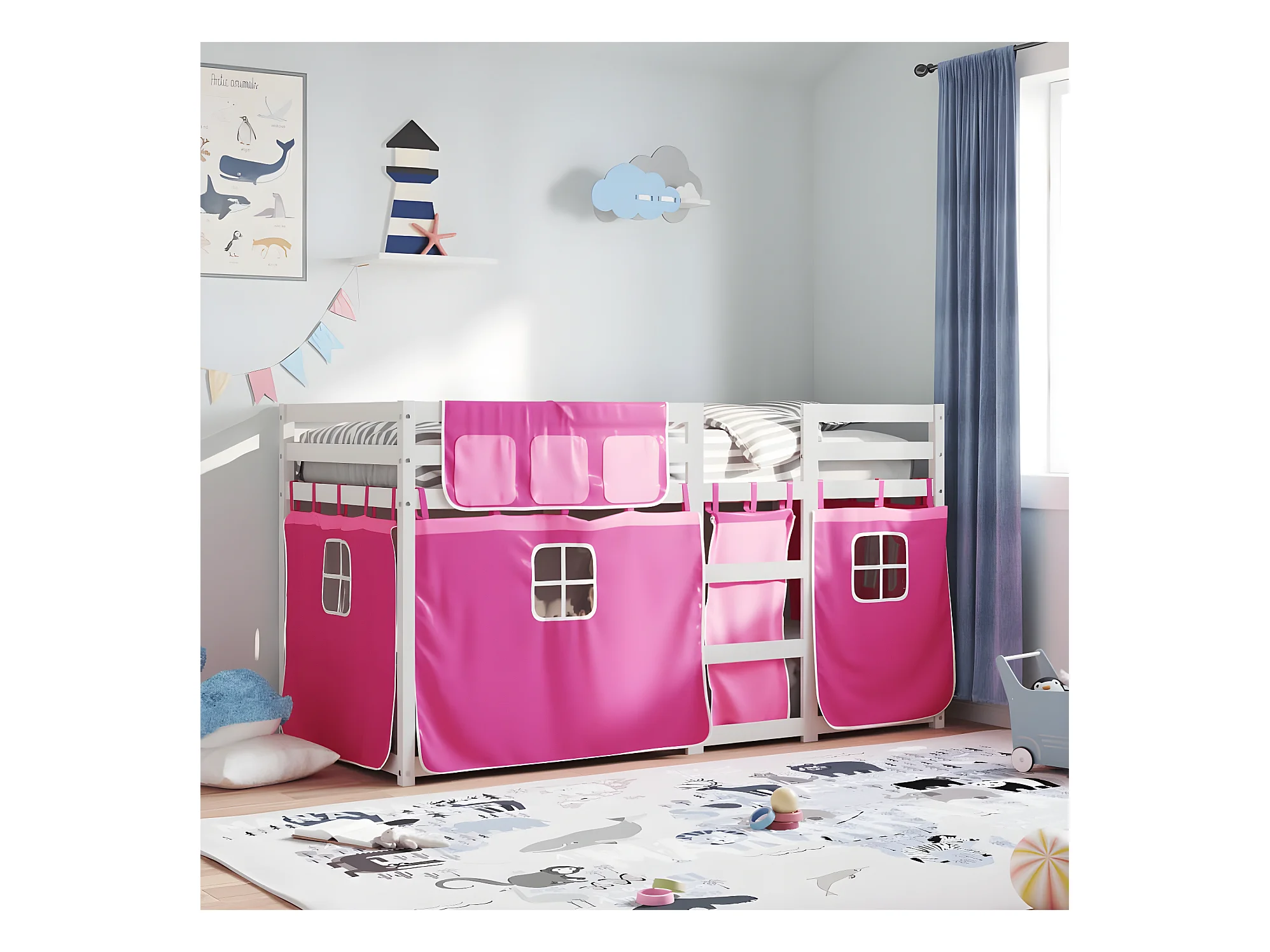 Lit superposé avec rideaux rose 90x190 cm bois pin massif