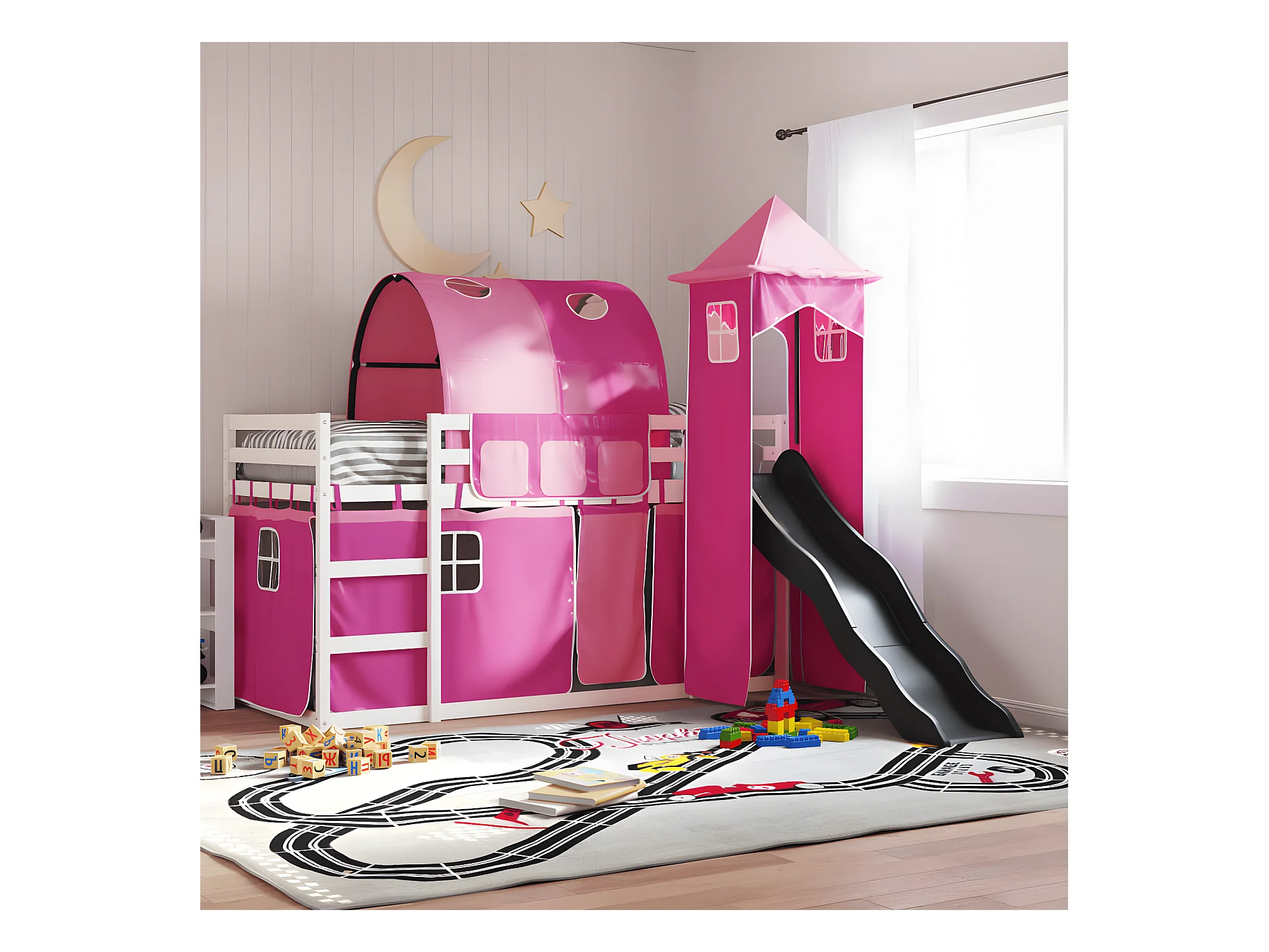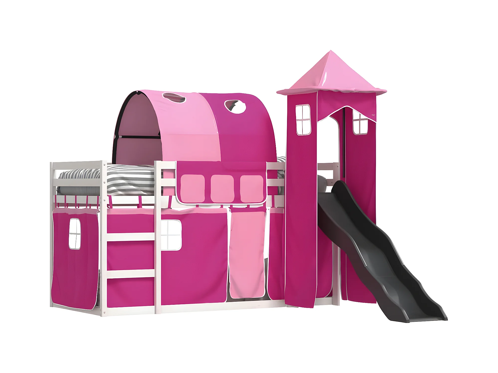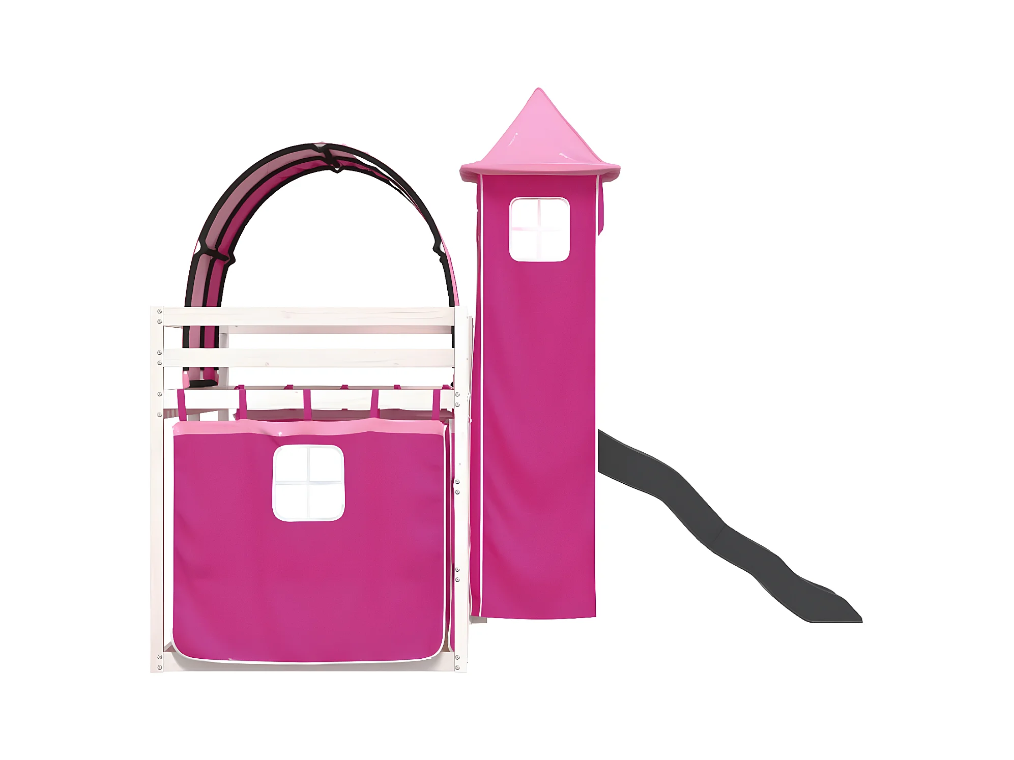 Lit superposé avec toboggan et rideaux rose 90x190 cm