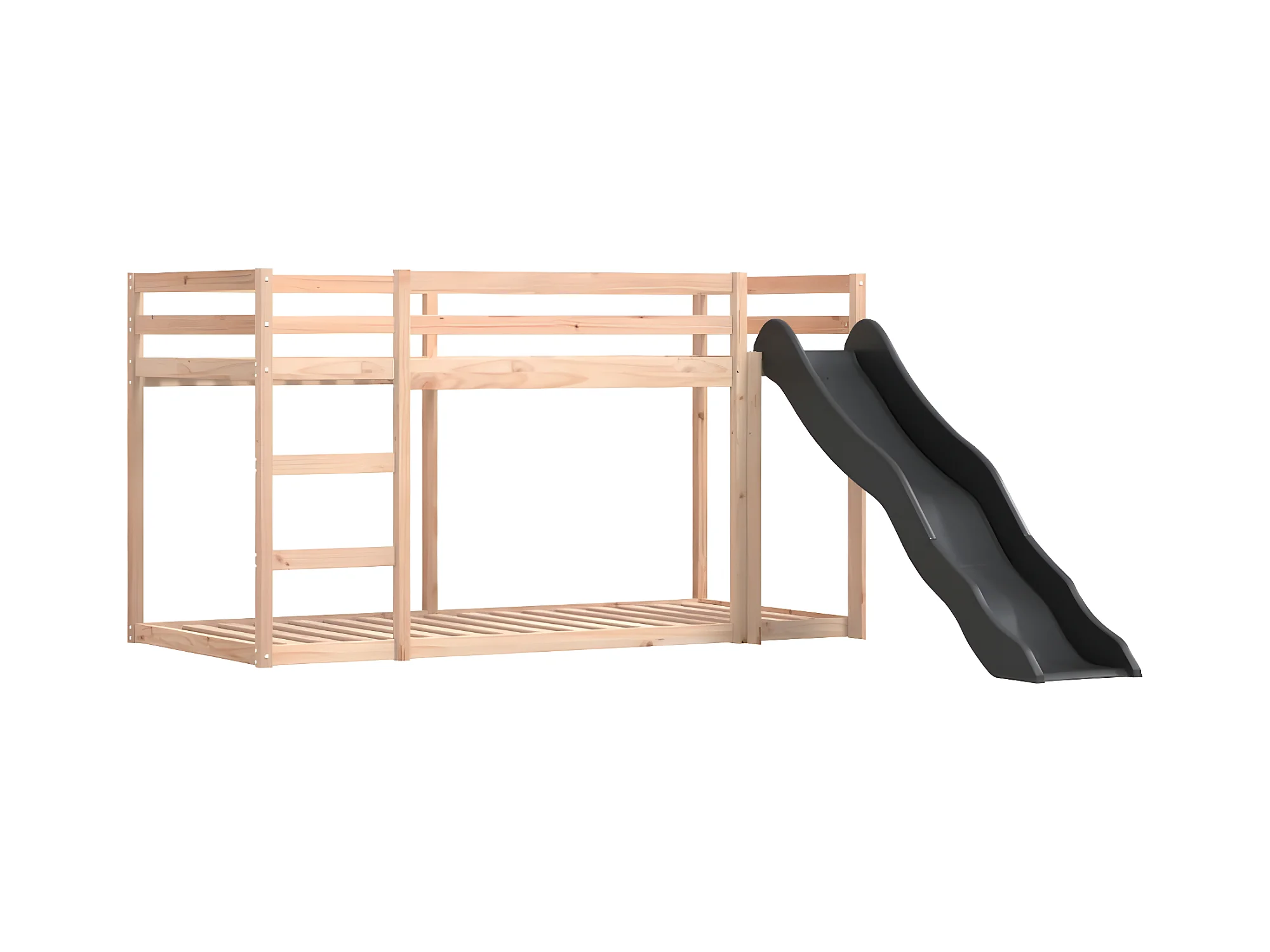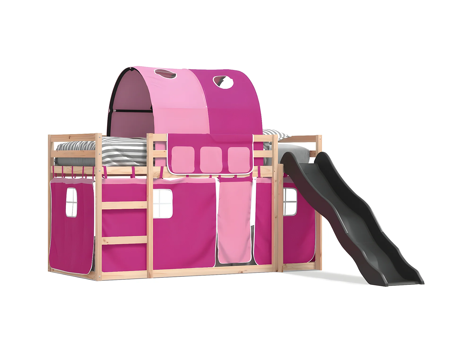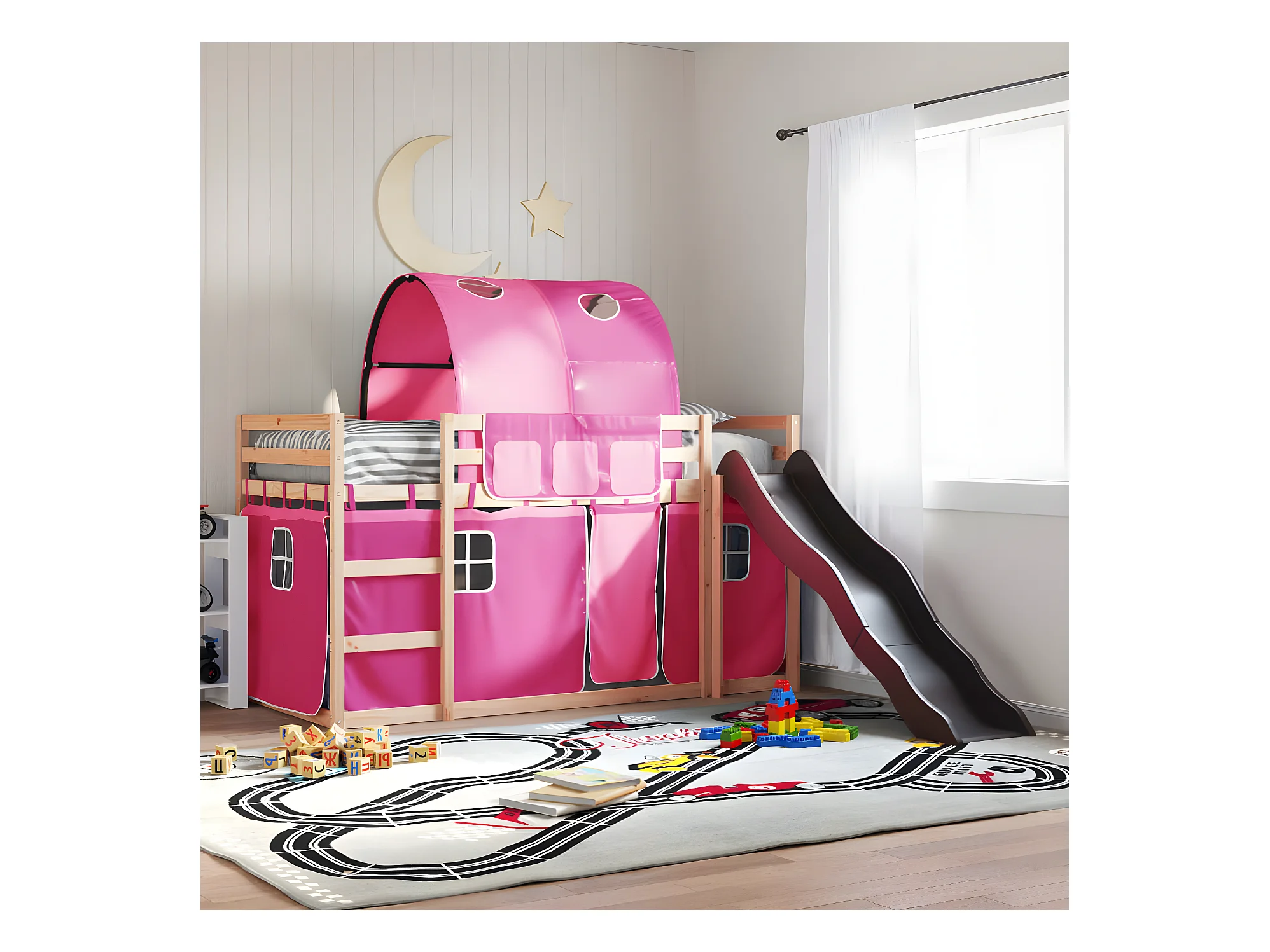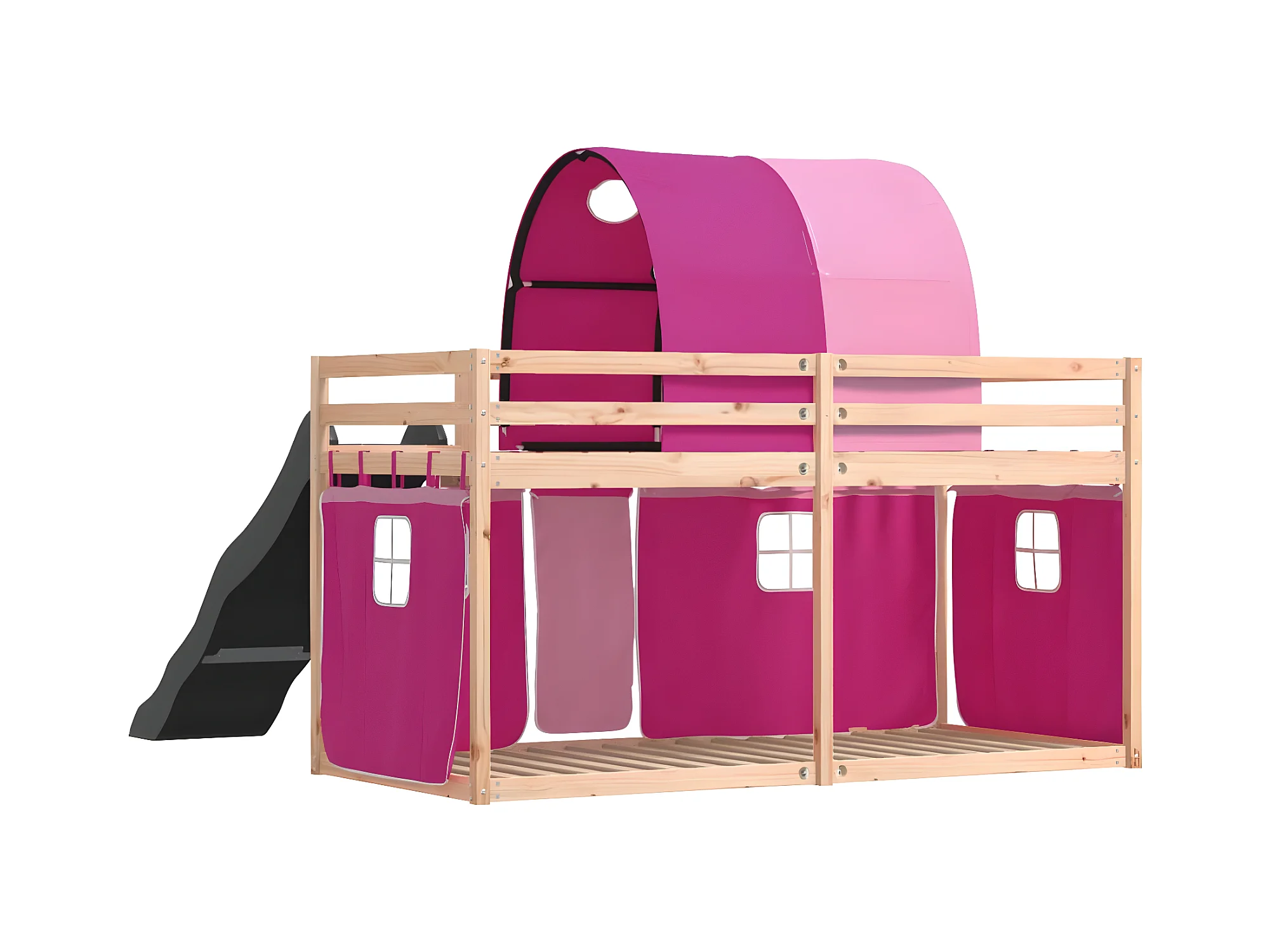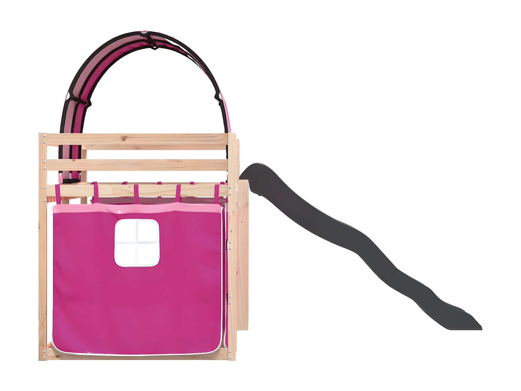 Lit superposé avec toboggan et rideaux rose 90x190 cm