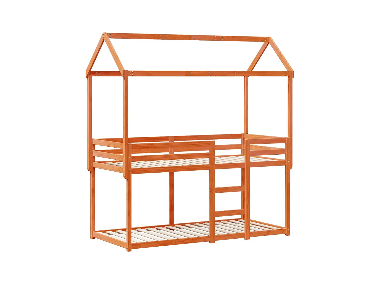 Lit superposé avec toit cire marron 80x200cm bois massif de pin FR79940