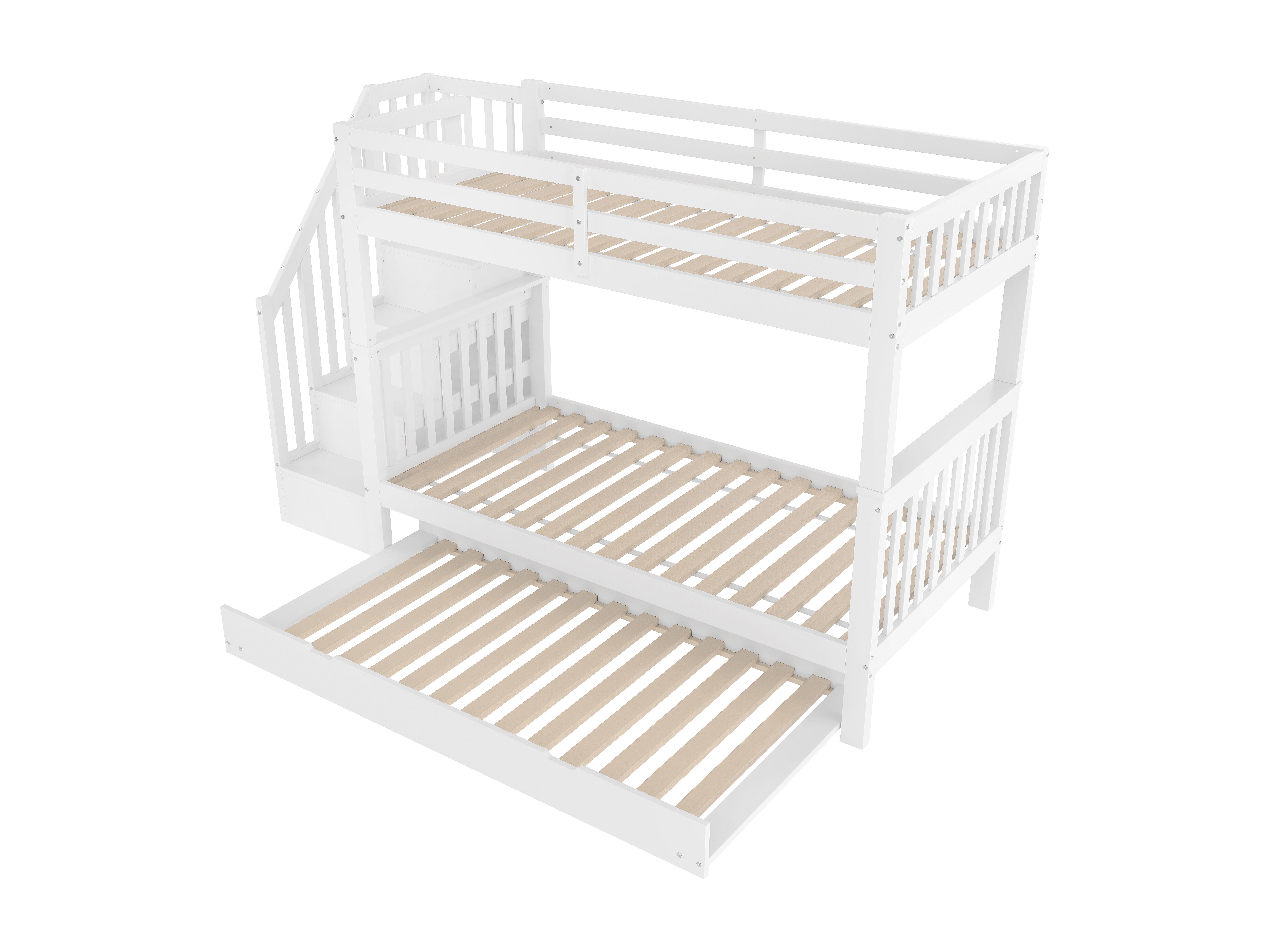 Lit superposé blanc 90x200cm avec lit gigogne 90x190cm, escalier de rangement, sans matelas