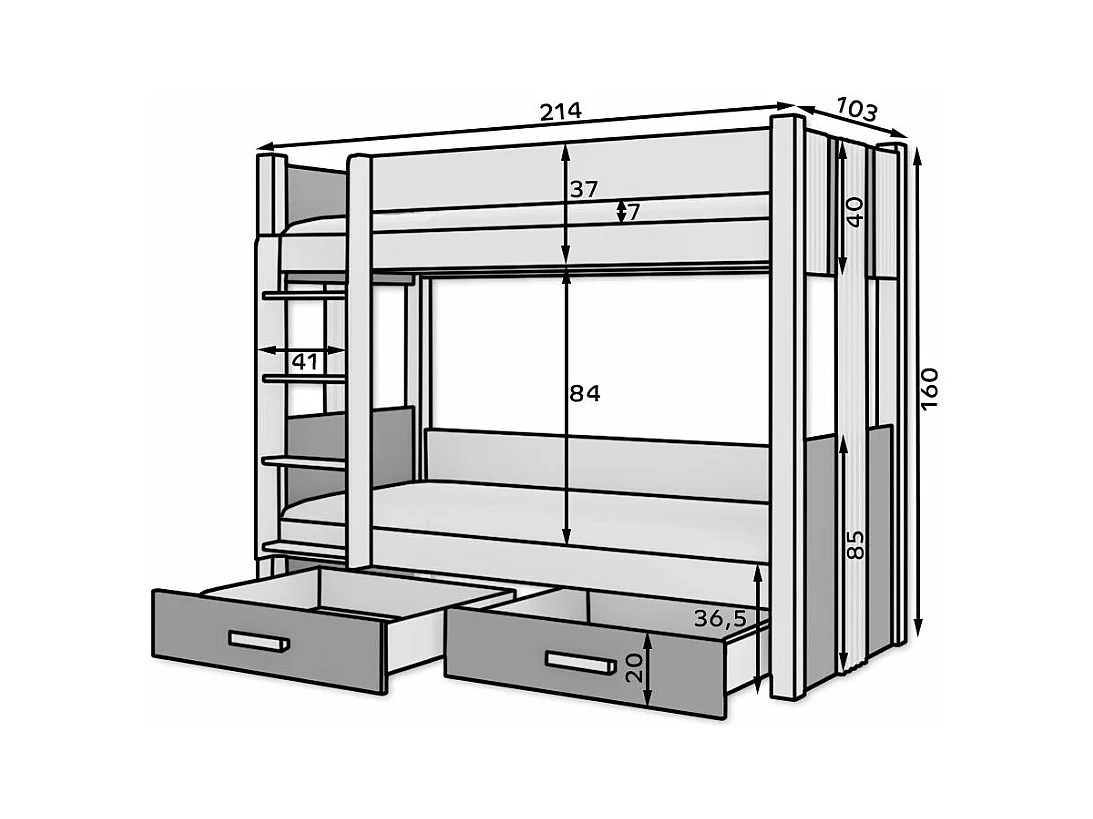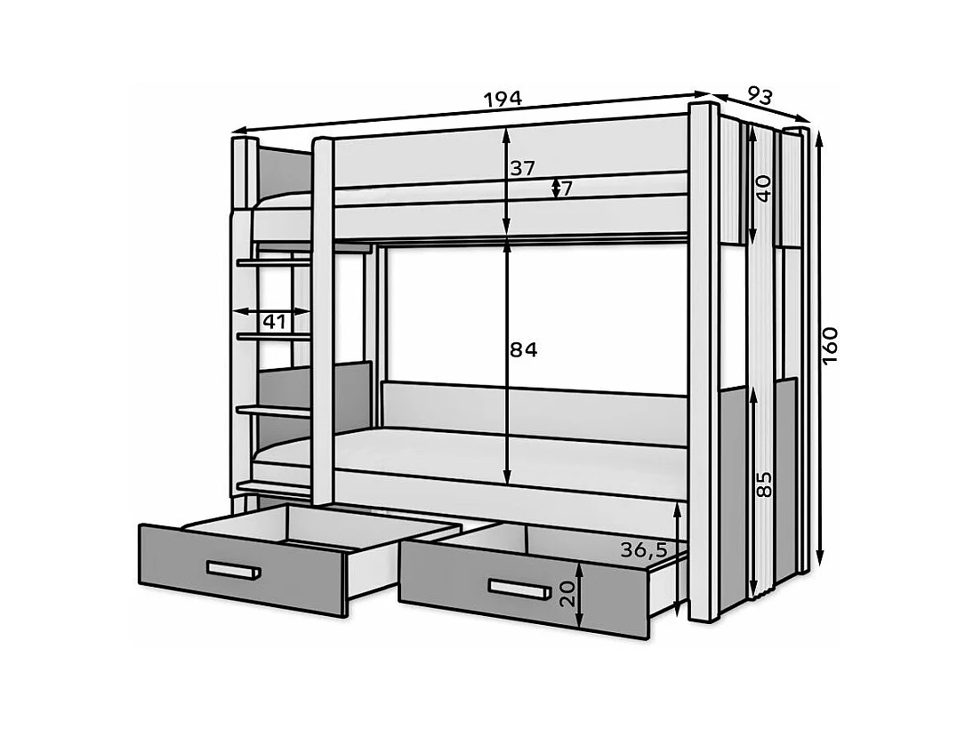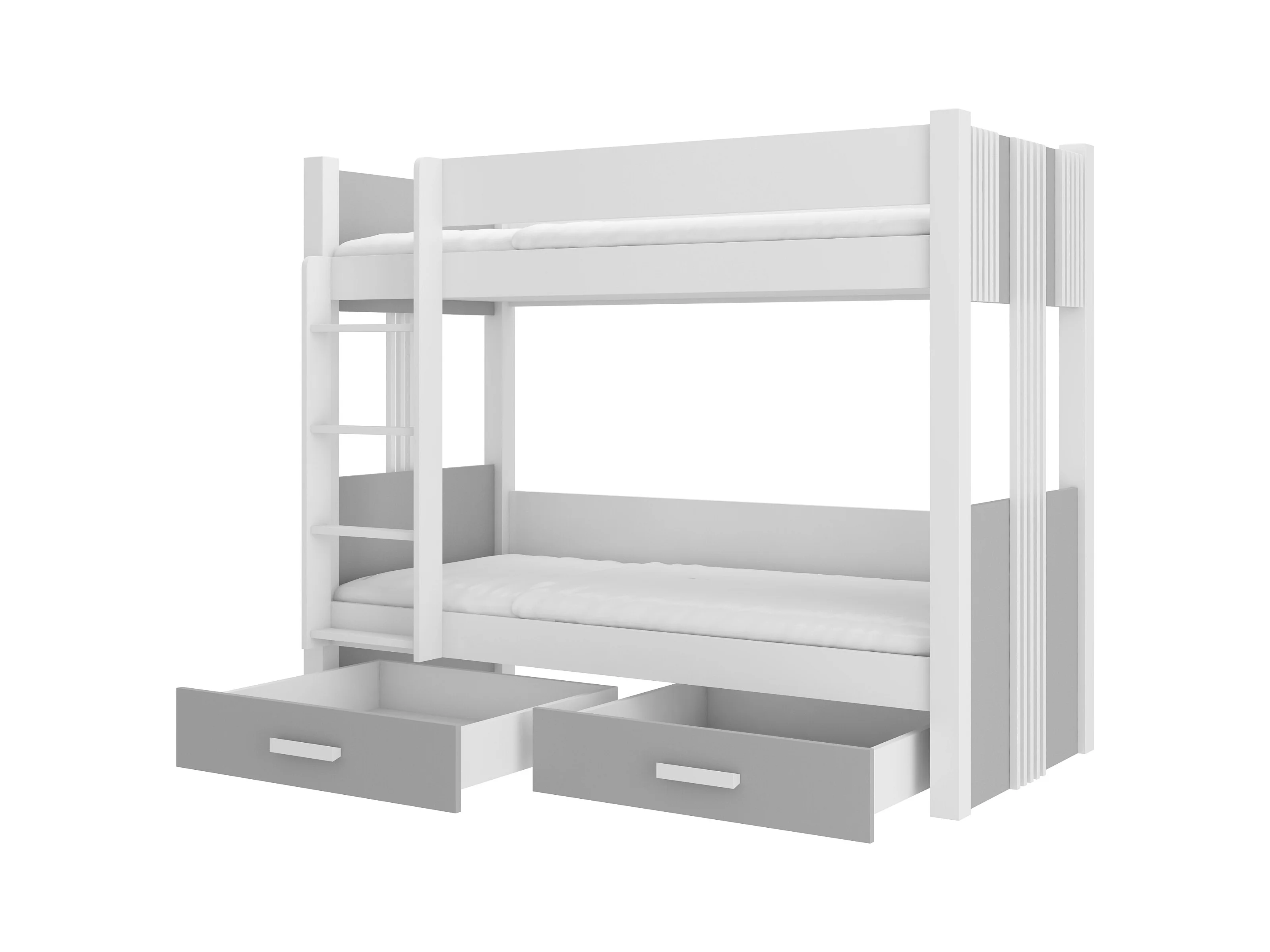 Lit superposé blanc et gris clair 2 couchages 80x180 ou 90x200 avec tiroirs de rangement Luka-80x180