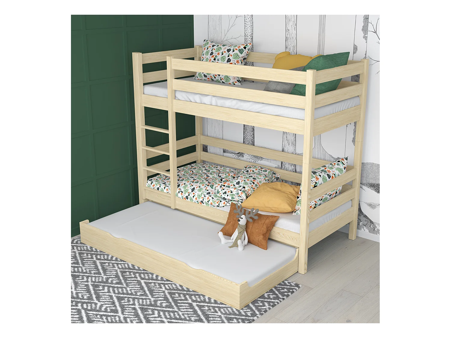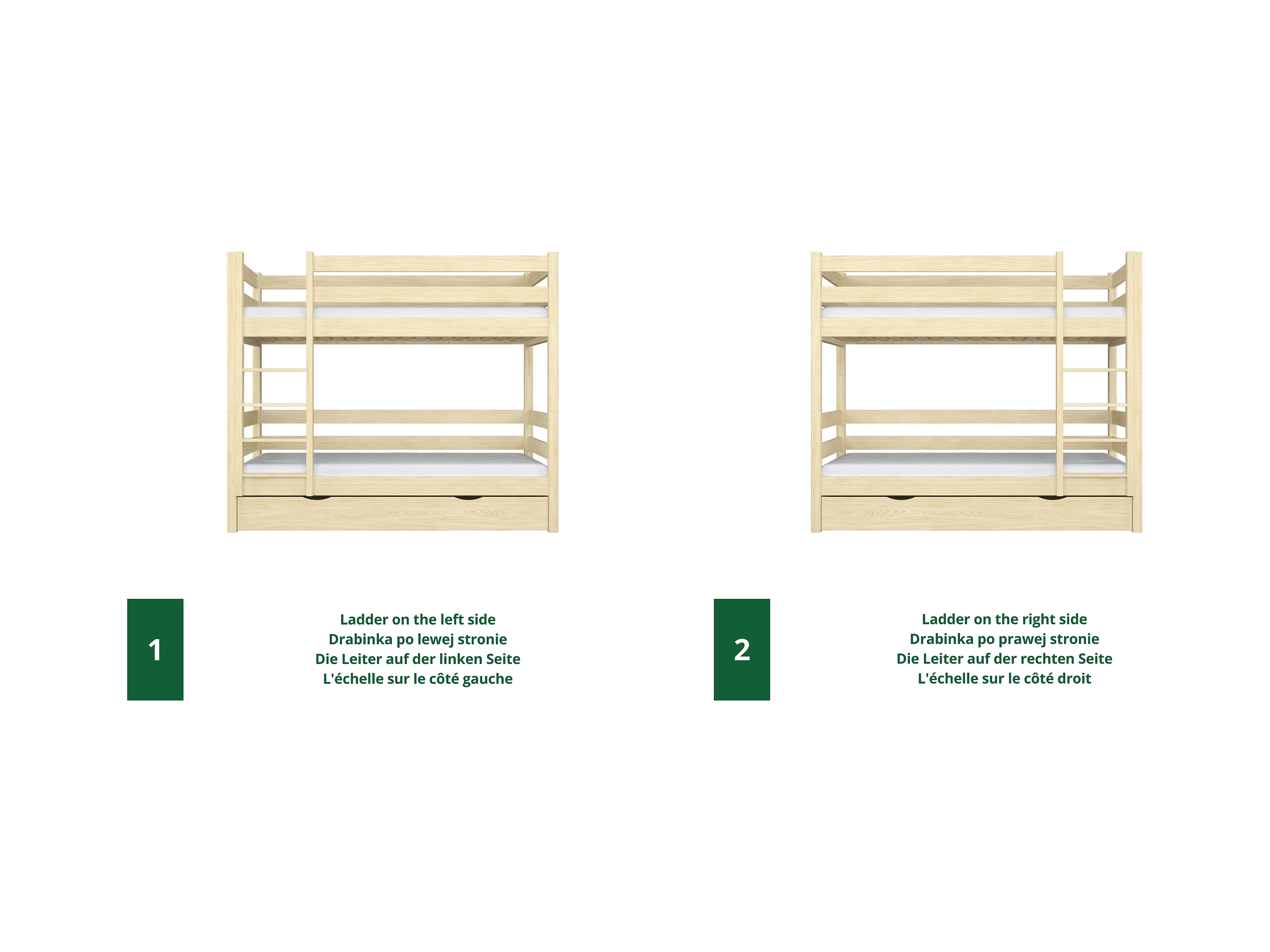 Lit superposé en bois - avec tiroir pour matelas N01 Pin Clair 100x190
