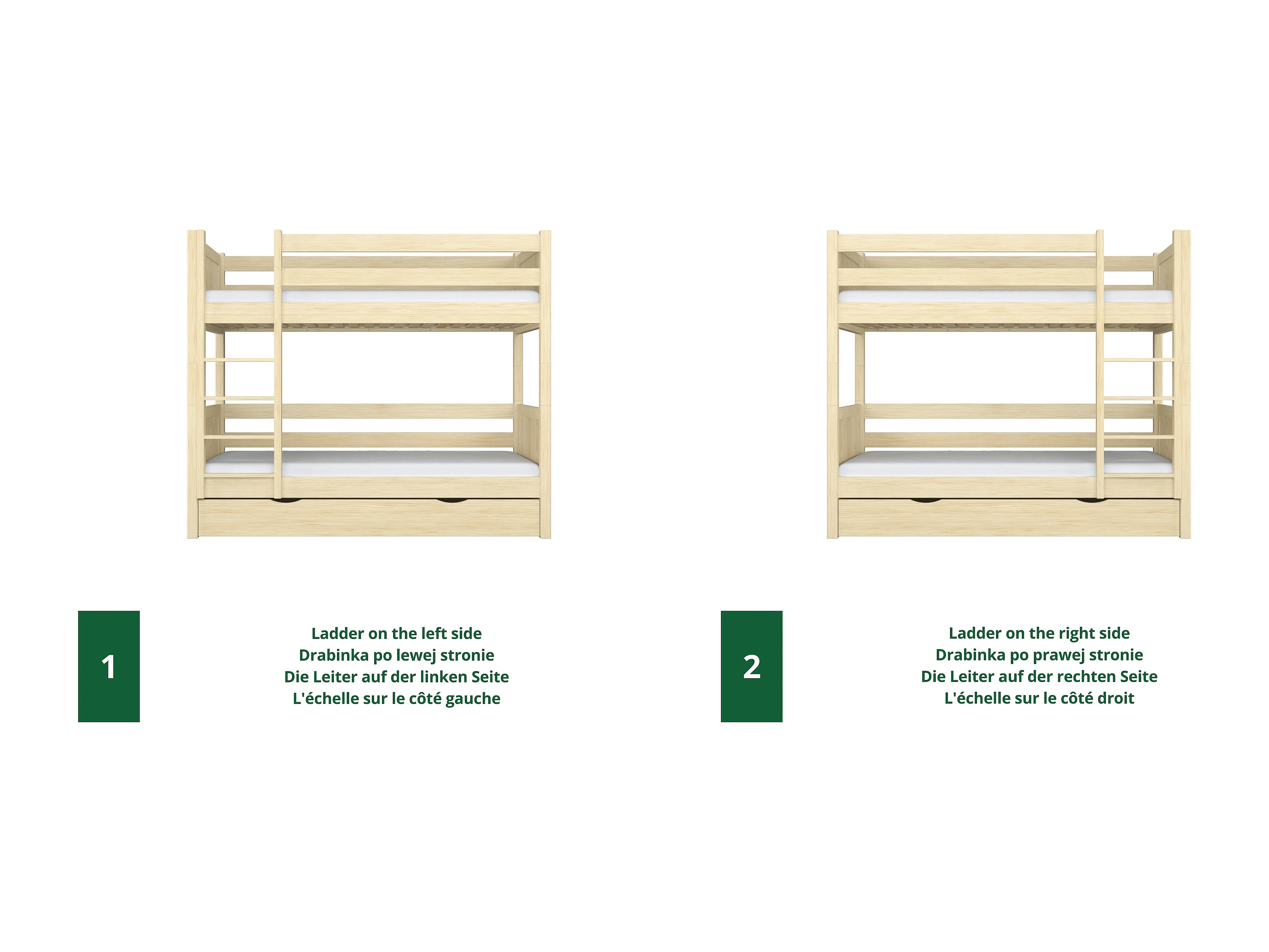Lit superposé en bois - avec tiroir pour matelas N02 Pin Clair 120x180