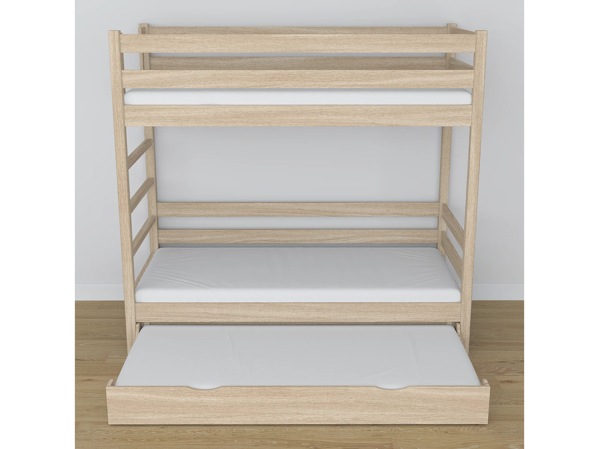 Lit superposé en chêne - avec tiroir pour matelas N03 Chêne Blanchi 120x180
