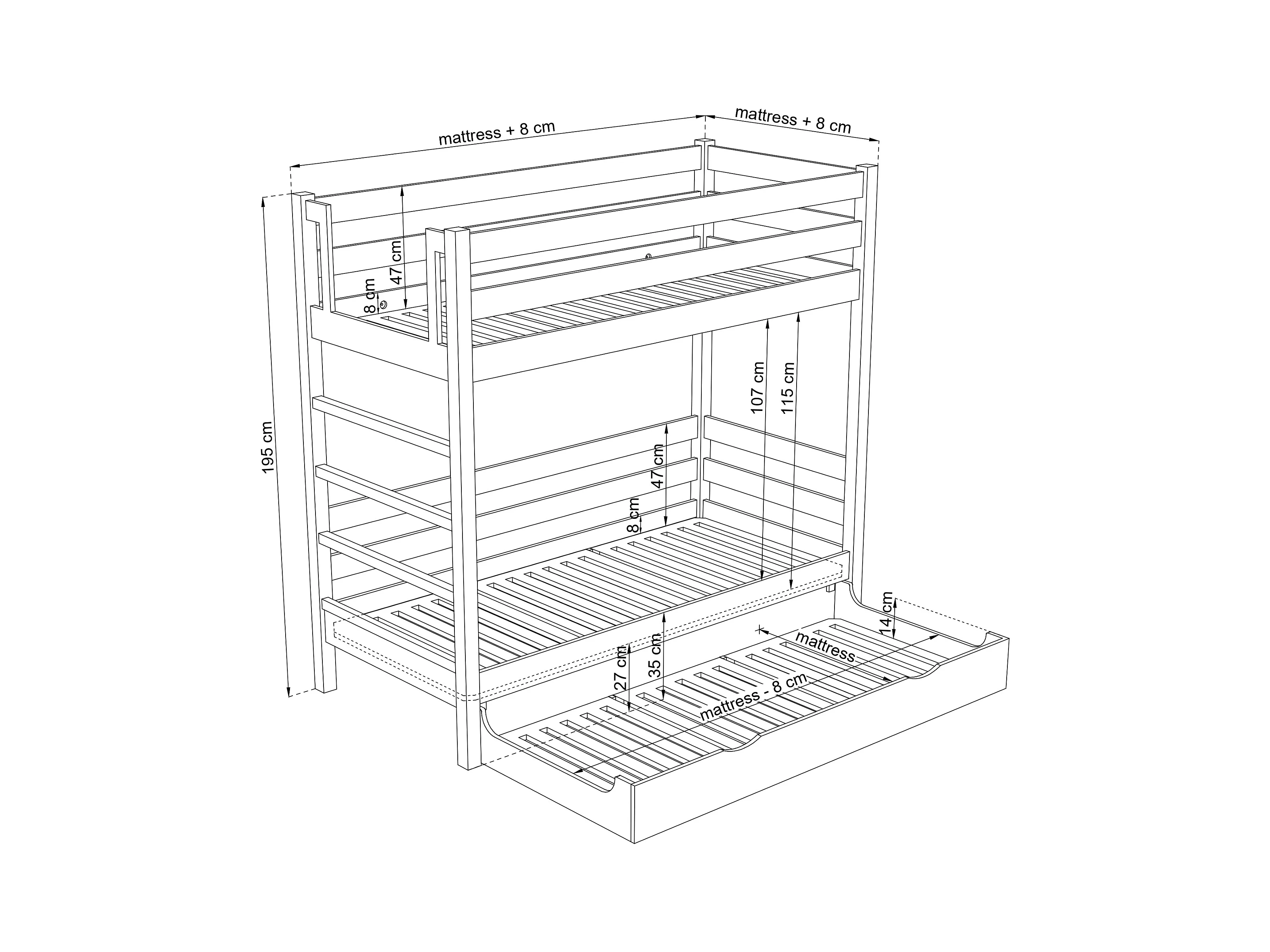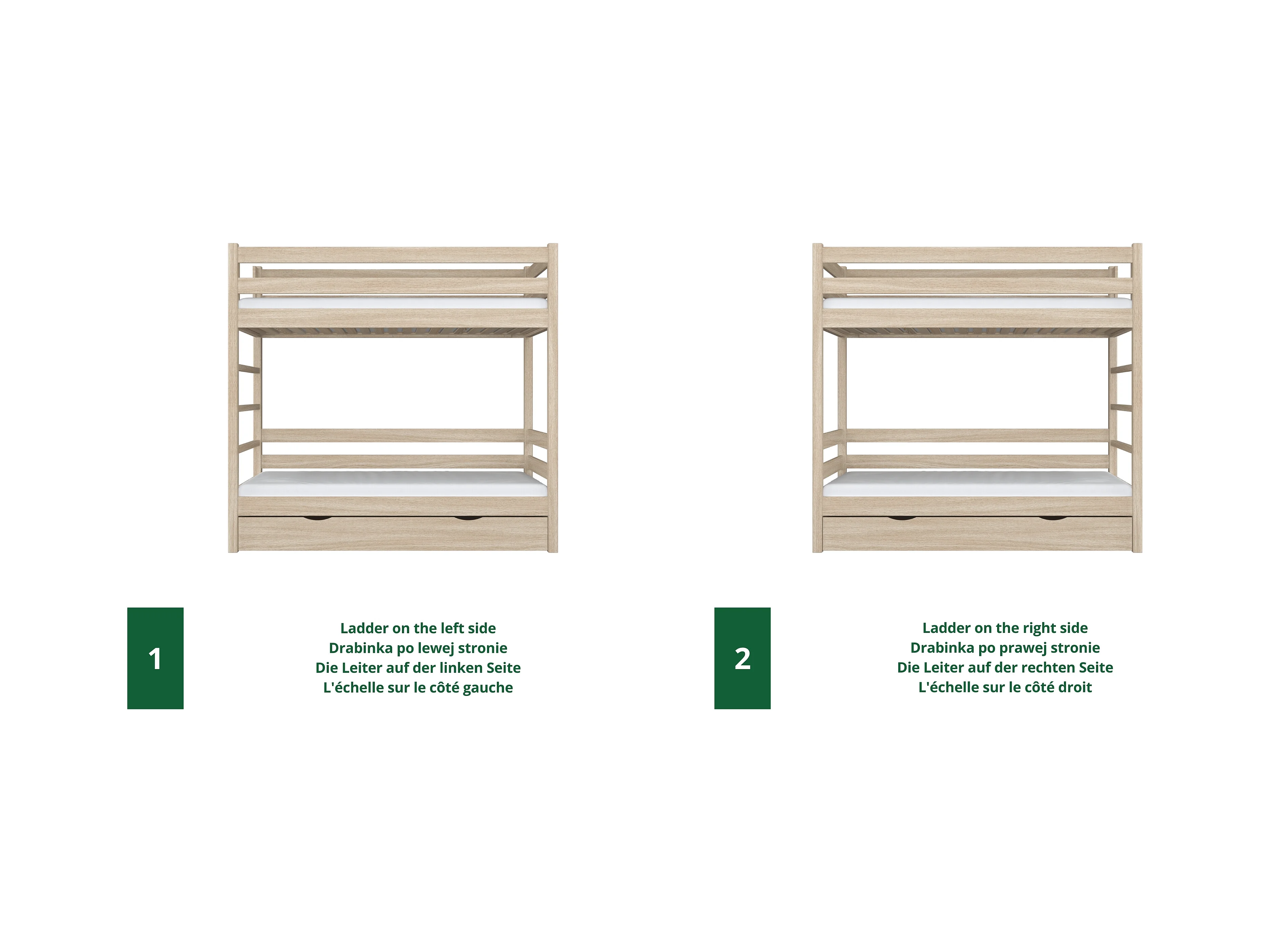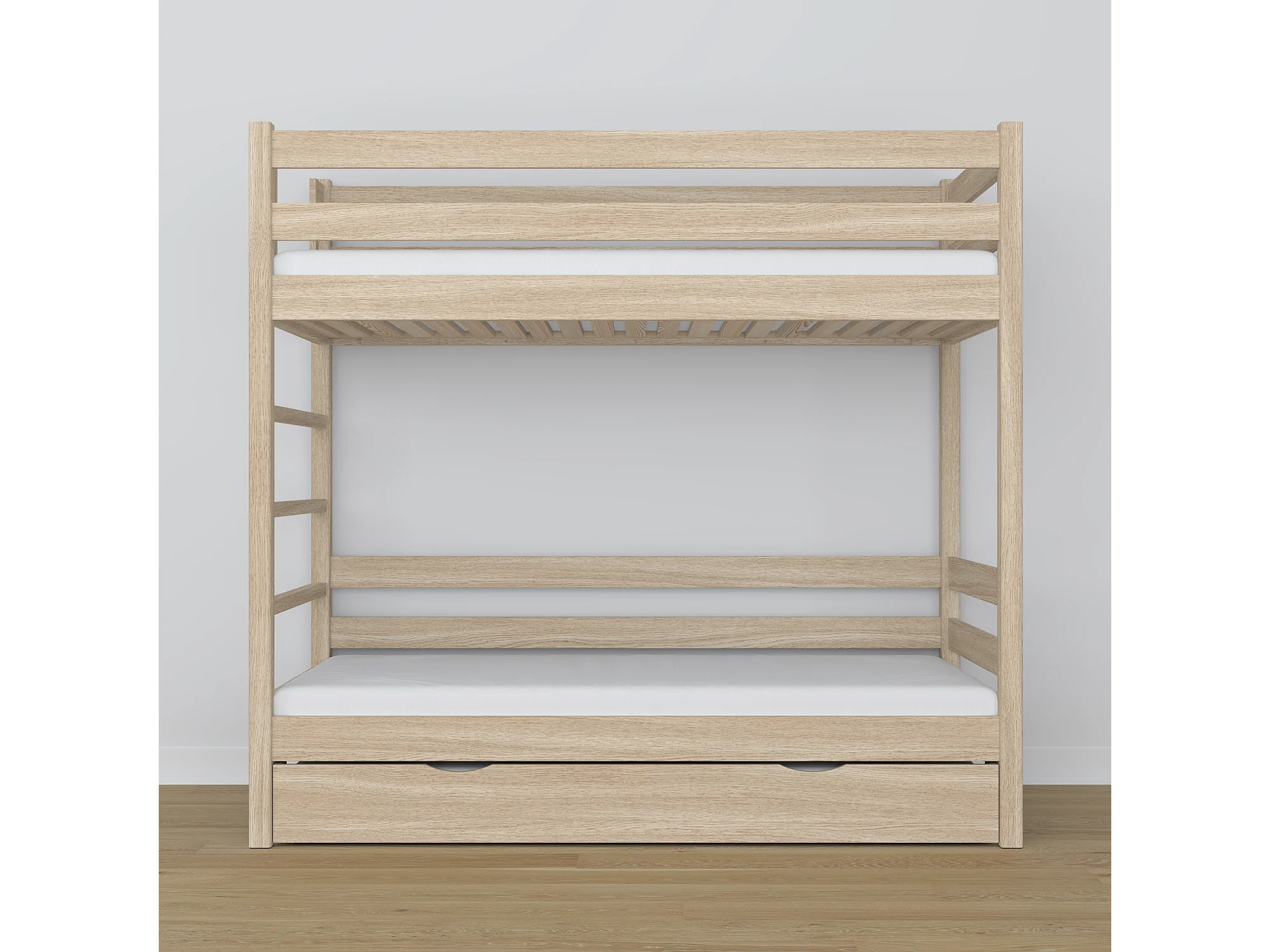 Lit superposé en chêne - avec tiroir pour matelas N03 Chêne Blanchi 90x200