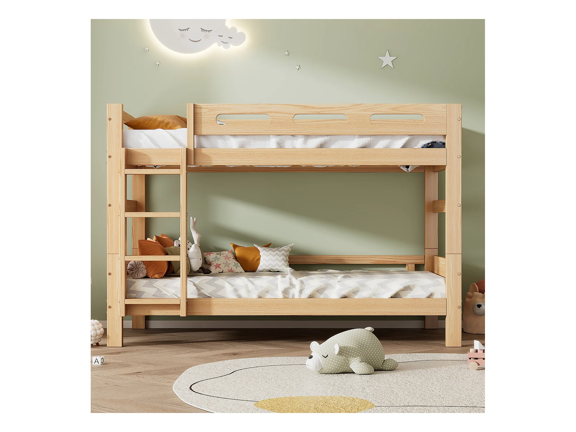 Lit superposé 90 x 200 cm - Litenfant avec sommiers inclus, pin et MDF - Naturel