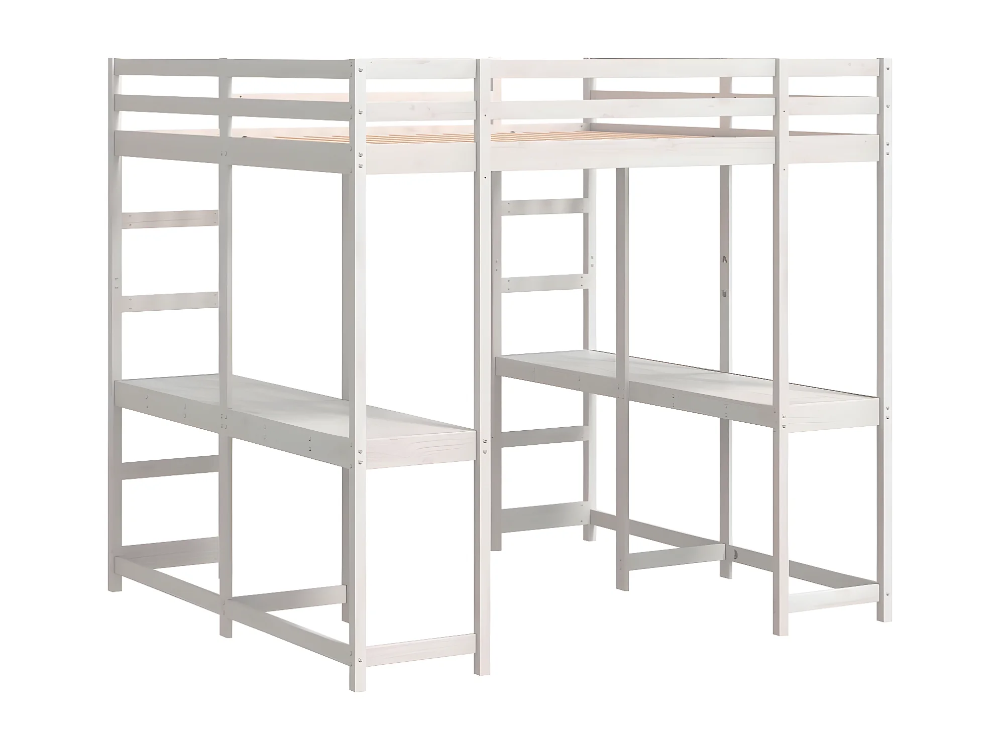 Lit superposé et bureau et échelle 180x200cm bois de pin massif