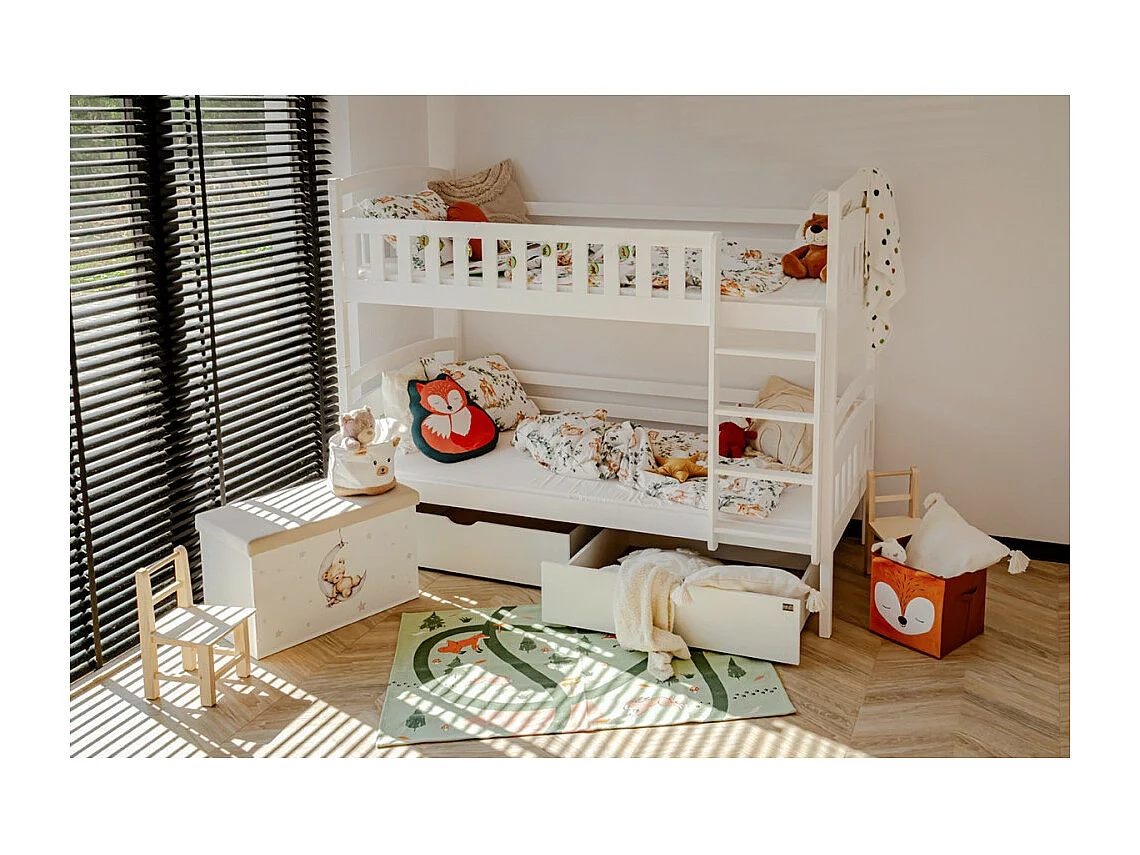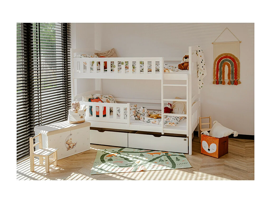 Lit Superposé PILA 90x190 Blanc - blanc Livré avec le sommiers et tiroir.