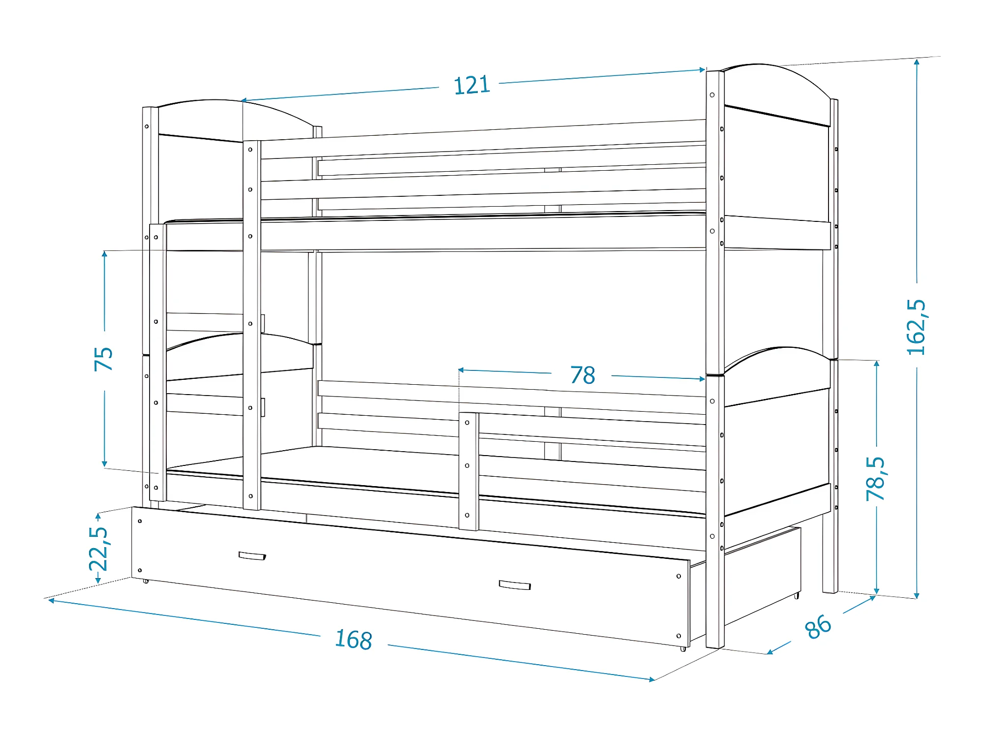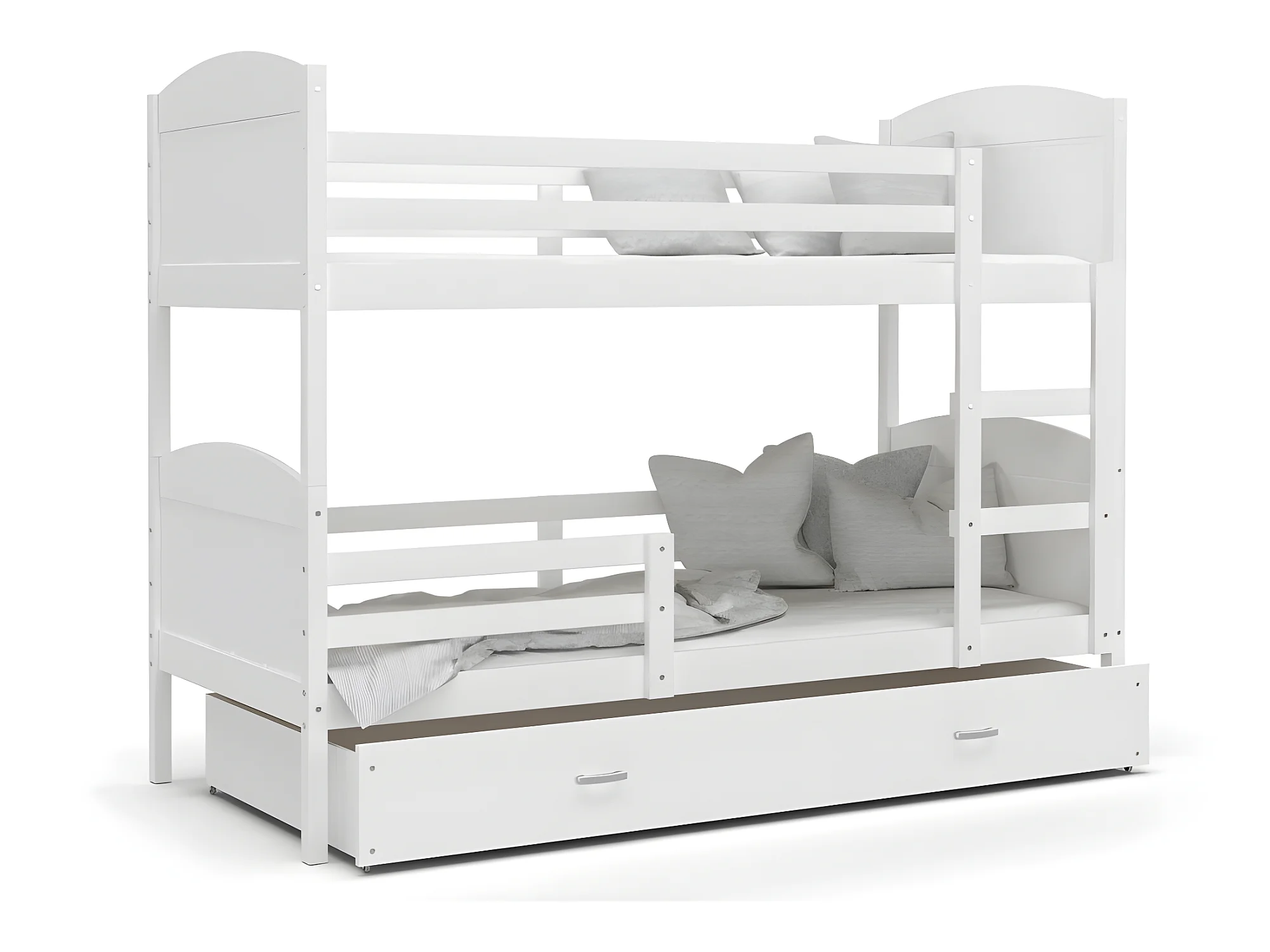 Lit Superposé Mateo 80x160 Blanc - blanc Livré avec sommiers, tiroir et matelas en mousse de 7cm