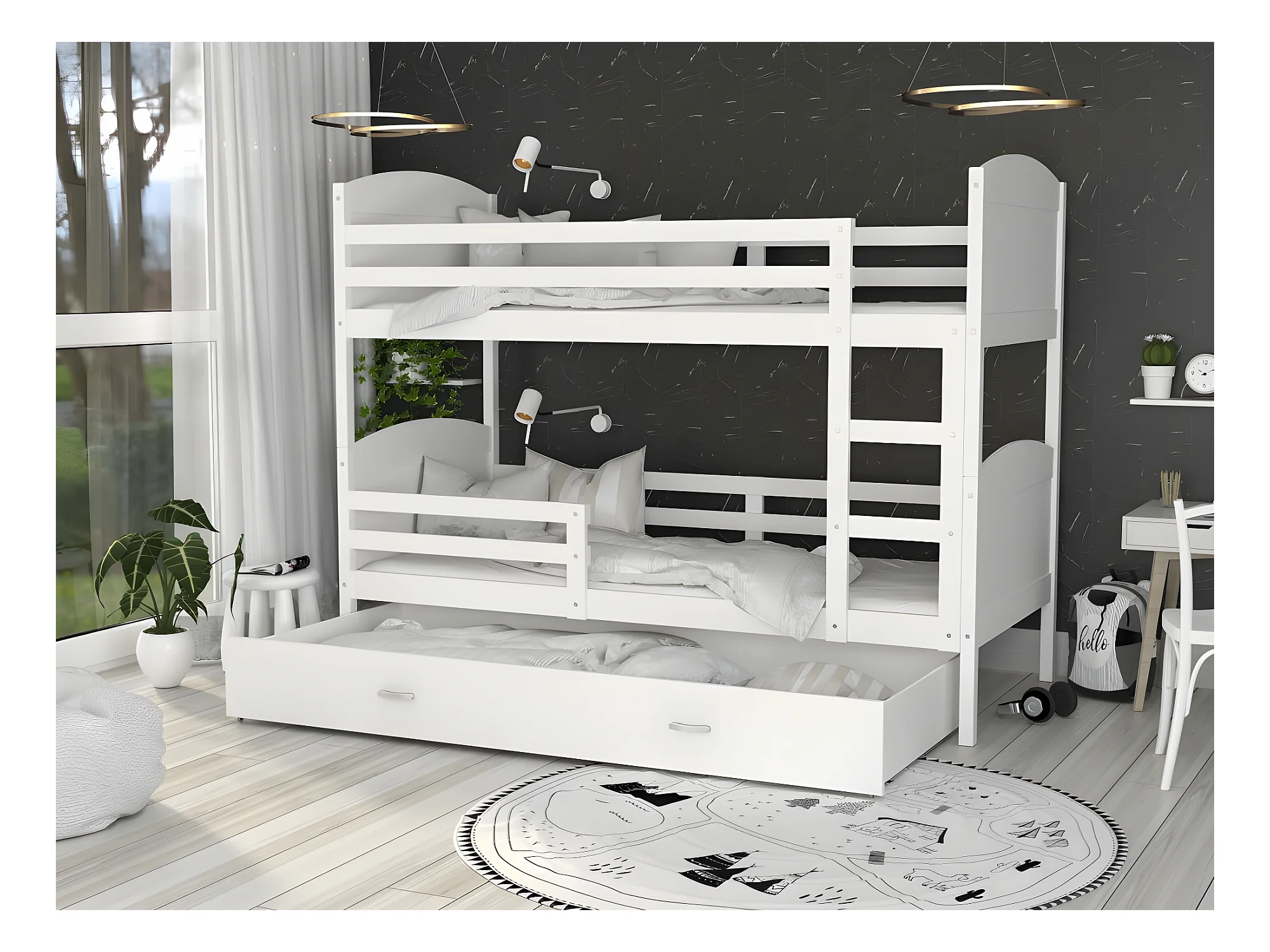 Lit Superposé Mateo 90x190 Blanc - blanc Livré avec sommiers, tiroir et matelas en mousse de 7cm
