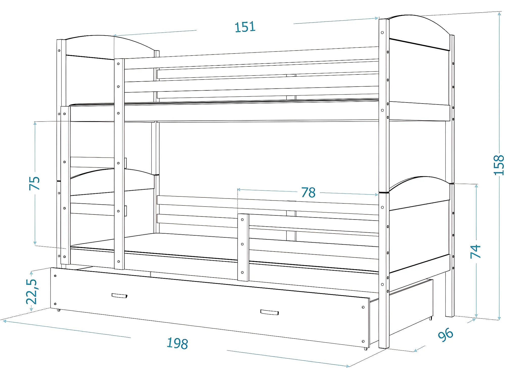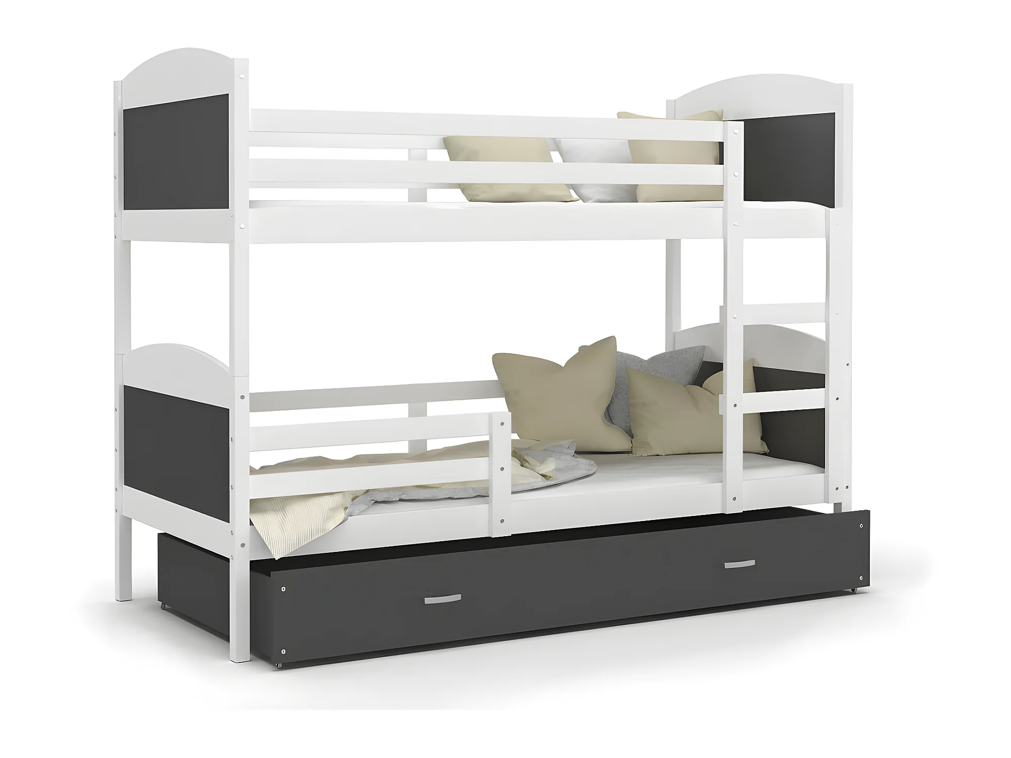 Lit Superposé Mateo 90x190 Blanc - gris Livré avec sommiers, tiroir et matelas en mousse de 7cm