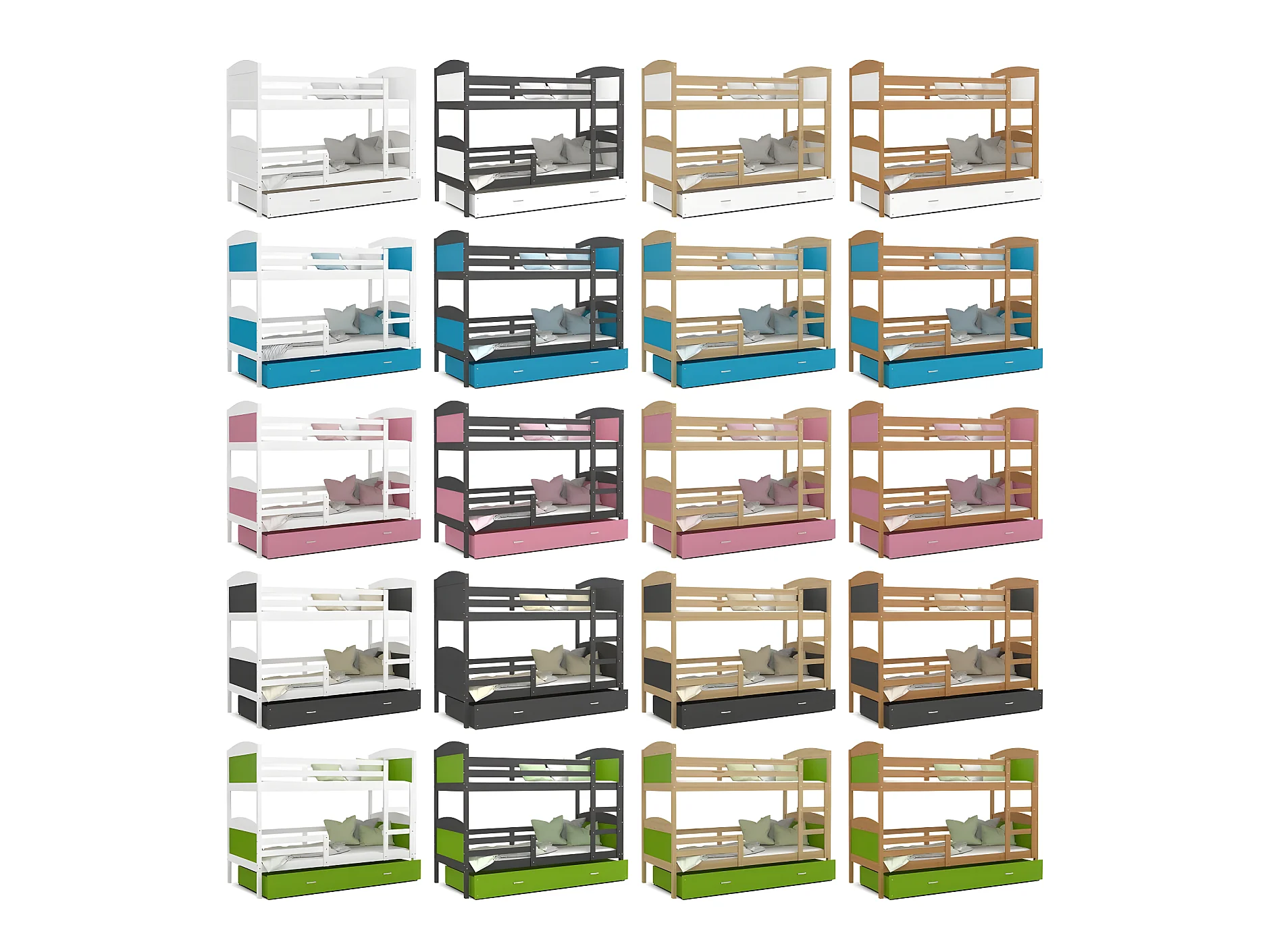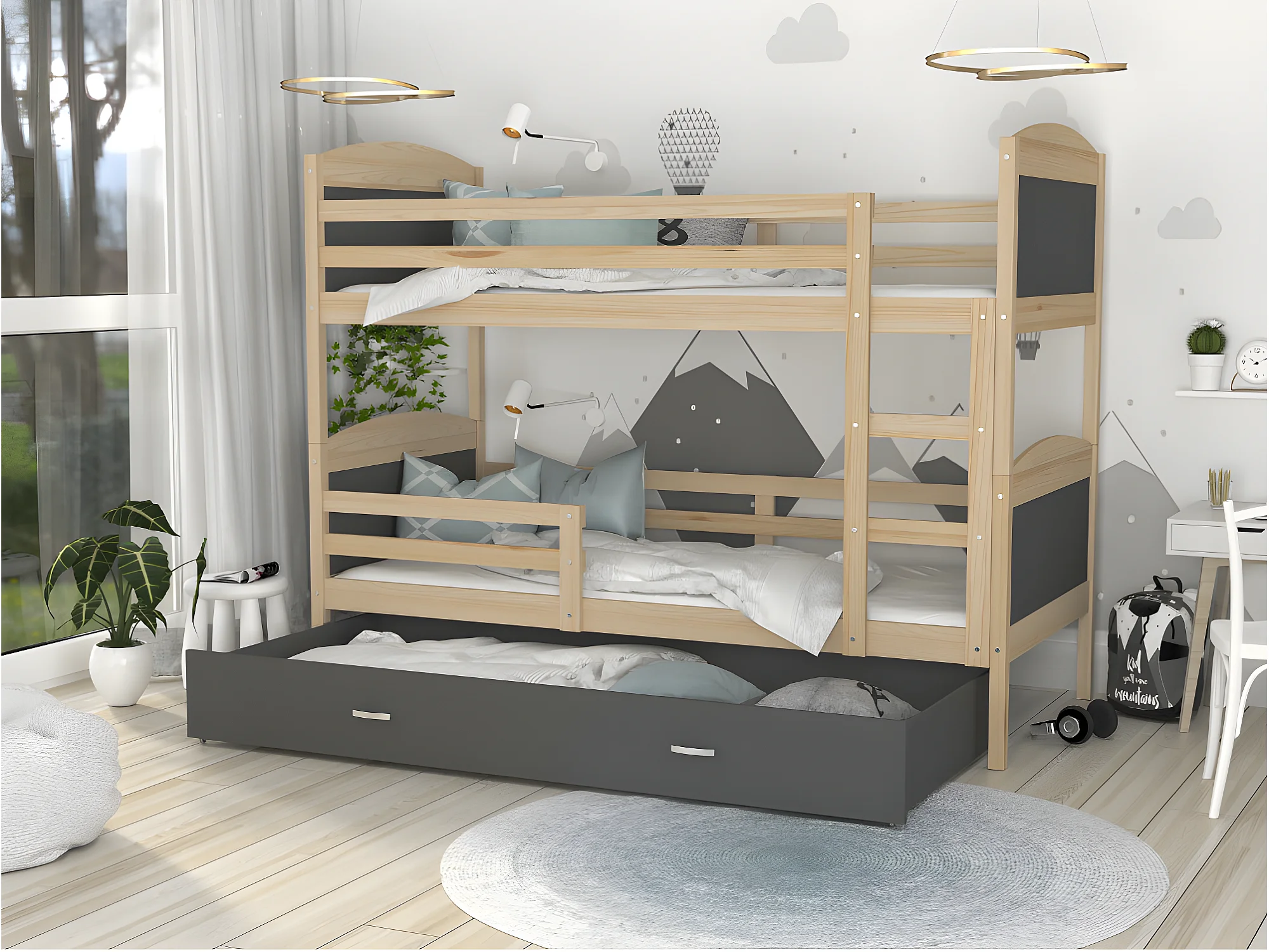 Lit Superposé Mateo 90x190 Pin - gris Livré avec sommiers, tiroir et matelas en mousse de 7cm