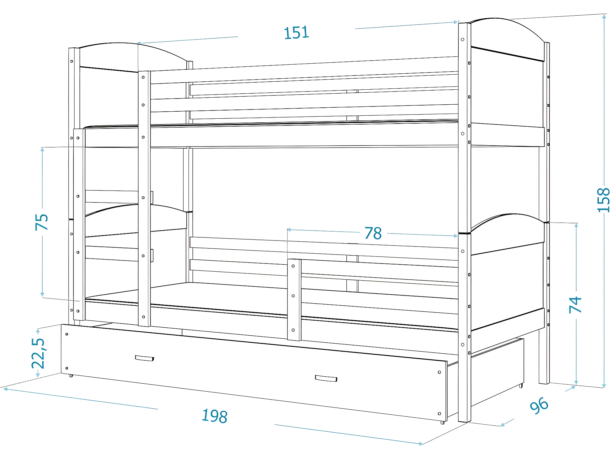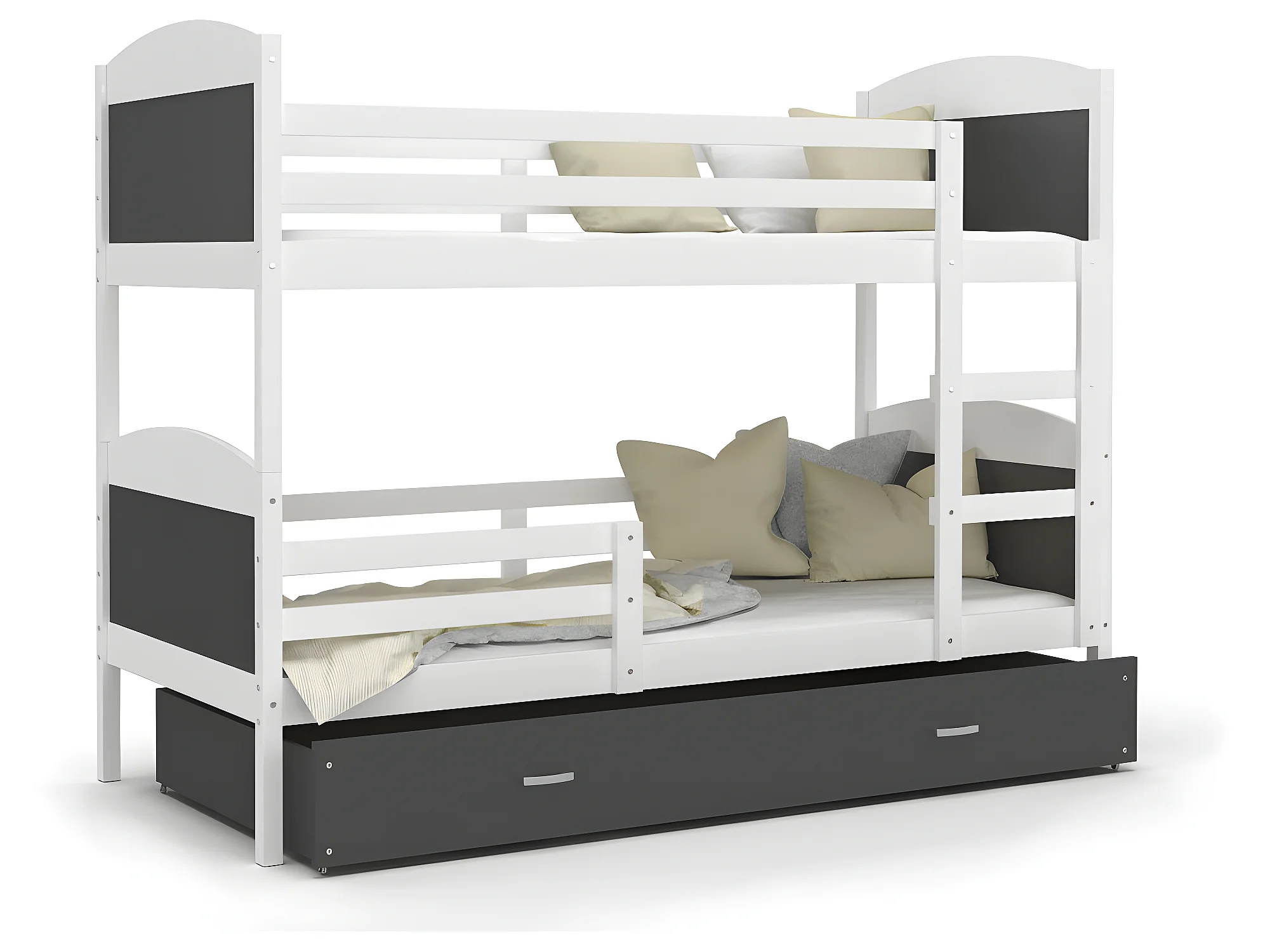 Lit Superposé Matis 90x190 (Sans Matelas) Blanc - gris Livré avec le sommiers et tiroir.