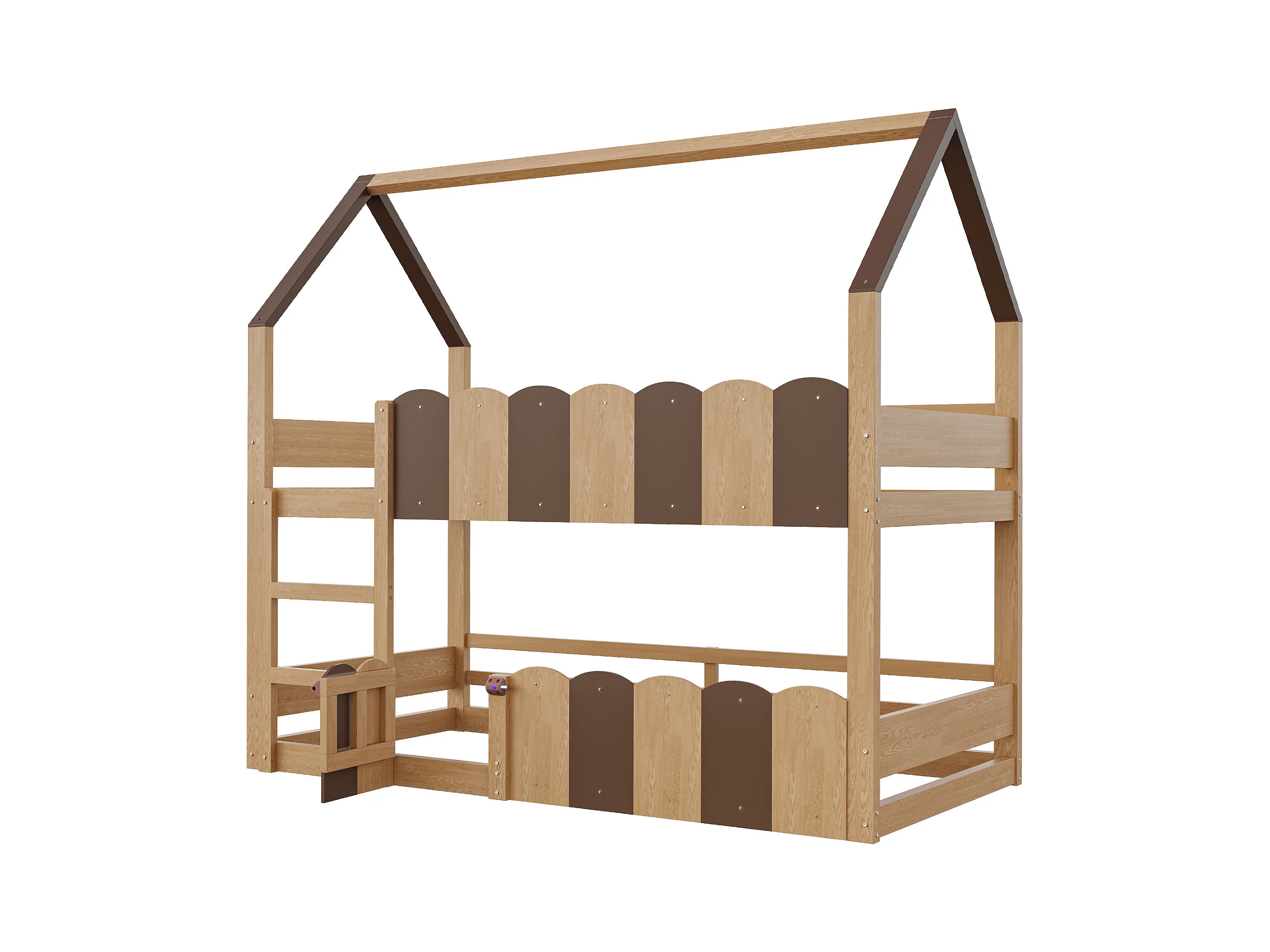 Lit superposé pour enfants 90x200 cm - design en forme de maison - avec barrières de sécurité - Naturel (matelas non inclus)