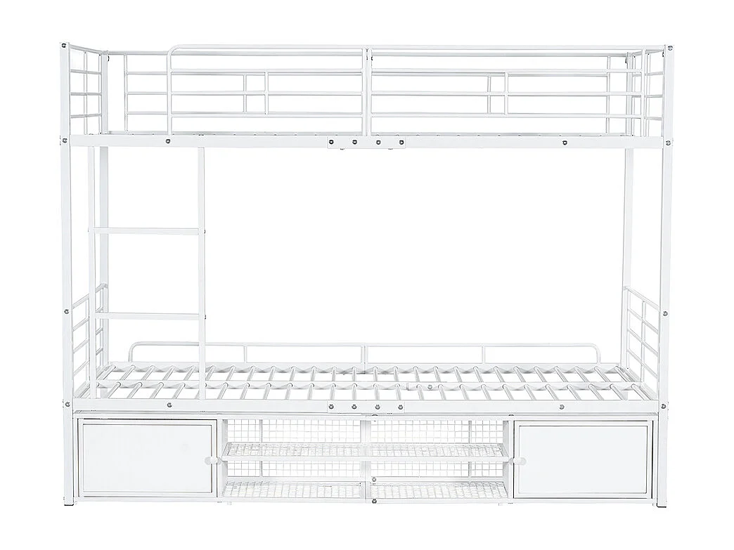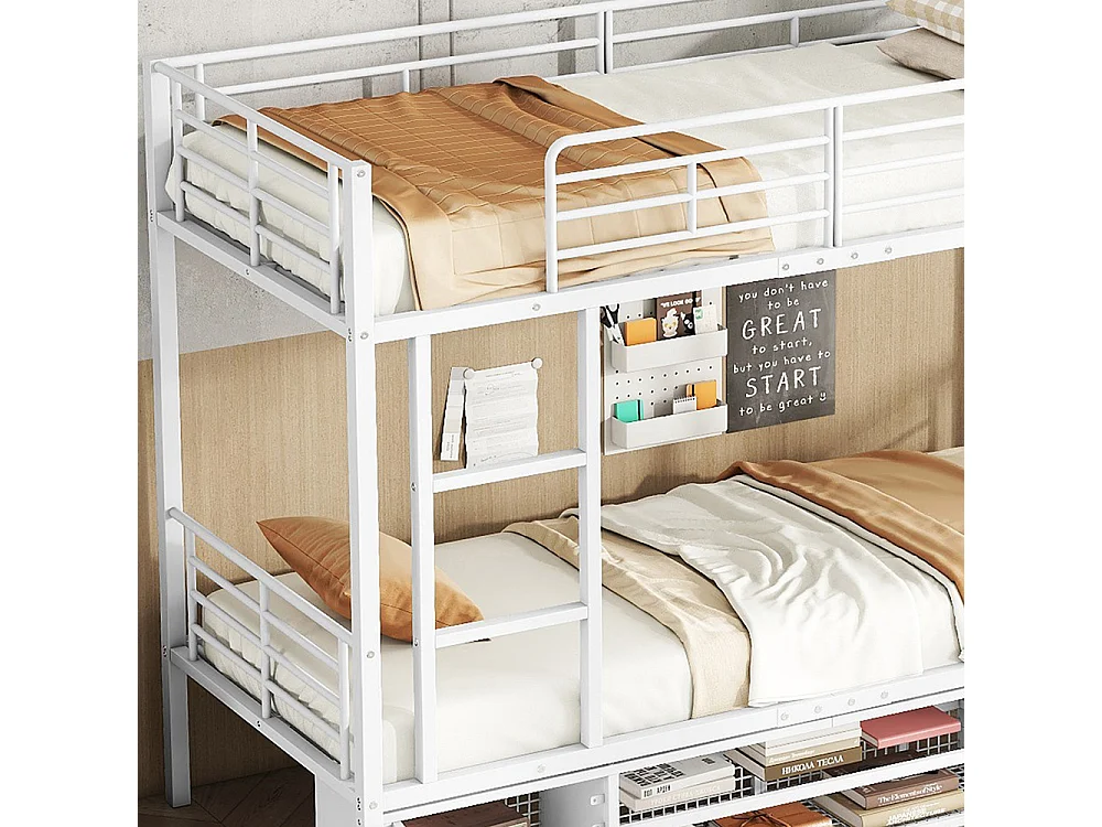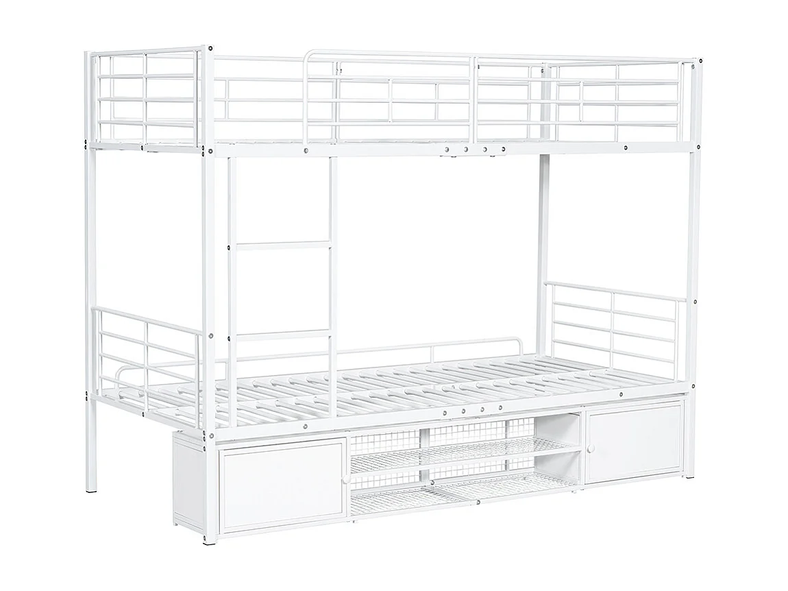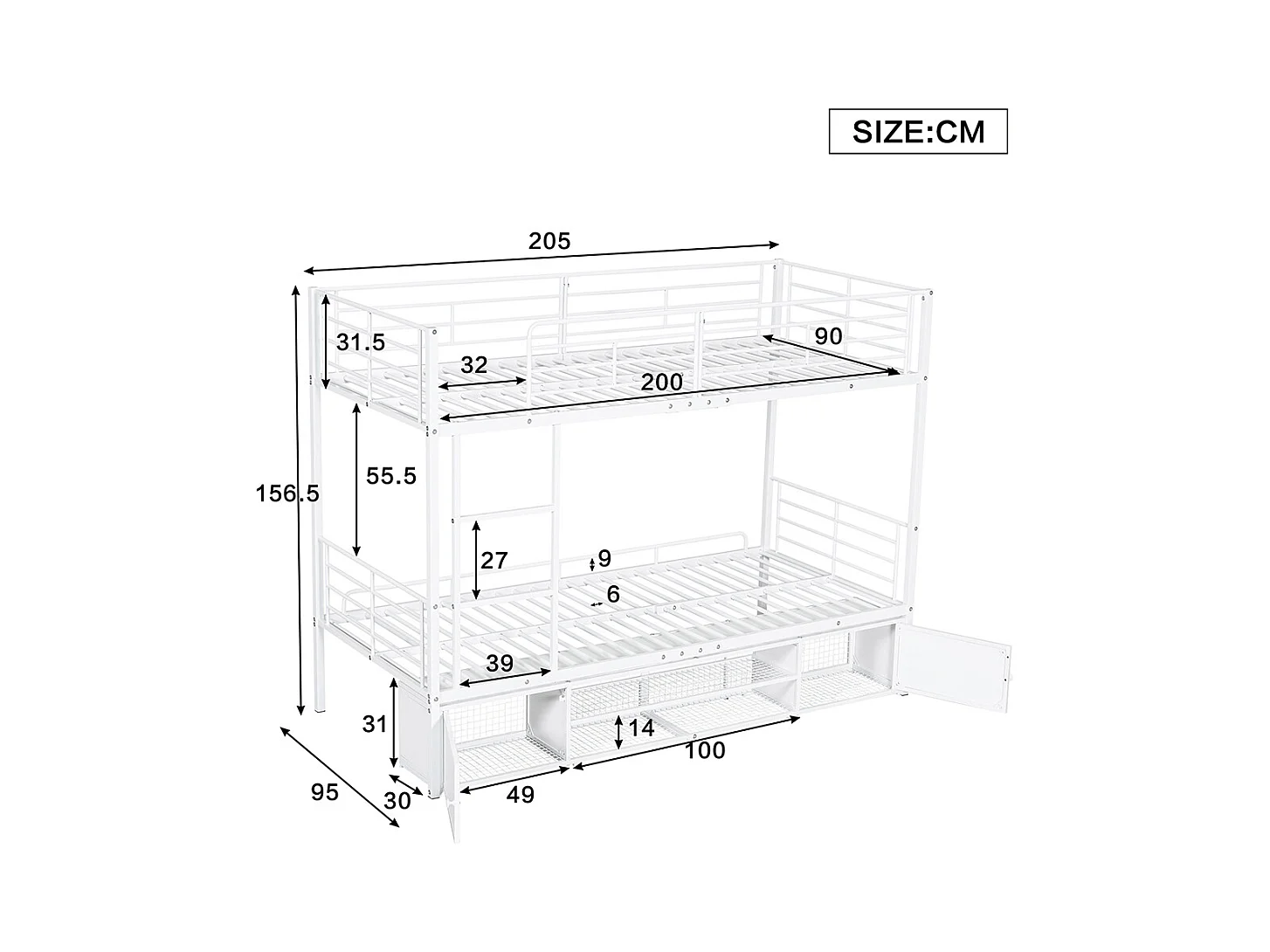 Lit superposé pour enfants, armoire à chaussures ouverte, petite armoire de rangement à deux portes, avec échelle latérale, fer, blanc, 90x200 cm