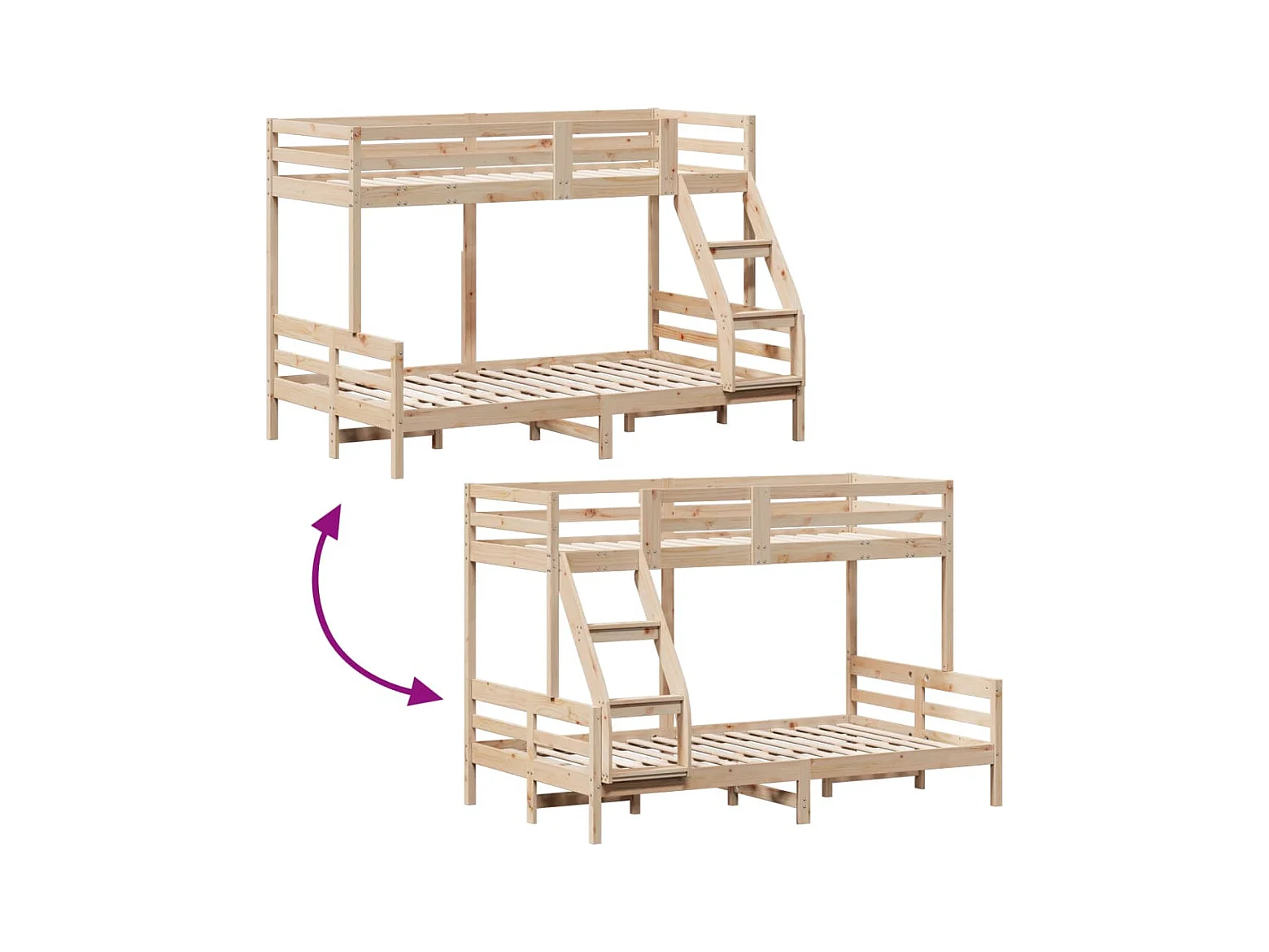 Lit superposé sans matelas 80x200/120x200 cm bois massif