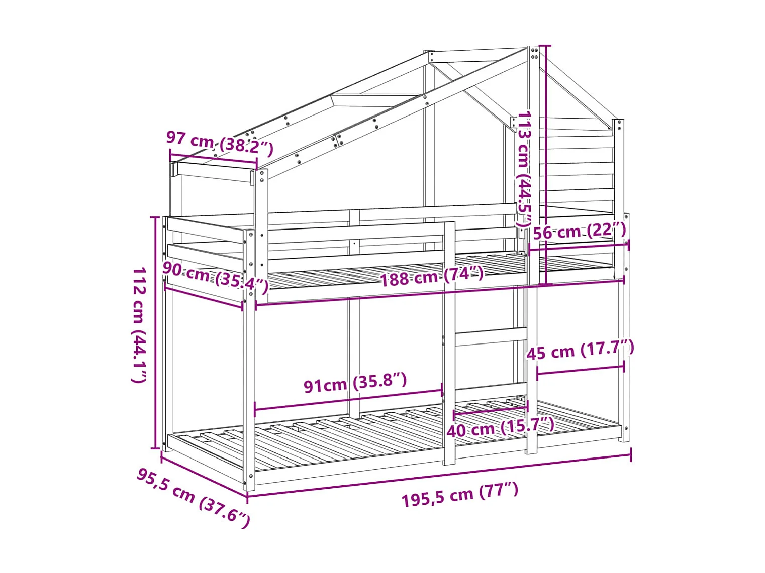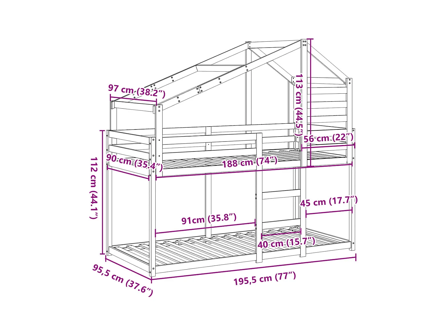 Lit superposé sans matelas 90x190 cm bois de pin massif
